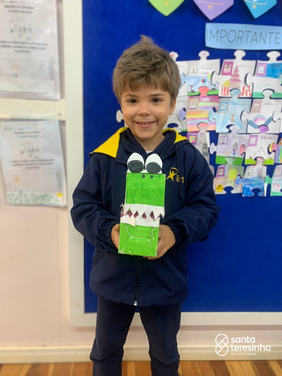 Registro da história: “A Caixa Surpresa”. Construção de um fantoche com caixinha.