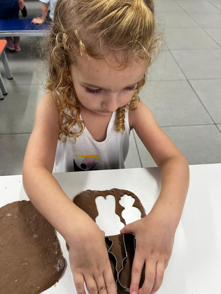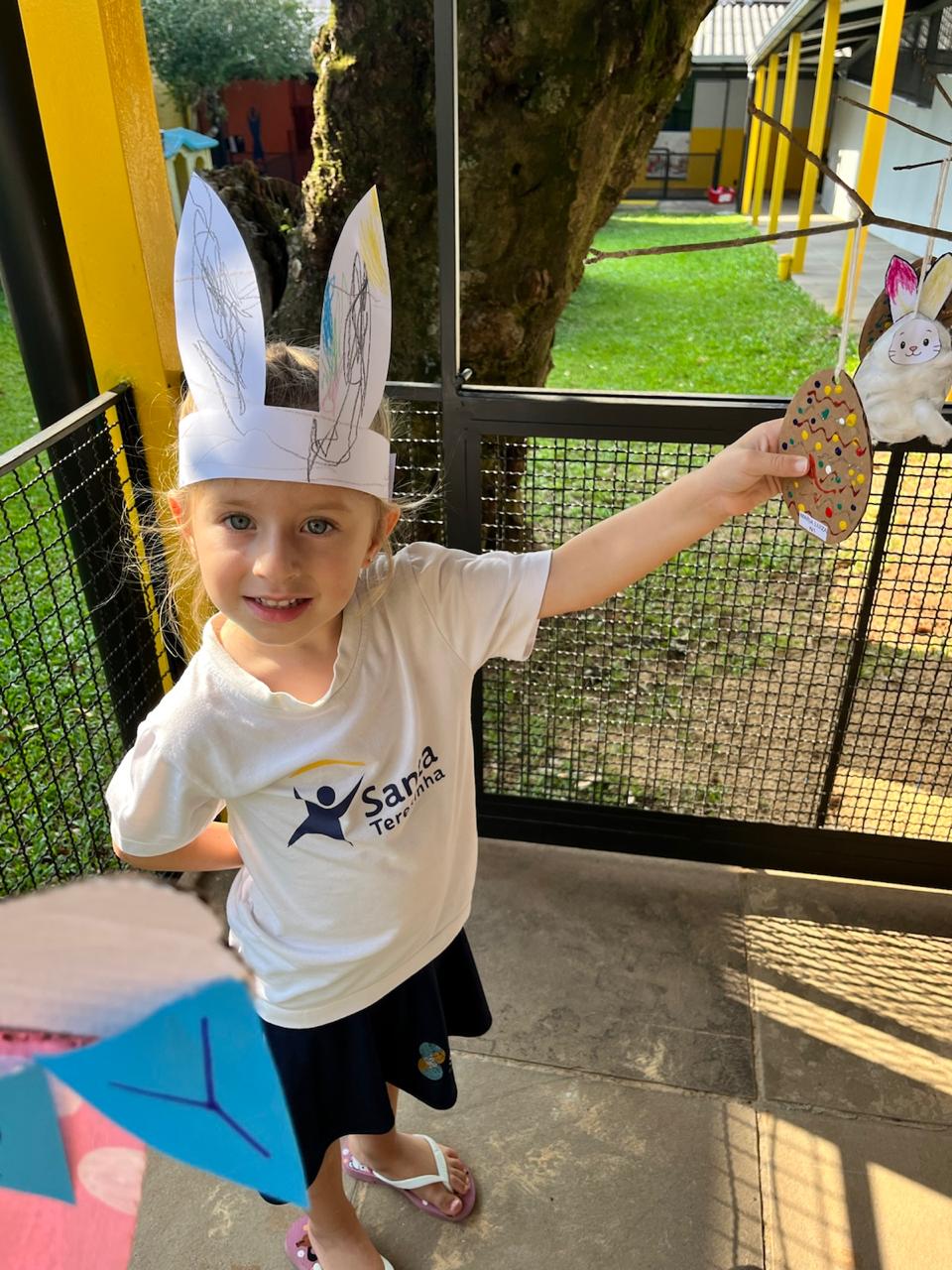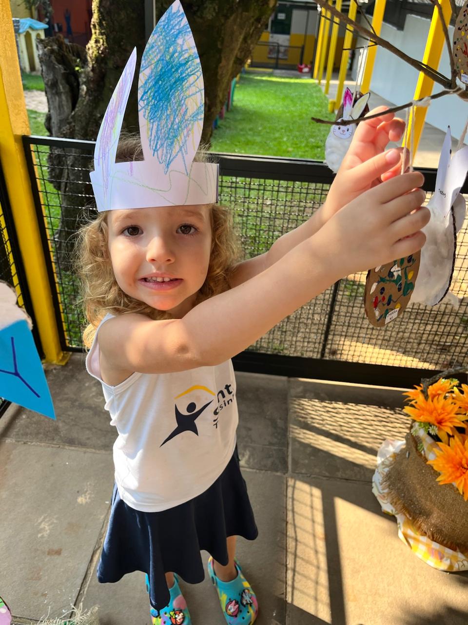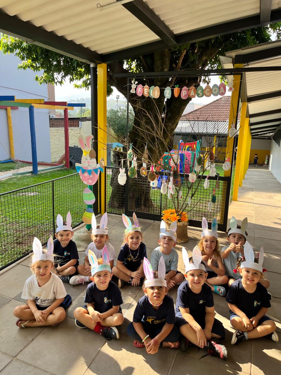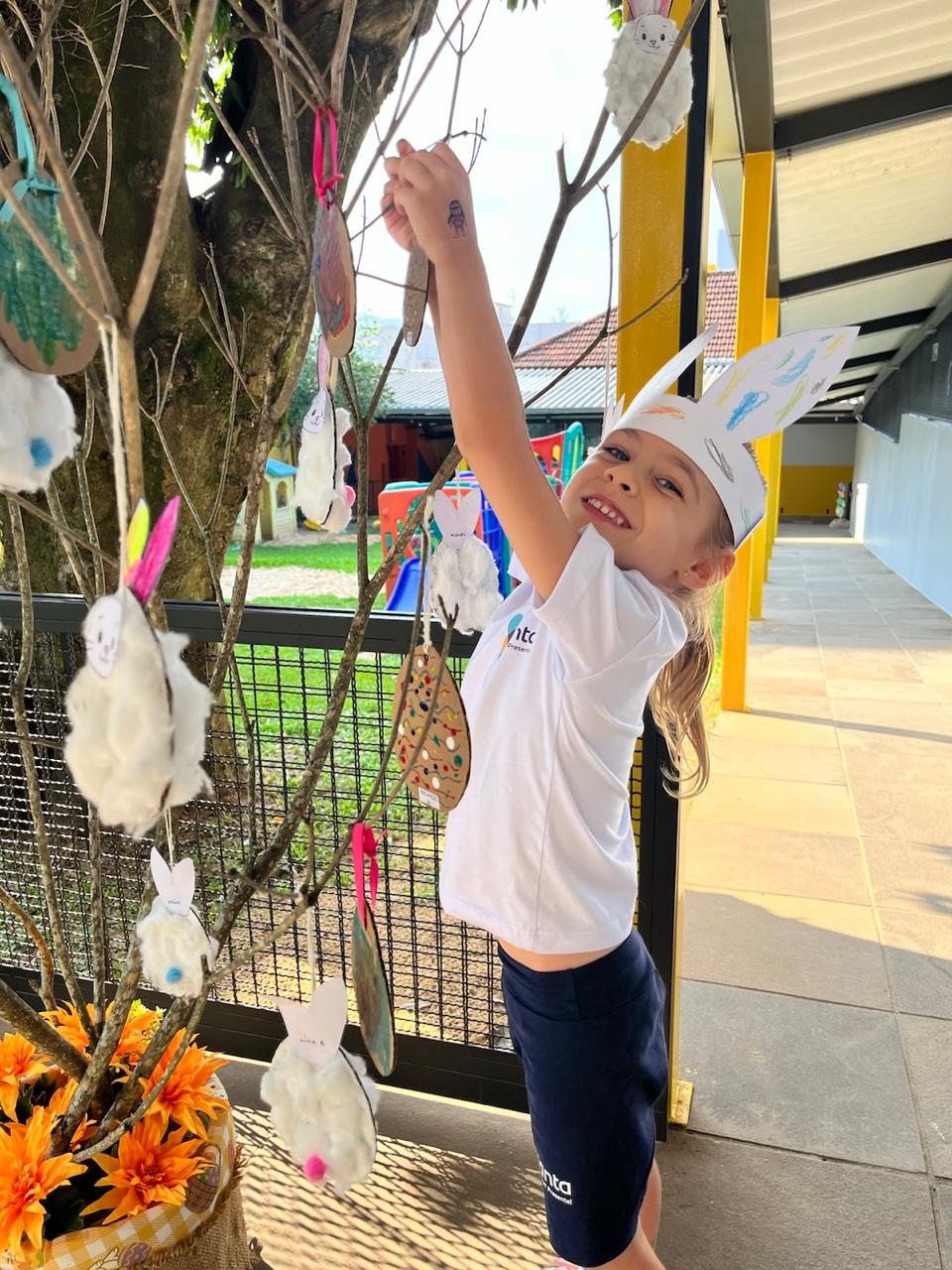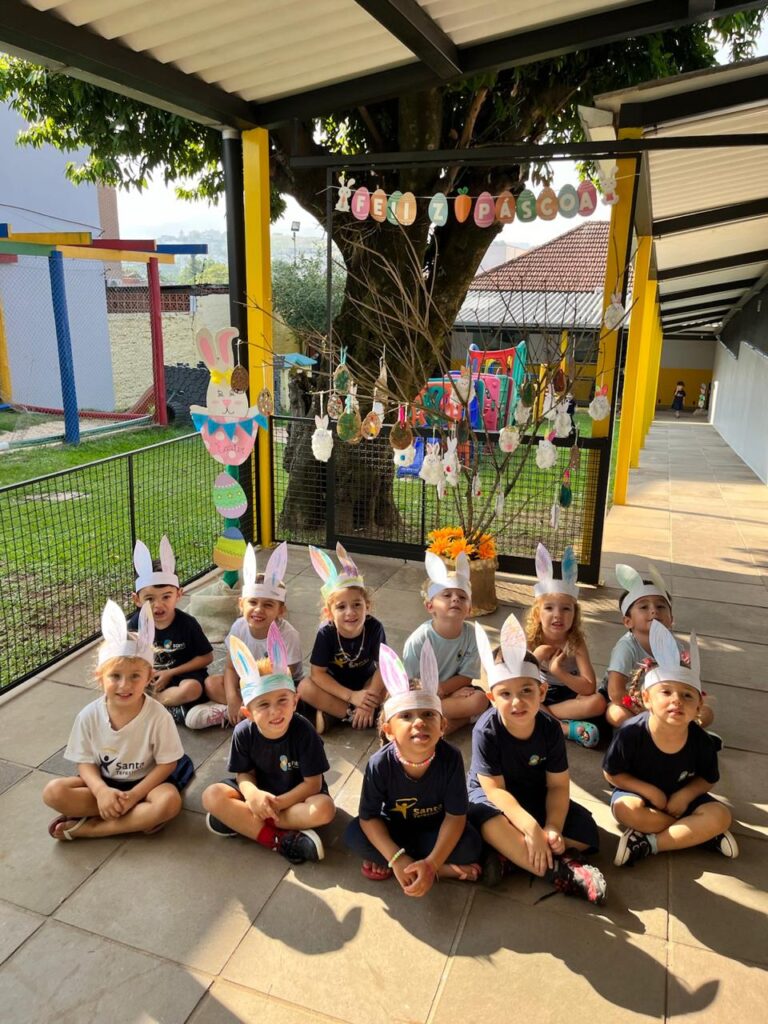 Fomos ajudantes do coelho, preparamos deliciosas bolachas e, ele nos devolveu todas lindas e coloridas. Também enfeitamos a escola com muito carinho para esperar a sua chegada. 🐰✨