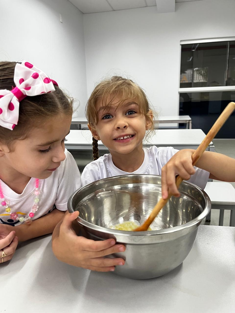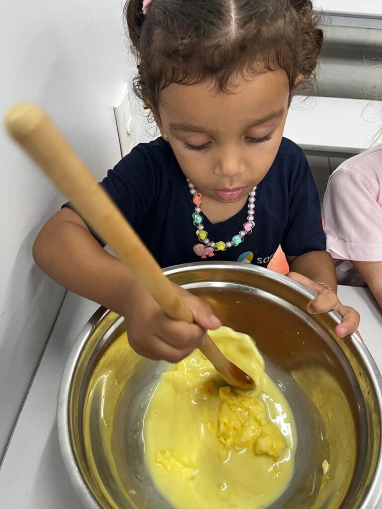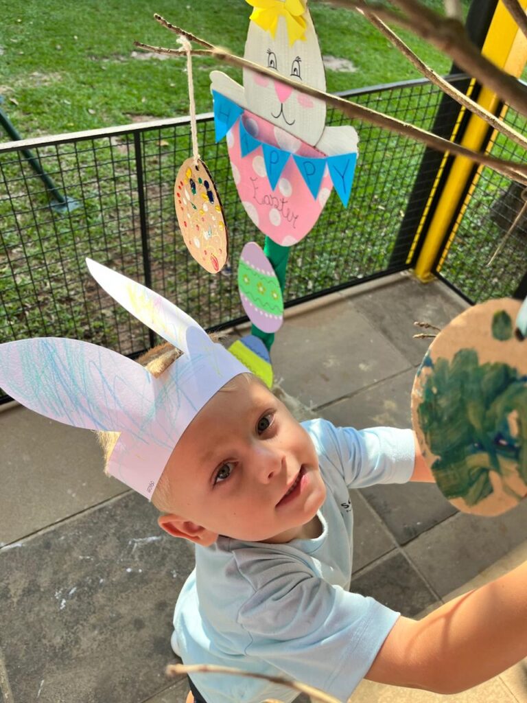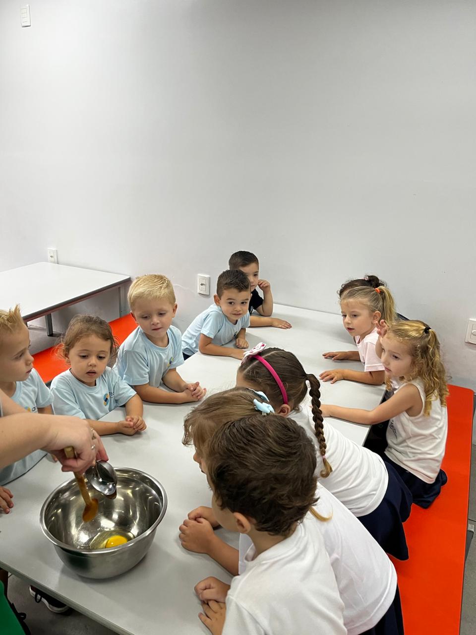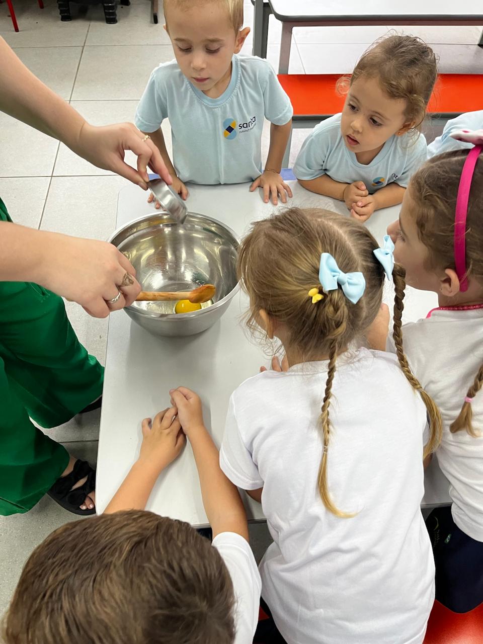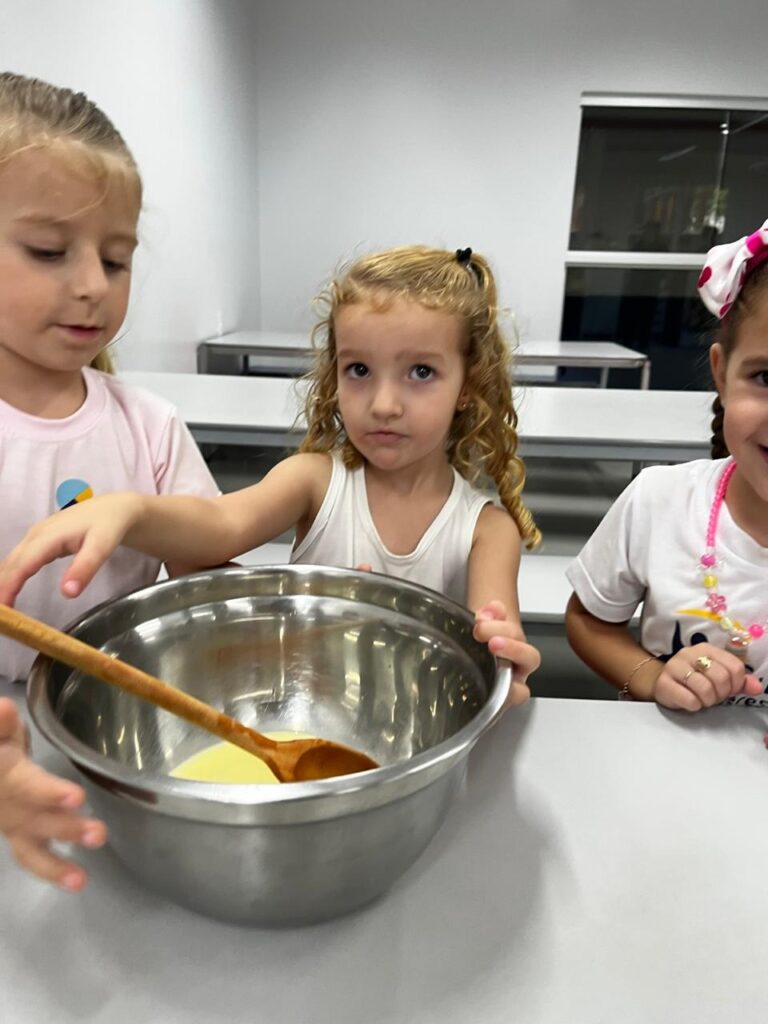 Fomos ajudantes do coelho, preparamos deliciosas bolachas e, ele nos devolveu todas lindas e coloridas. Também enfeitamos a escola com muito carinho para esperar a sua chegada. 🐰✨