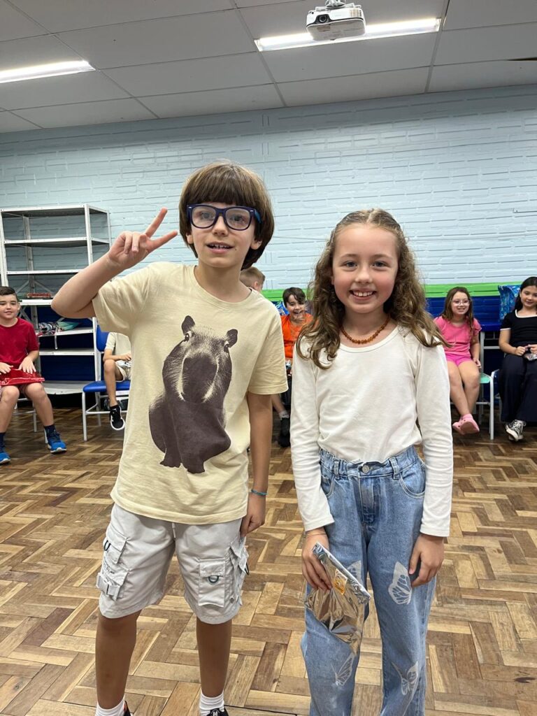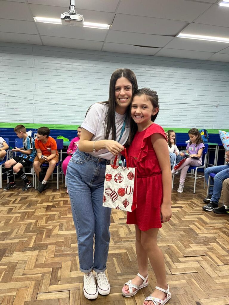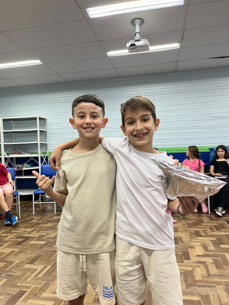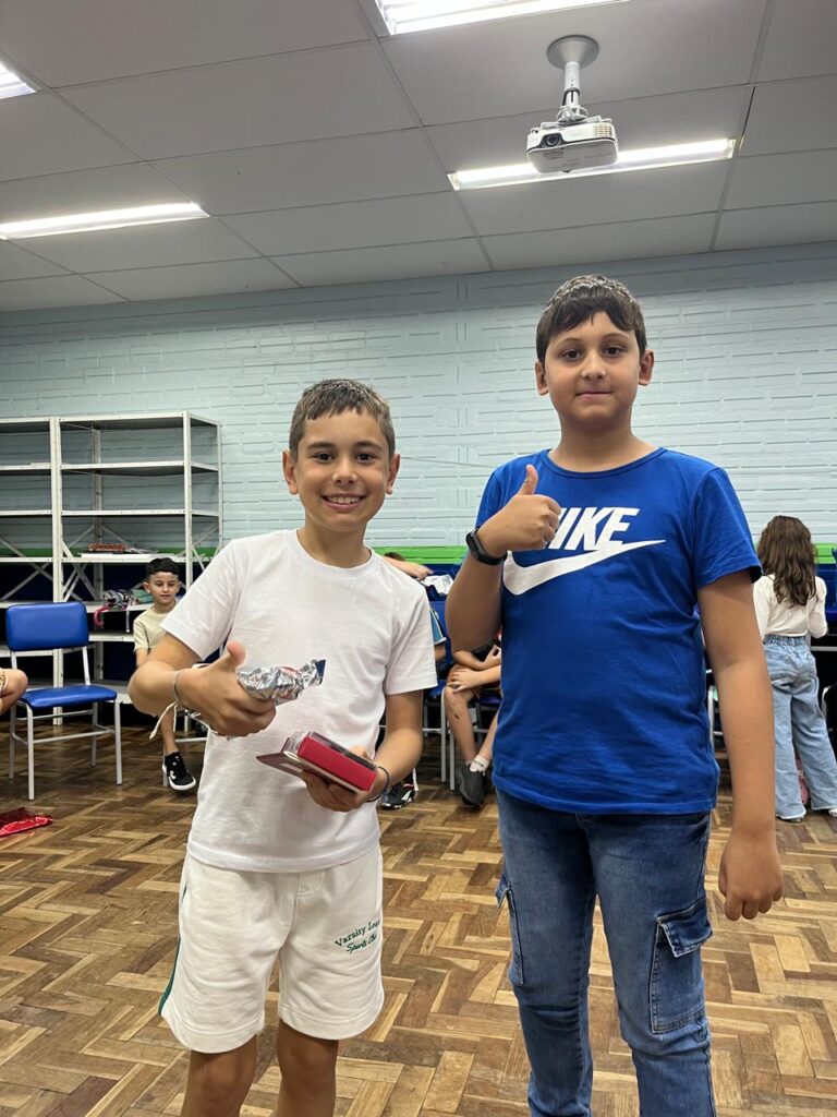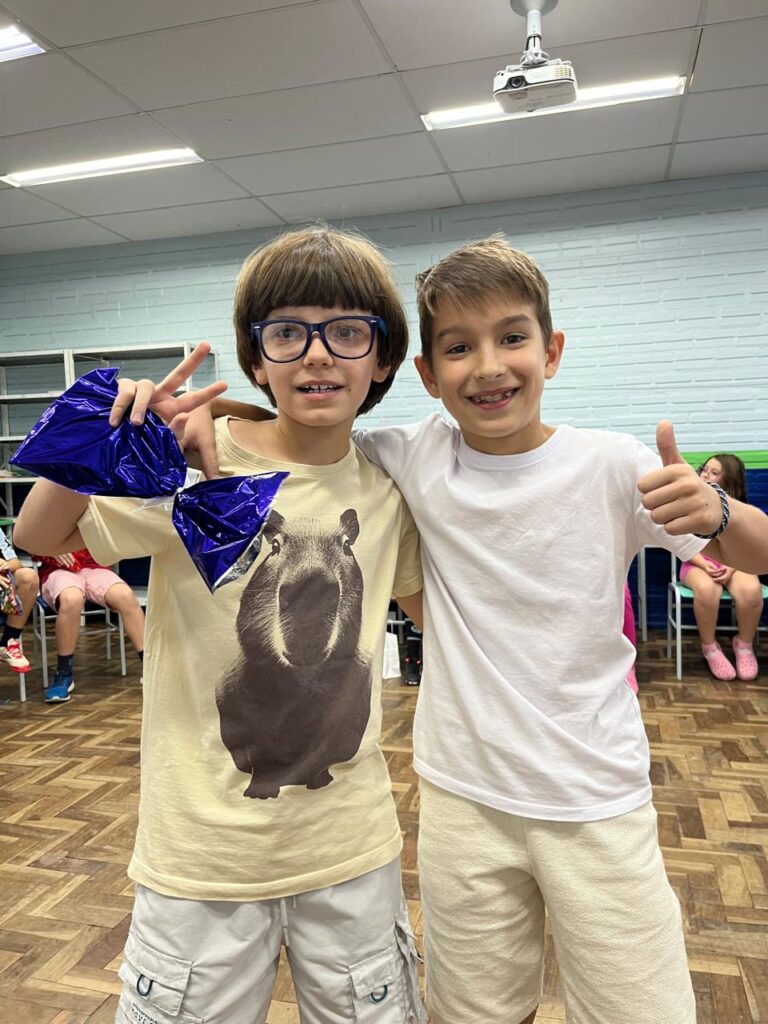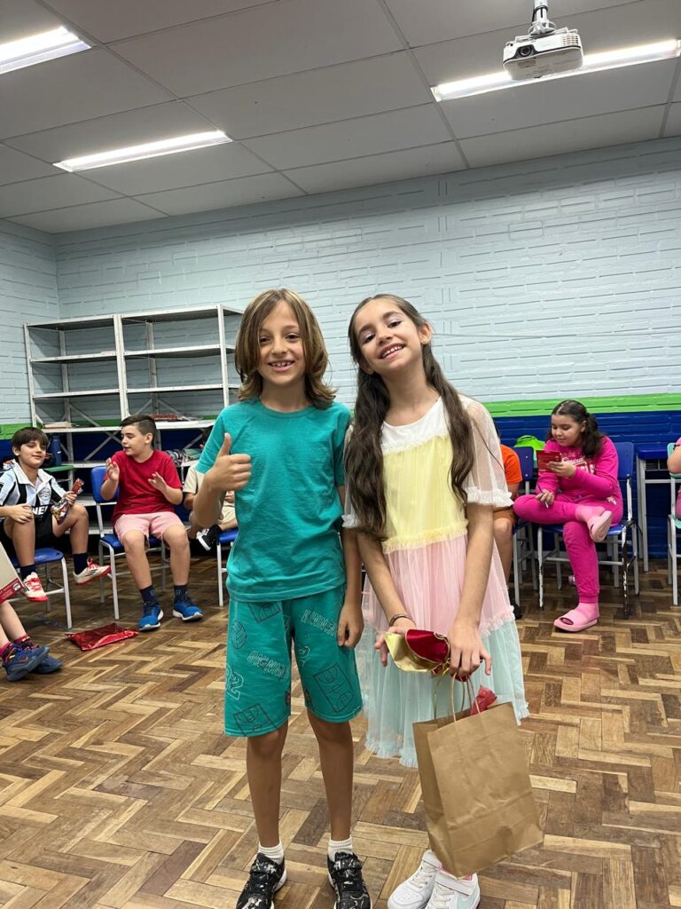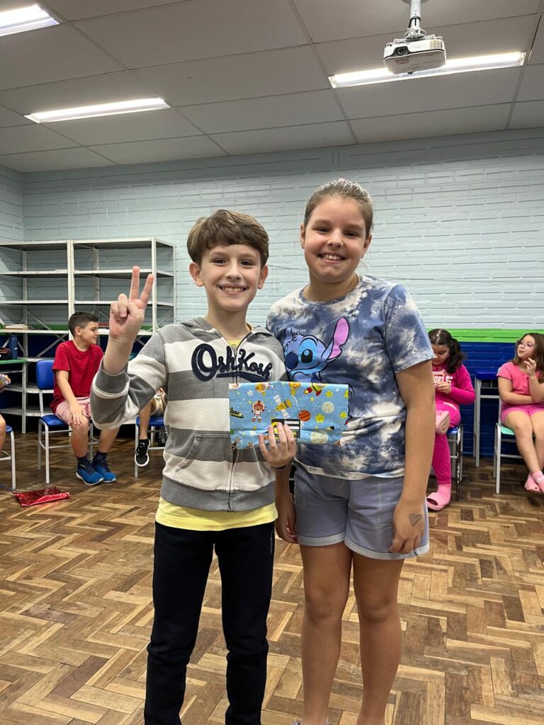 Na última semana de aula, os alunos do 3º ano B realizaram uma animada confraternização com a brincadeira de amigo secreto de papelaria. A revelação dos presentes foi ainda mais divertida graças à dinâmica do jogo “Cara a Cara”, que tornou o momento leve, interativo e cheio de risadas. Foi uma forma especial de encerrar o ano letivo, celebrando a amizade e a união da turma.