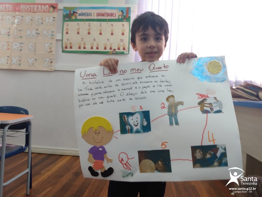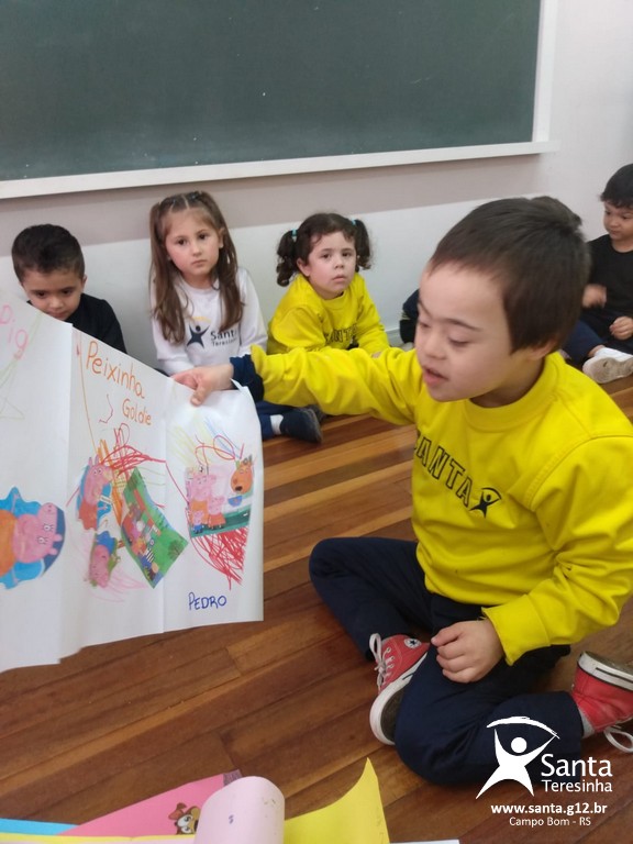 Apresentação do tema de leitura. Cada aluno apresentou o livro que leu.