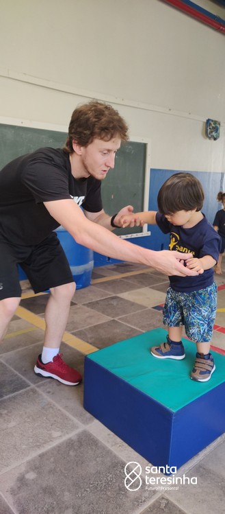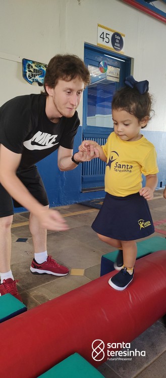 Nas aulas de Psicomotricidade, com o professor Lucas, sempre há desafios e alegria!