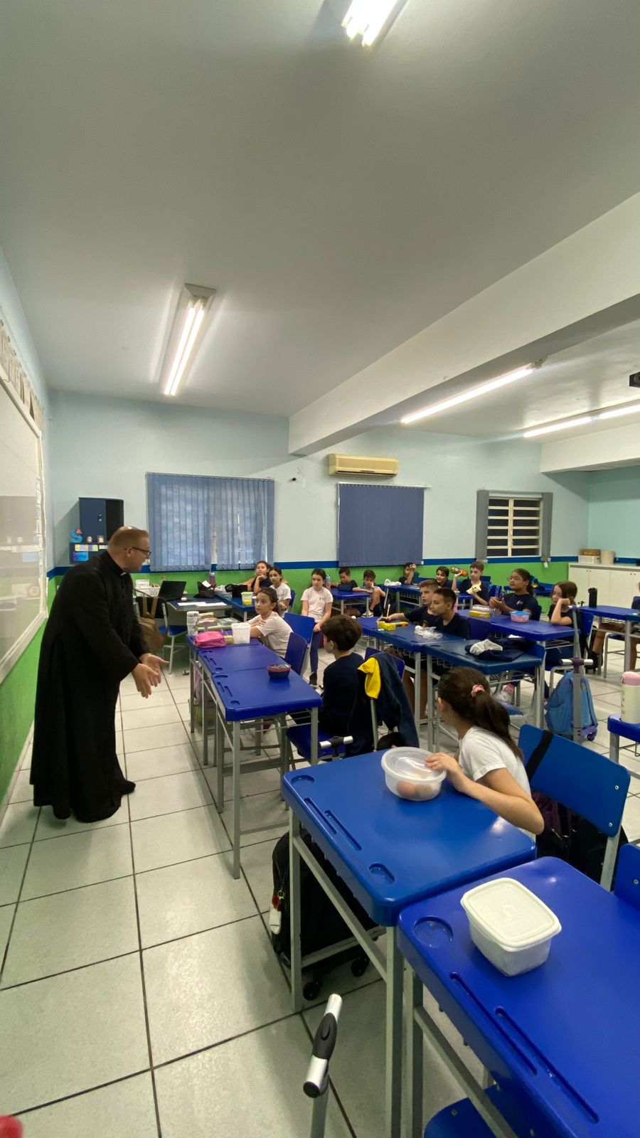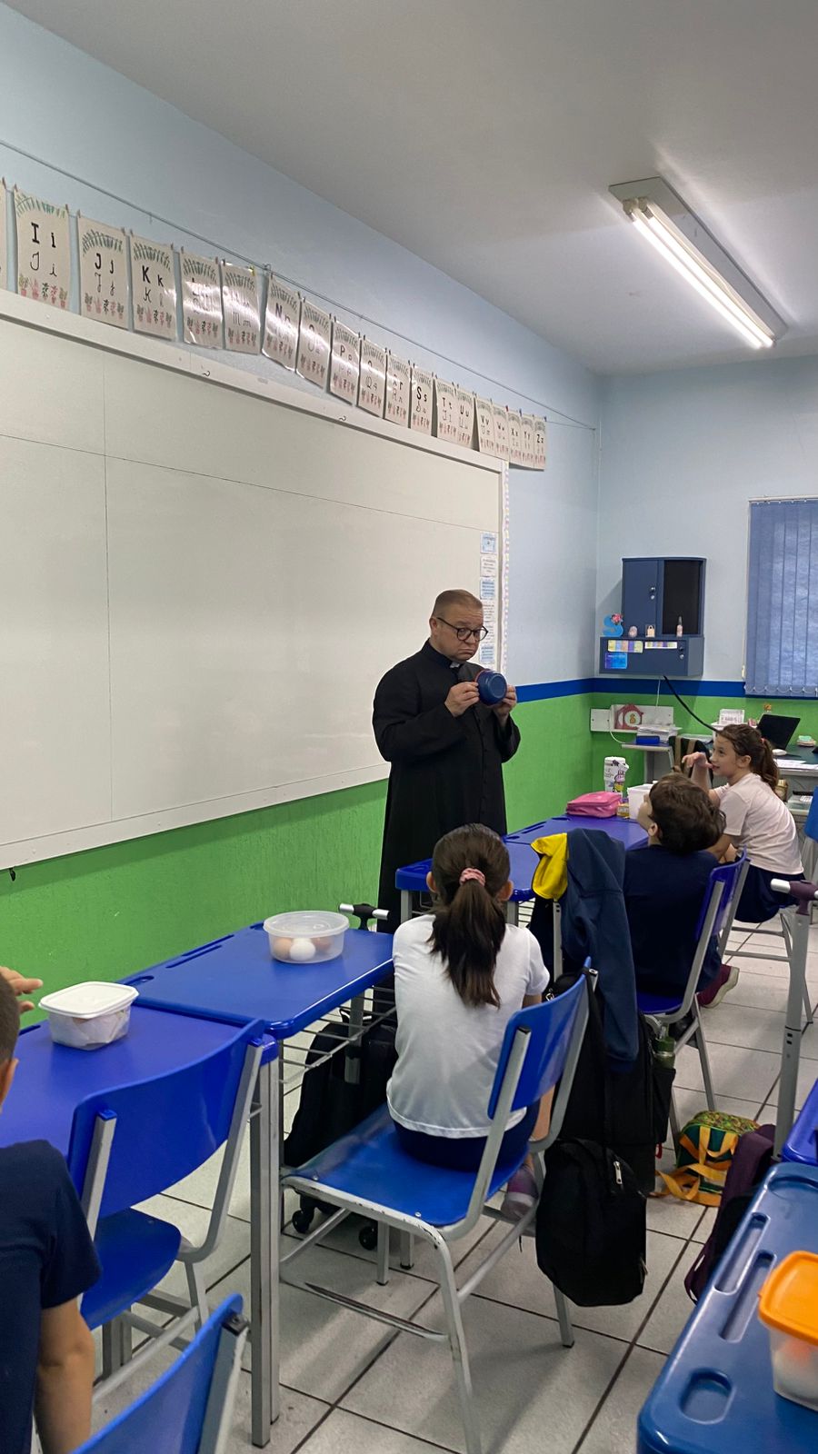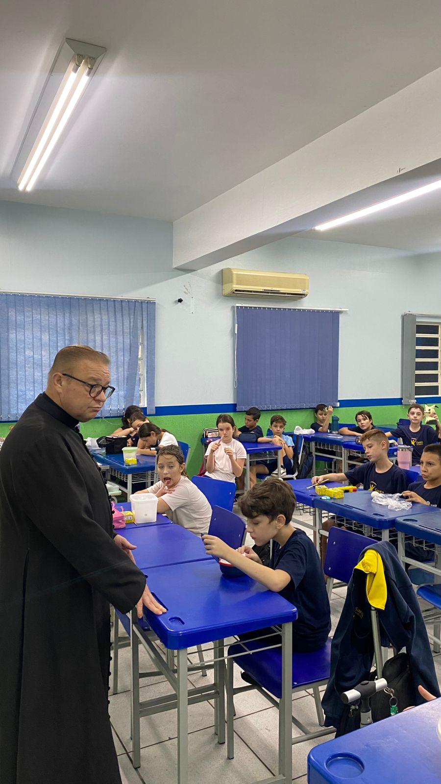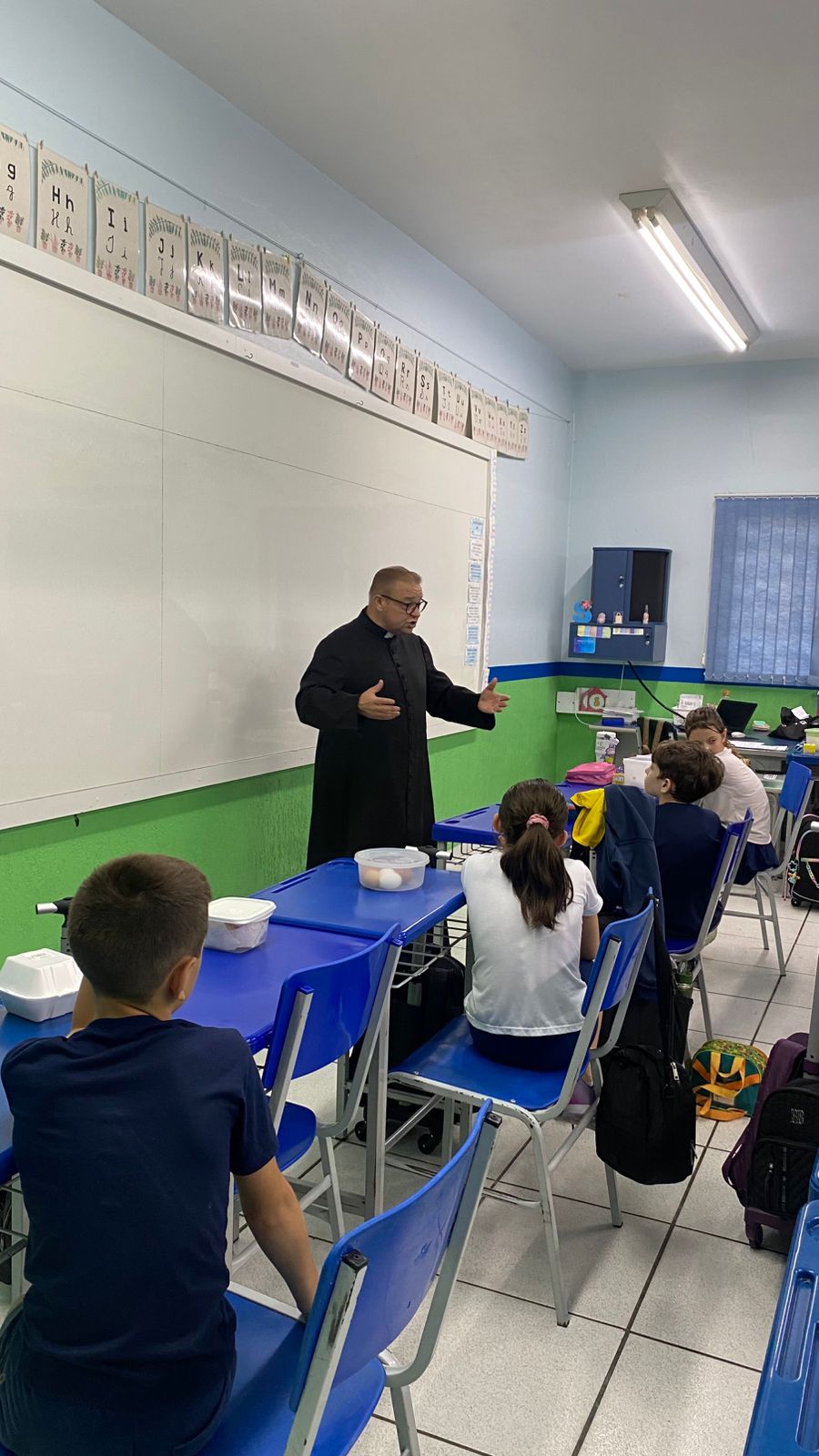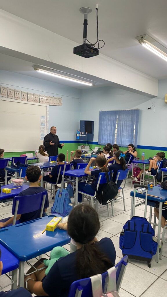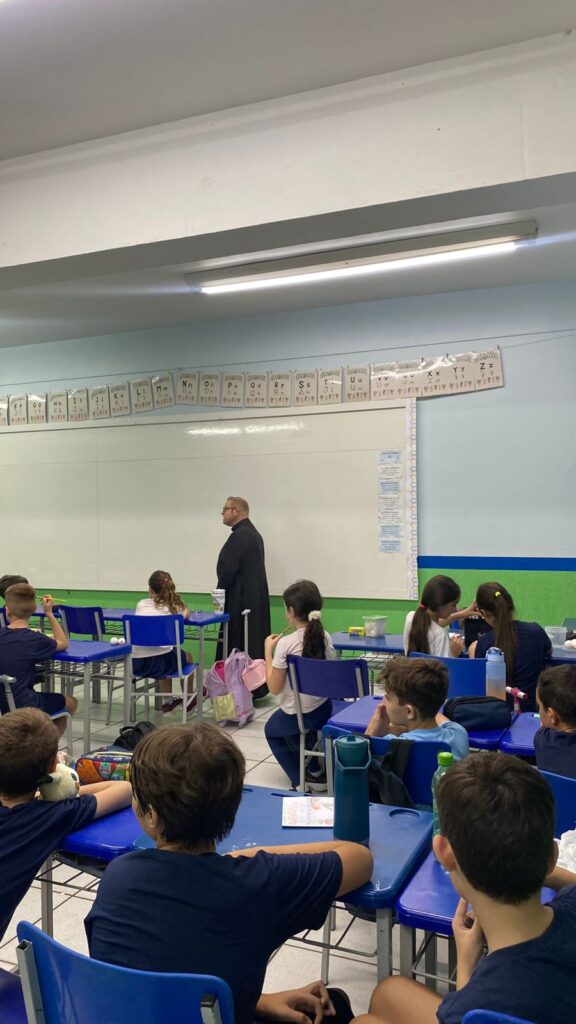 A turma do 4º ano B viveu um momento especial de escuta e aprendizado em um bate-papo com o padre. Durante o encontro, os alunos puderam fazer perguntas, compartilhar curiosidades e refletir sobre valores importantes como respeito, empatia e convivência.