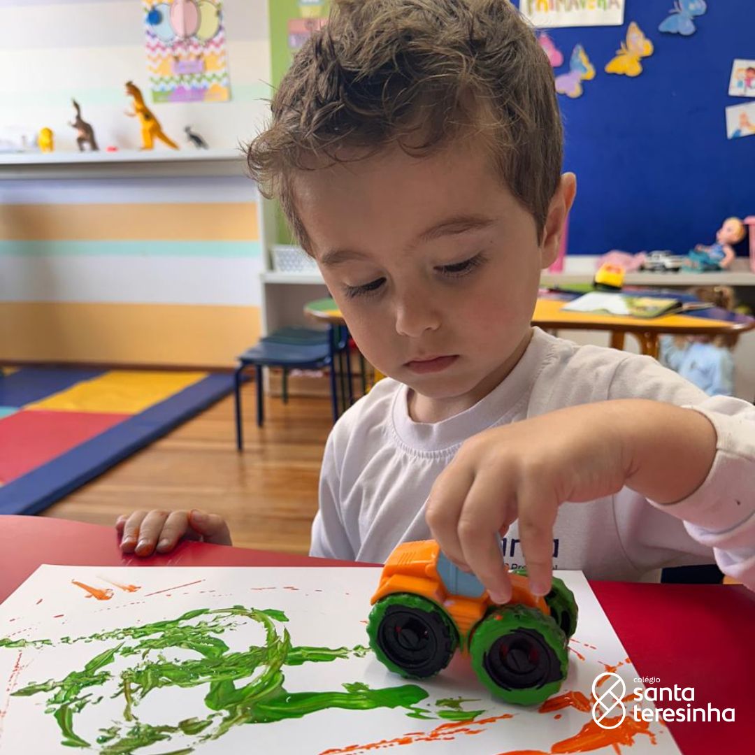 Proporcionar às crianças a exploração de diferentes formas de expressão artística, utilizando carrinhos molhados na tinta para desenvolver a coordenação motora, a criatividade e a percepção de cores e movimentos durante a atividade. Acesso rápido
