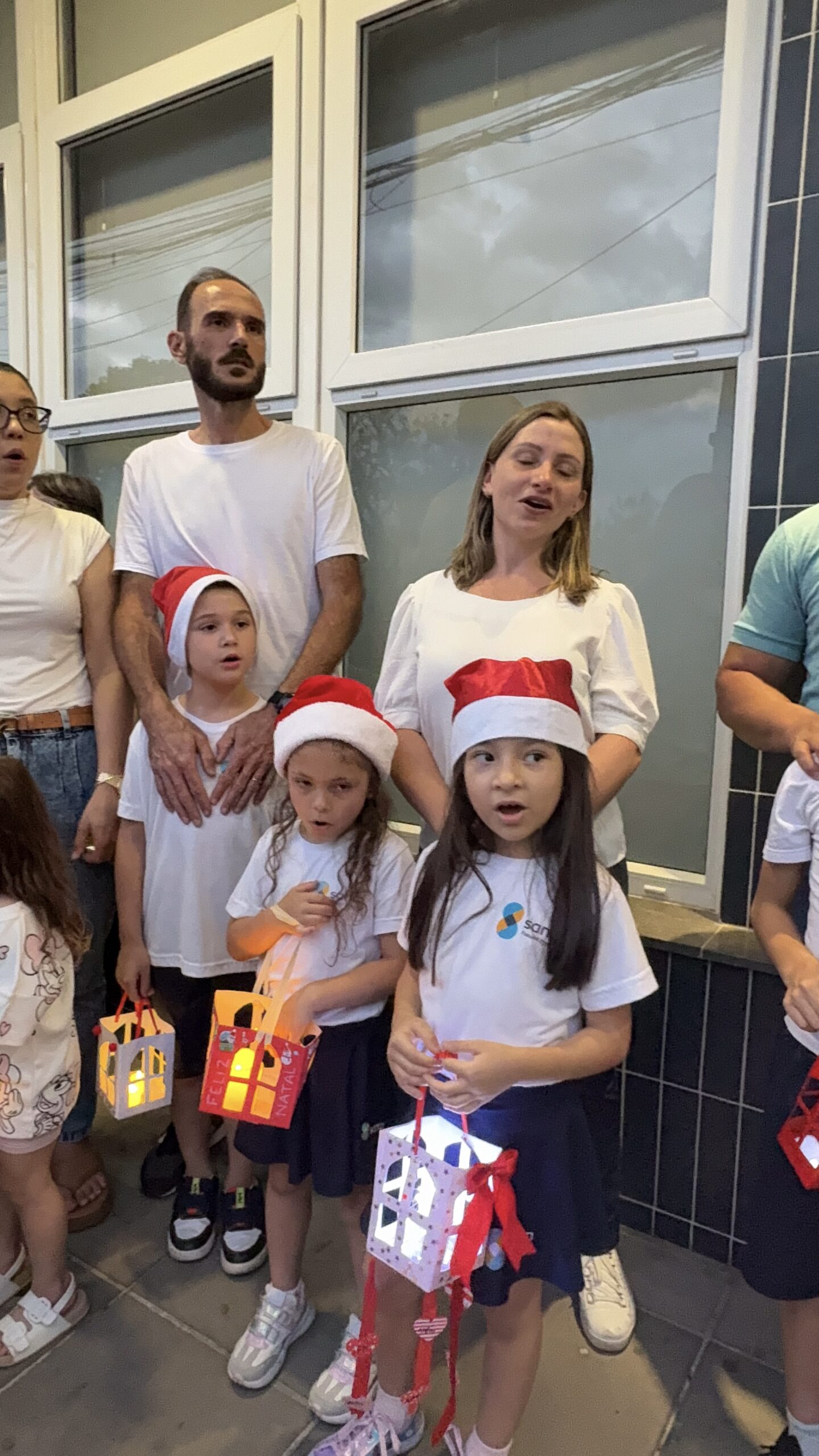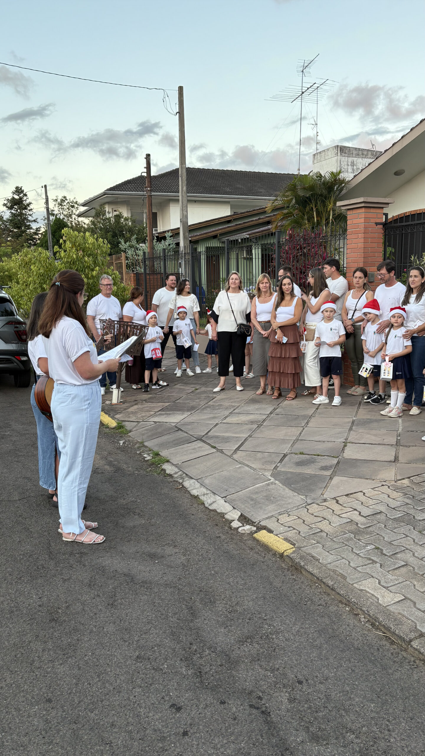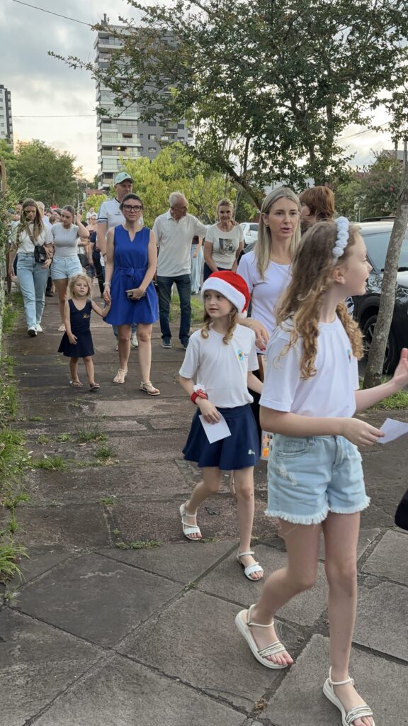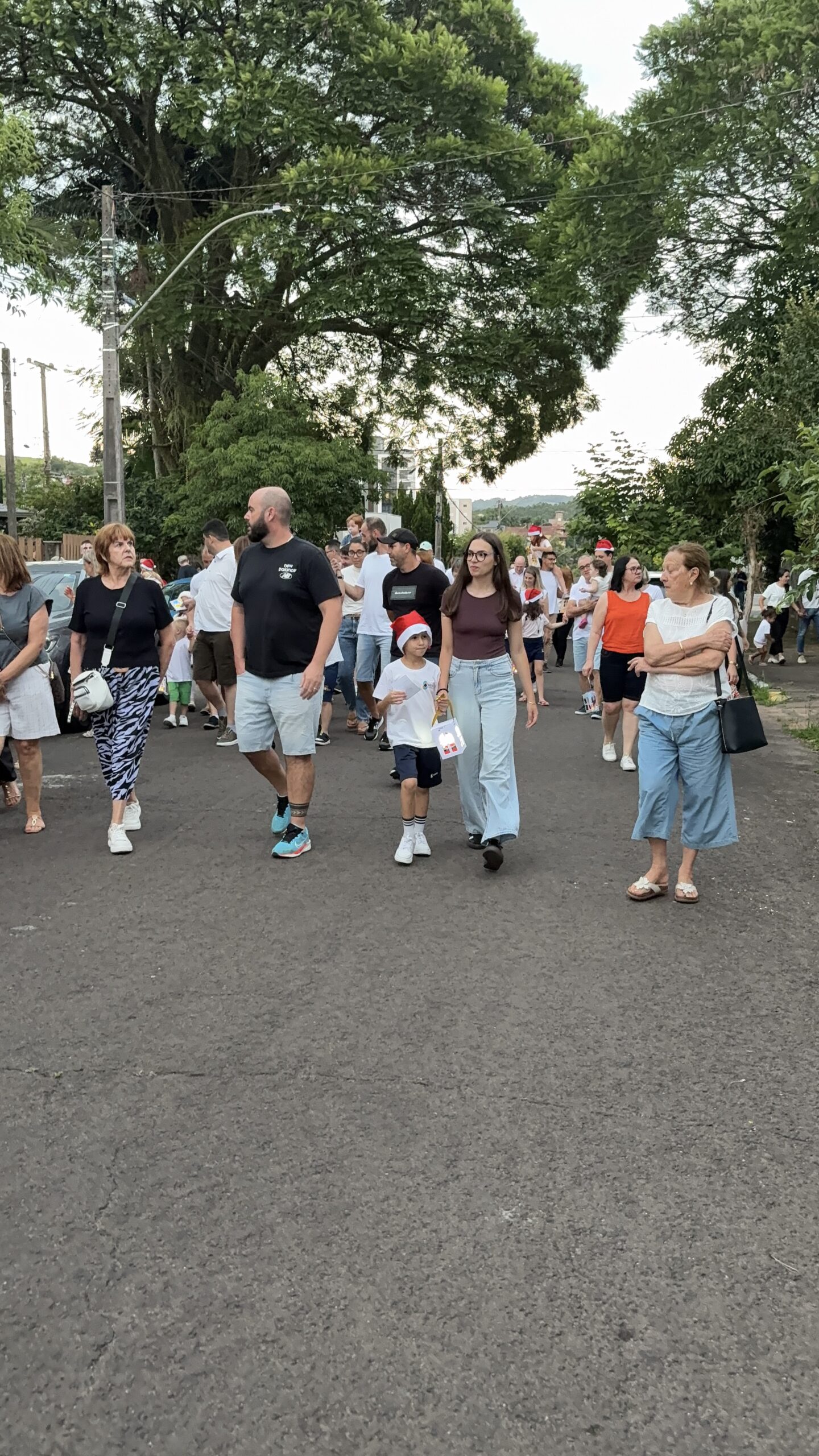 O encontro teve início na escola, com uma bela apresentação das crianças, que encantaram o público e prepararam os corações para a caminhada. Em seguida, alunos e familiares seguiram pelas ruas, cantando juntos e iluminando o caminho, em um gesto de união, fé e amor. Cada passo foi acompanhado por olhares atentos, vozes emocionadas e muita alegria compartilhada.