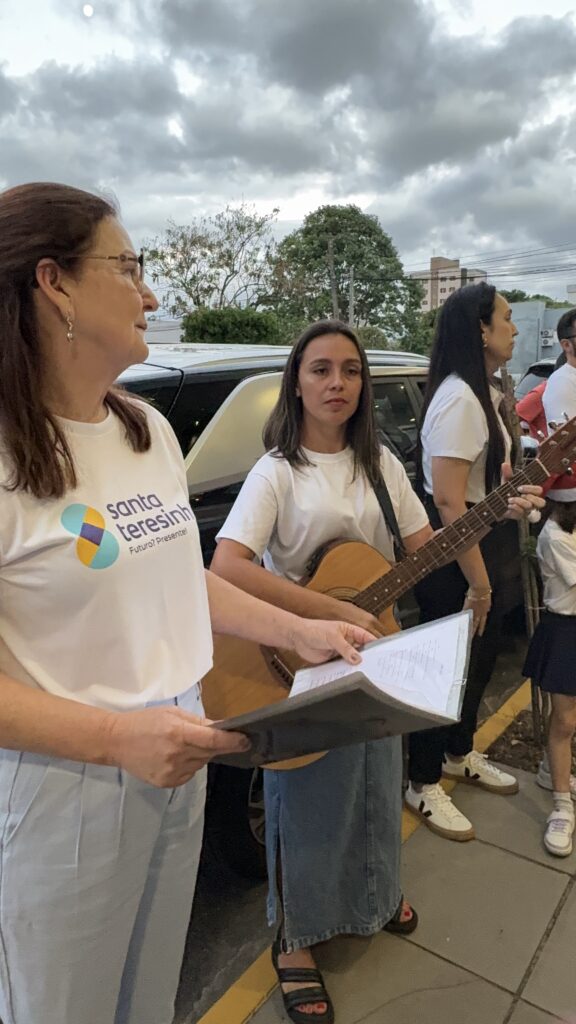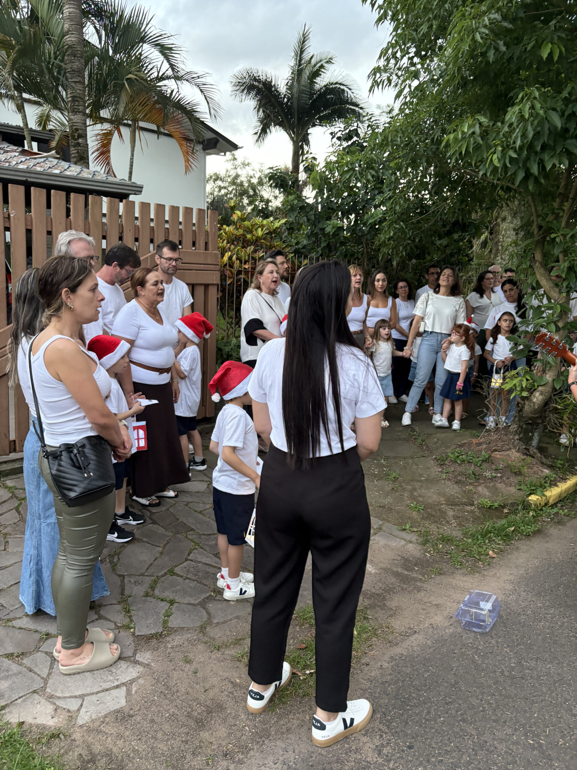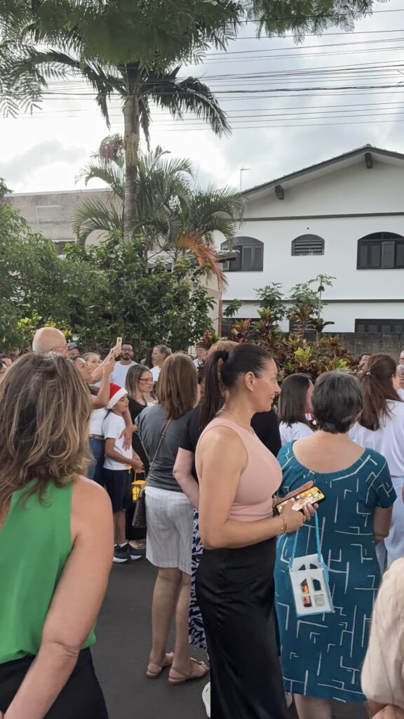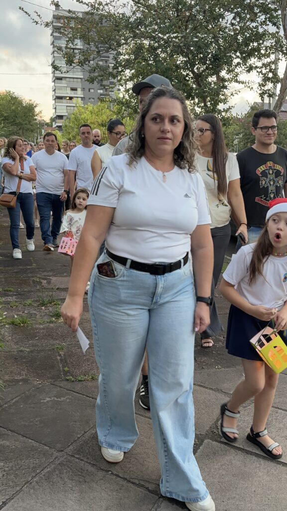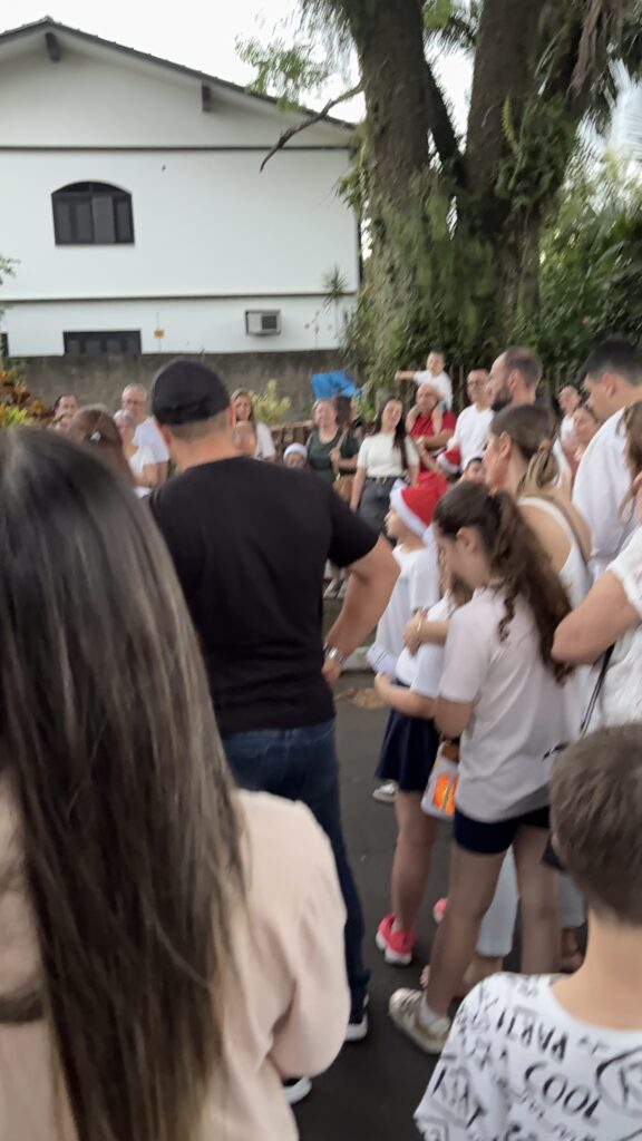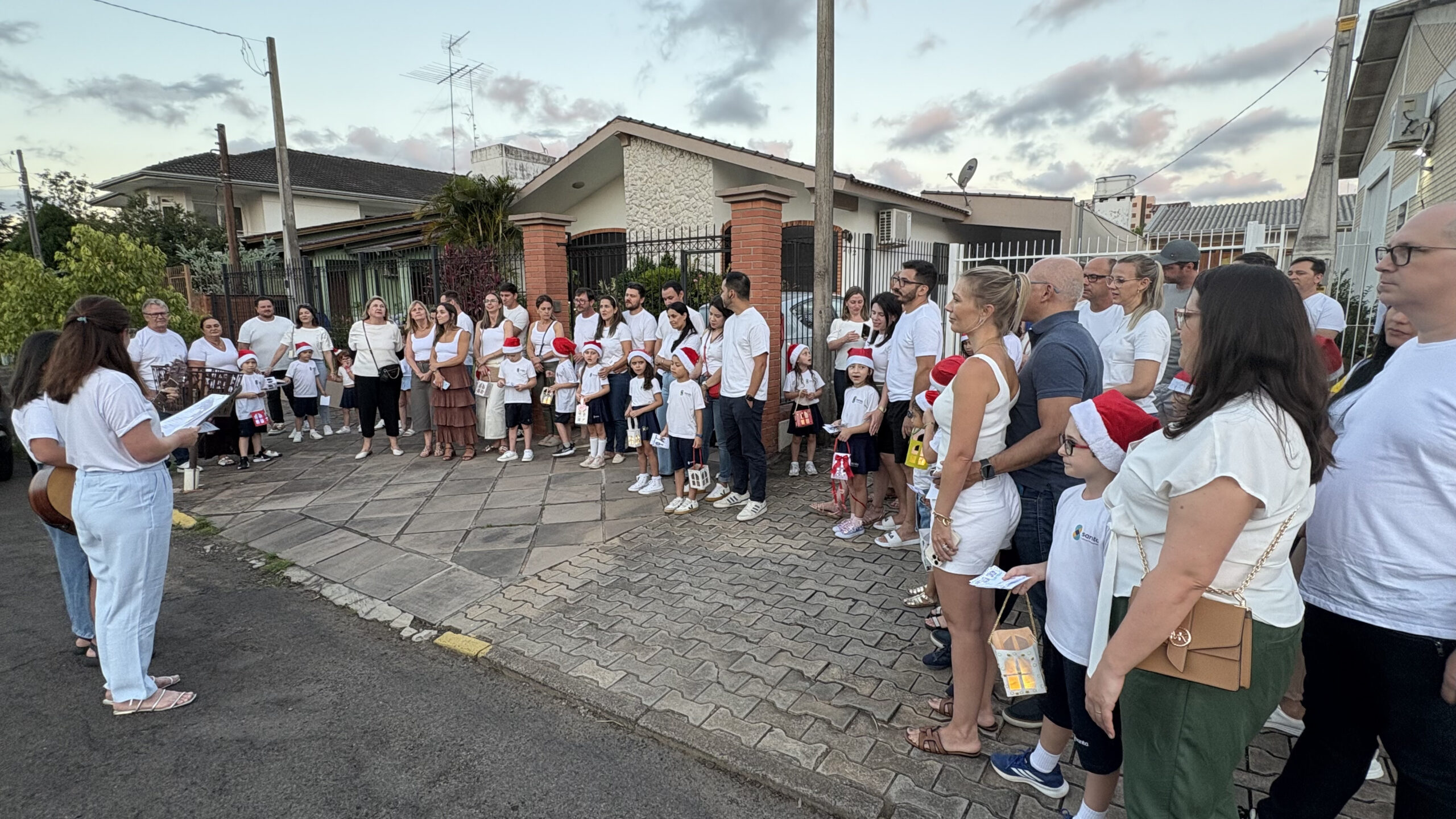 O encontro teve início na escola, com uma bela apresentação das crianças, que encantaram o público e prepararam os corações para a caminhada. Em seguida, alunos e familiares seguiram pelas ruas, cantando juntos e iluminando o caminho, em um gesto de união, fé e amor. Cada passo foi acompanhado por olhares atentos, vozes emocionadas e muita alegria compartilhada.