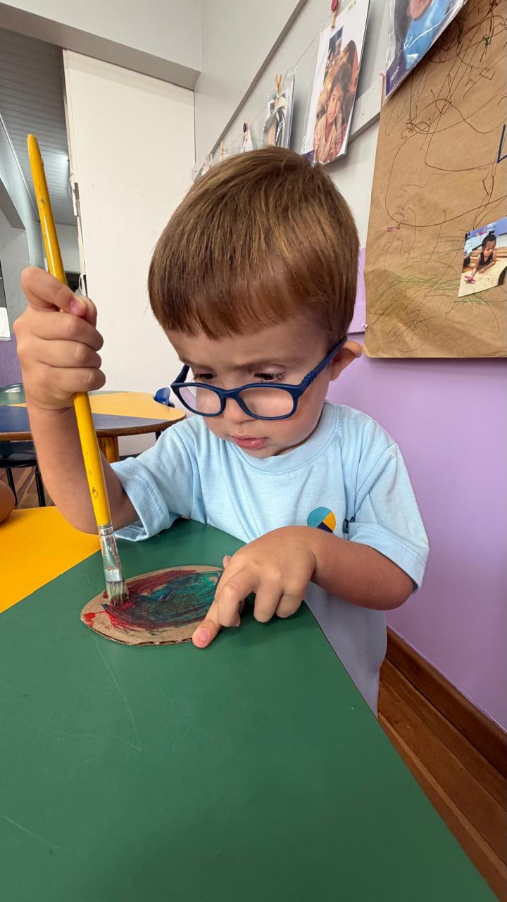 Com tintas e sorrisos vamos criar,Cores da Páscoa a nos encantar,Aprendendo e brincando com o coração,Turma do maternal cheia de imaginação!