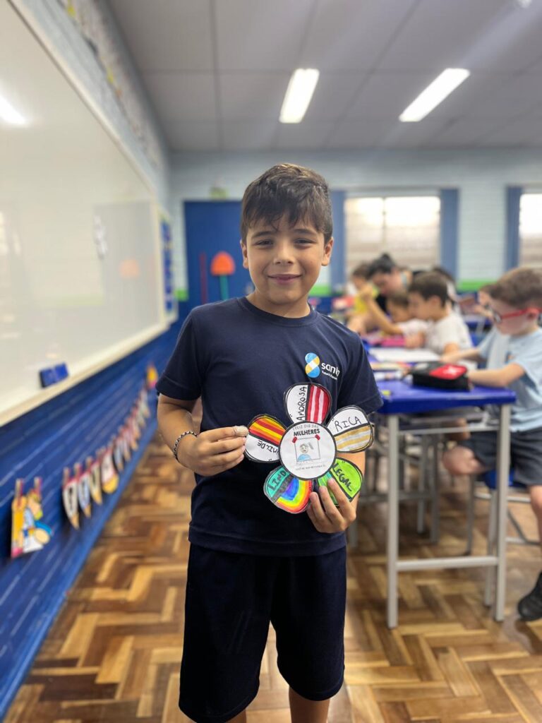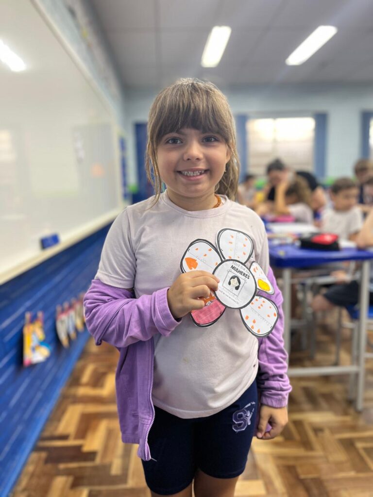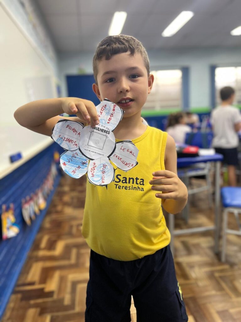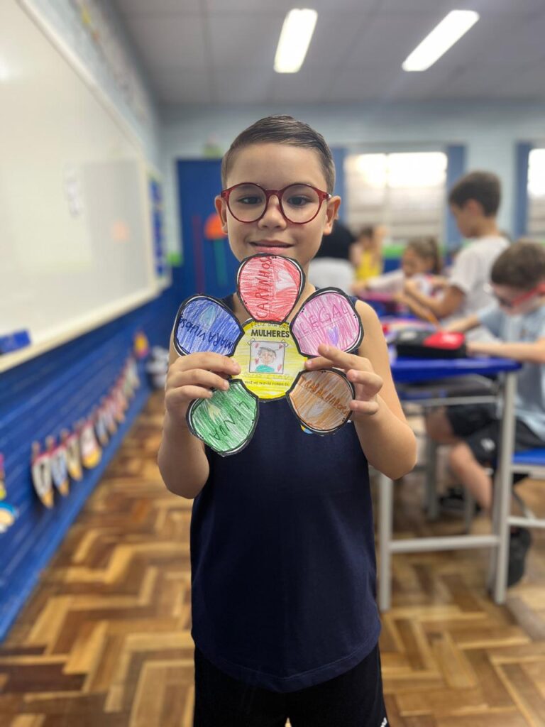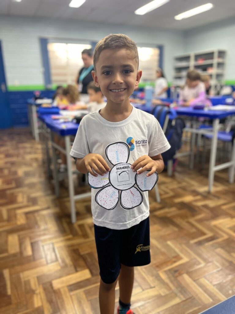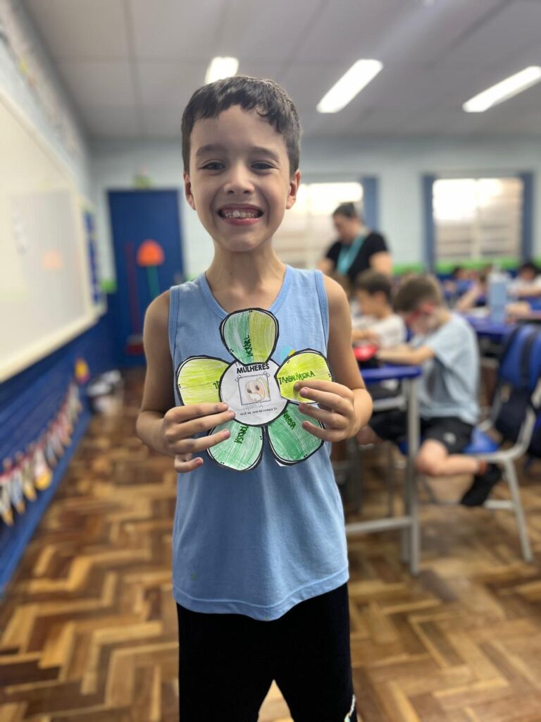 Em comemoração ao Dia da Mulher, os alunos do 3º ano A participaram de um momento de conversa e reflexão com a professora e os colegas sobre a importância dessa data. Durante a atividade, cada aluno confeccionou uma flor e escolheu uma mulher especial em sua vida para presentear. Além disso, compartilharam o motivo pelo qual essa mulher é uma inspiração para eles. Foi um momento muito especial, marcado por carinho, respeito, aprendizado e lindas reflexões.
