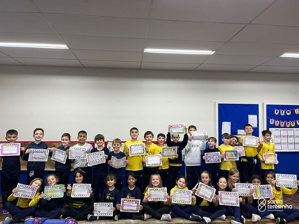 A semana das mães na turma do 3º ano foi muito especial. Cada dia da semana os alunos confeccionaram um mimo para levar para a mãe como, certificado de melhor mãe do mundo, vale presente, marca página e desenho. Também foram confeccionadas os presentes das mães, pulseiras e chaveiros, feito com miçangas. No sábado, os alunos receberam suas mães para realizar atividades de educação junto com o professor Richard e em seguida, prepararam uma apresentação recheada de amor e carinho para as suas mães.