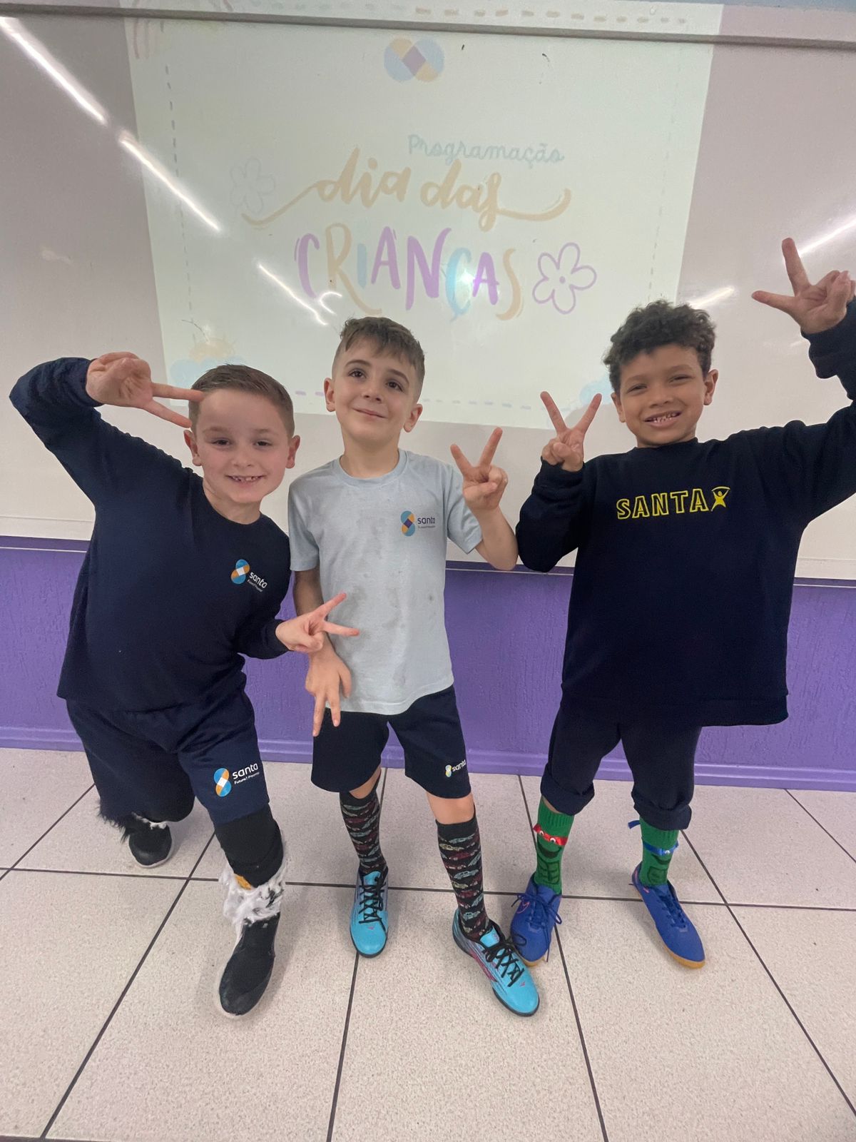 Em comemoração ao dia das crianças, os estudantes puderam vir com meias divertidas, confeccionadas pelas famílias!