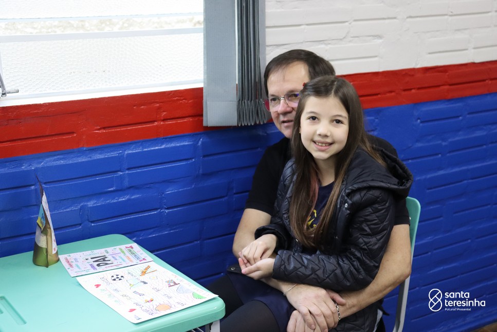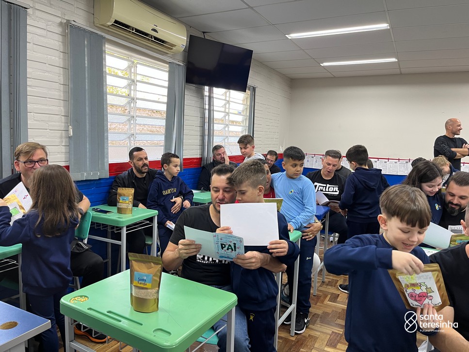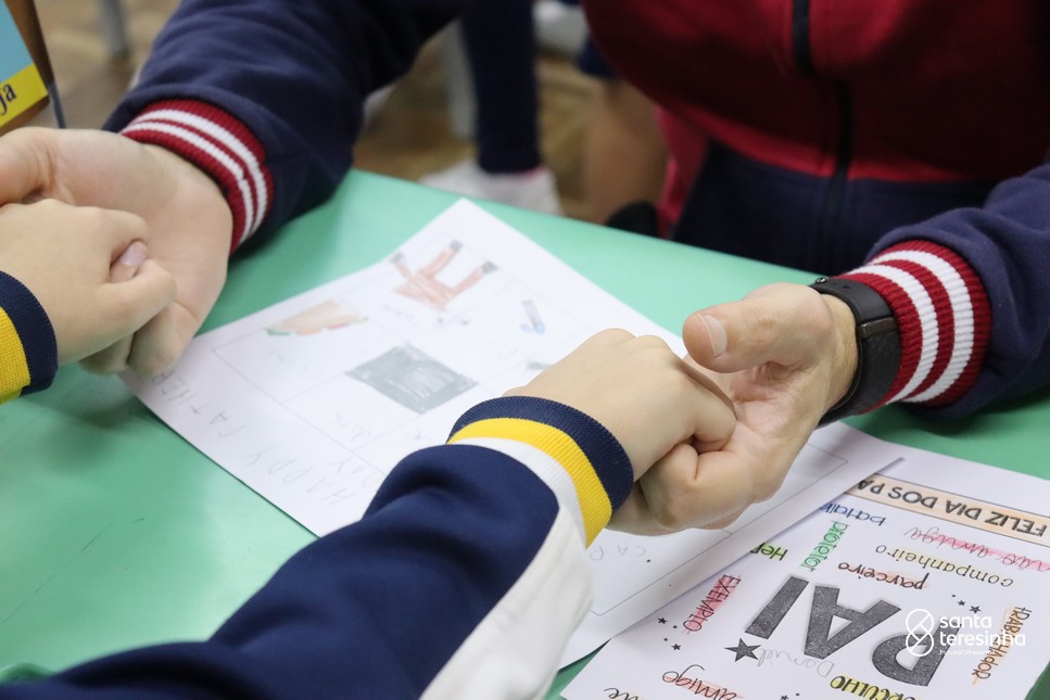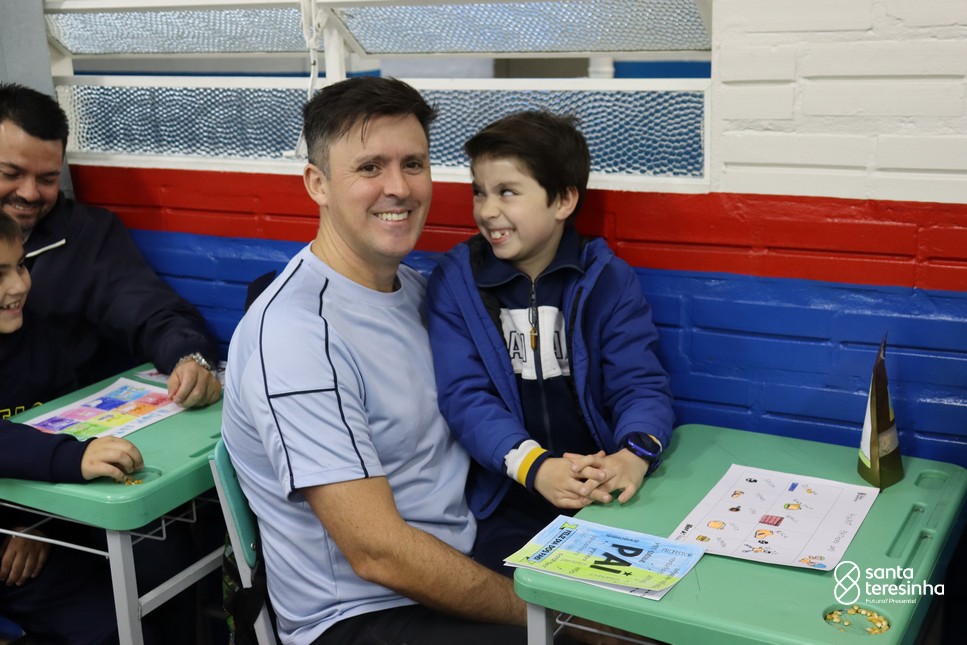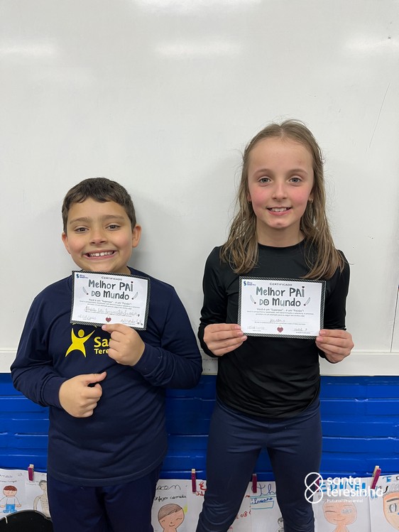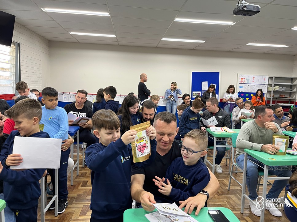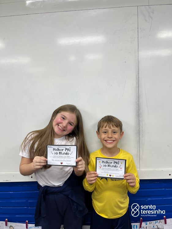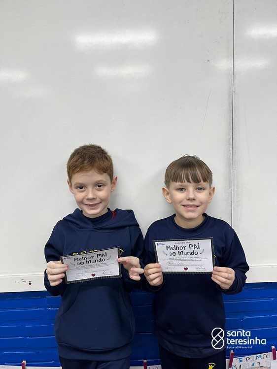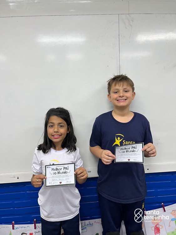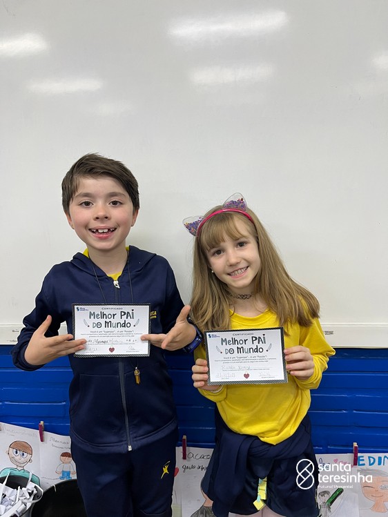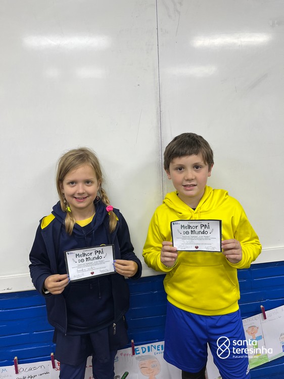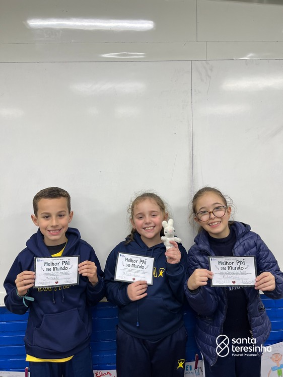 A semana dos pais na turma do 3º ano foi muito especial. Os alunos confeccionaram mimos como, certificado de melhor pai do mundo, vale presente e desenho. Também confeccionaram o presente e o cartão, com muita dedicação e amor. No sábado, os alunos receberam seus pais em sua sala de aula para realizar um bingo de inglês junto com o professor Marcelo e em seguida, prepararam uma apresentação recheada de amor e carinho.