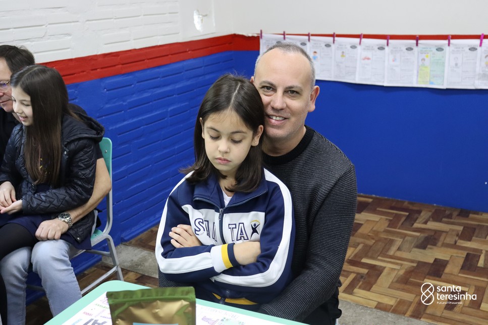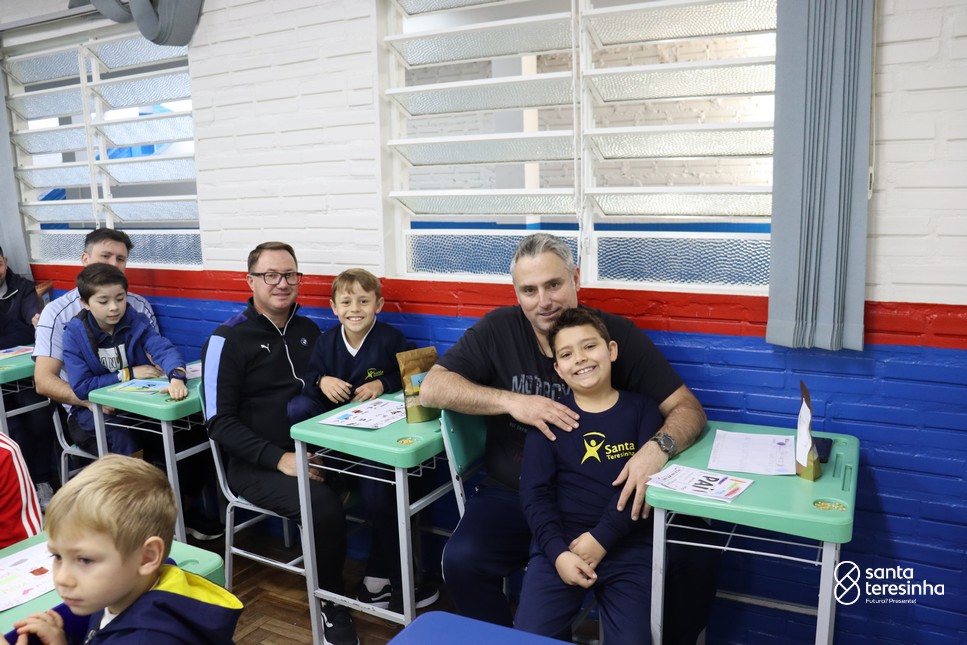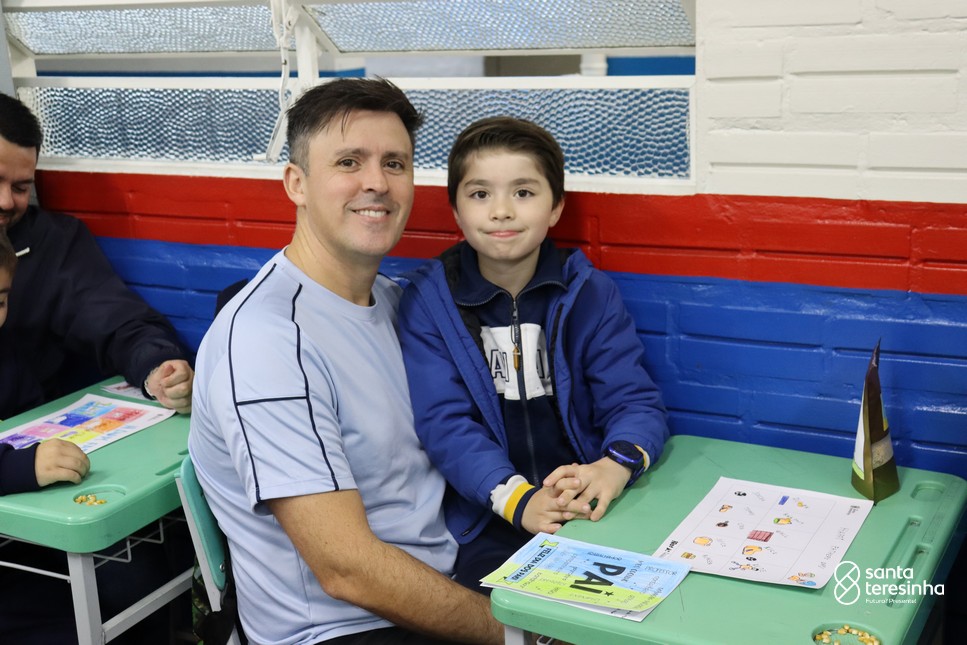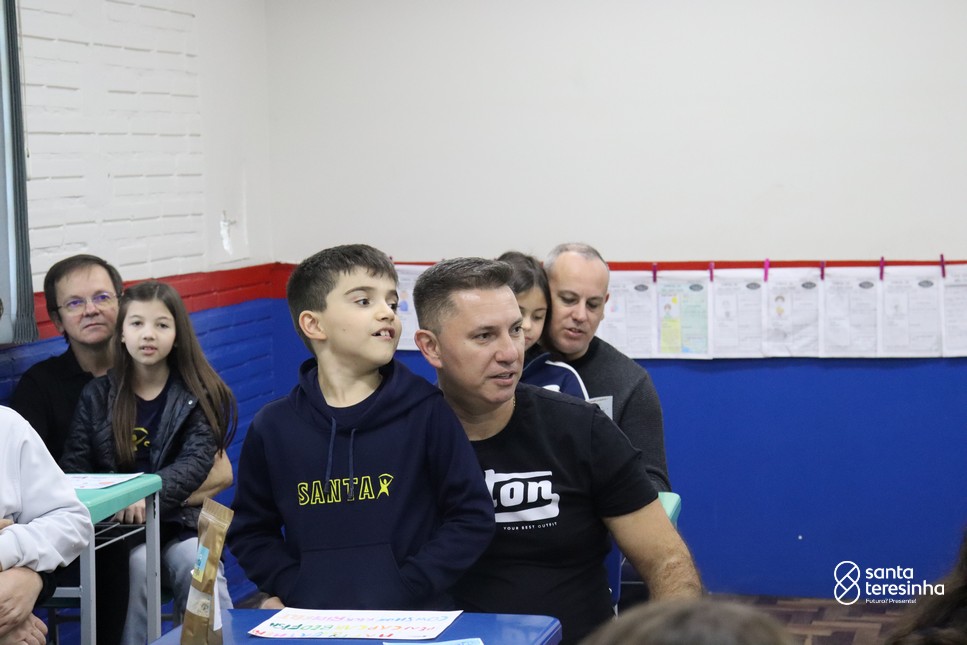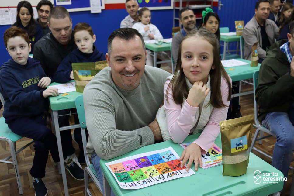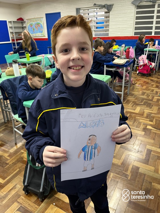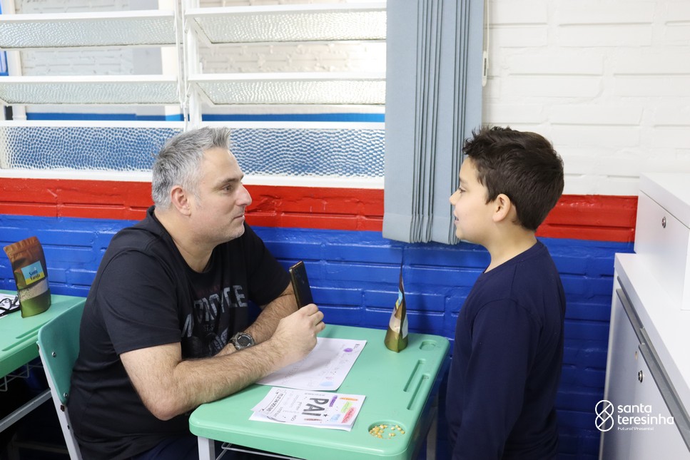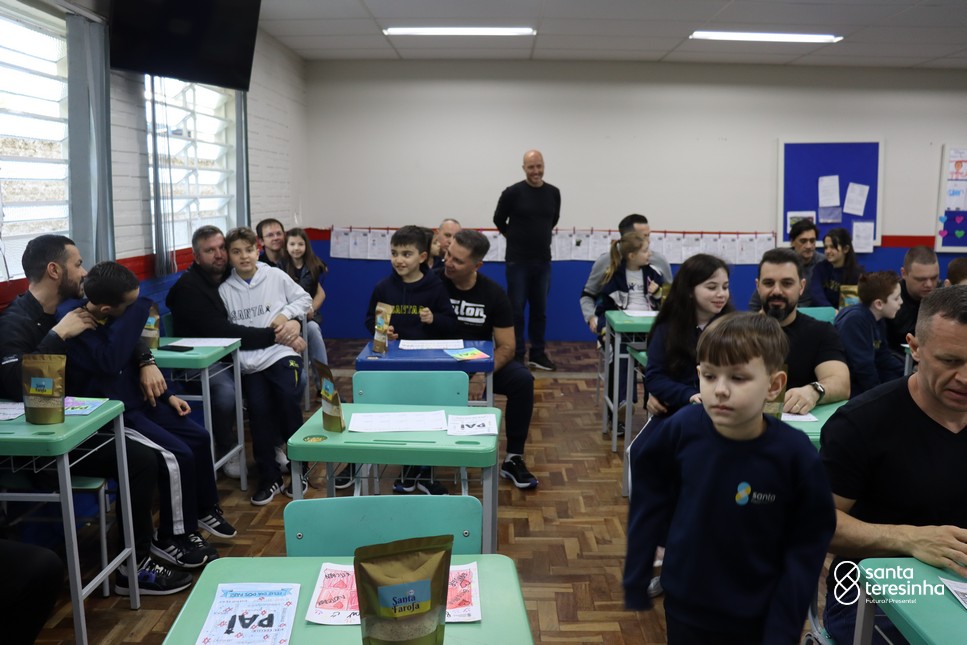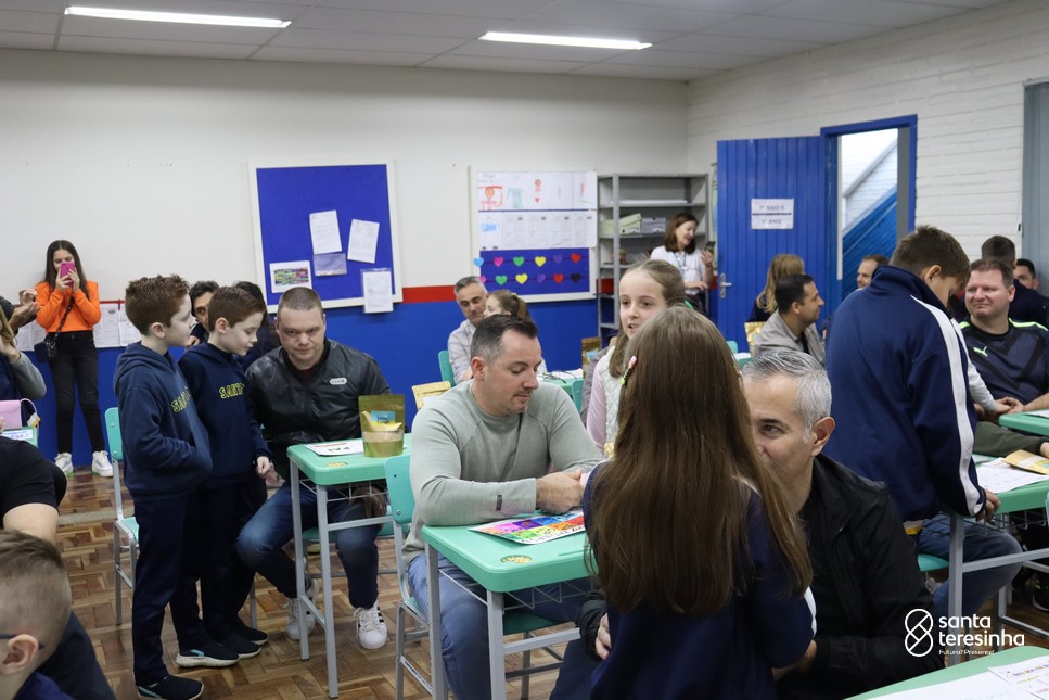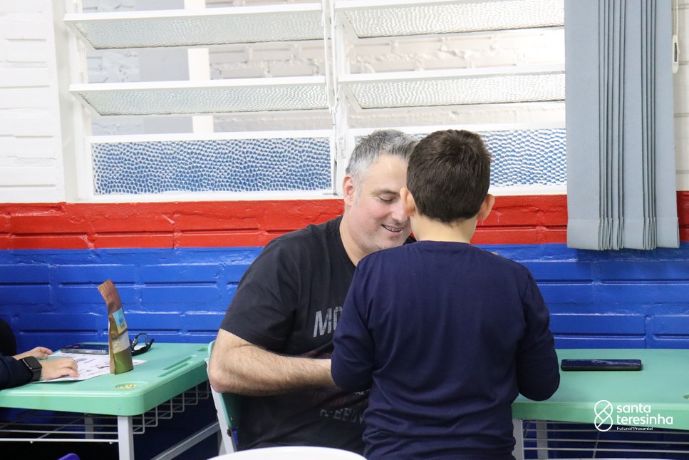 A semana dos pais na turma do 3º ano foi muito especial. Os alunos confeccionaram mimos como, certificado de melhor pai do mundo, vale presente e desenho. Também confeccionaram o presente e o cartão, com muita dedicação e amor. No sábado, os alunos receberam seus pais em sua sala de aula para realizar um bingo de inglês junto com o professor Marcelo e em seguida, prepararam uma apresentação recheada de amor e carinho.