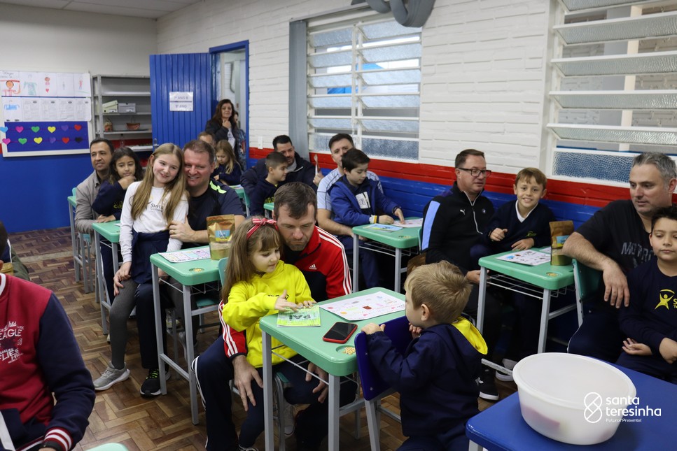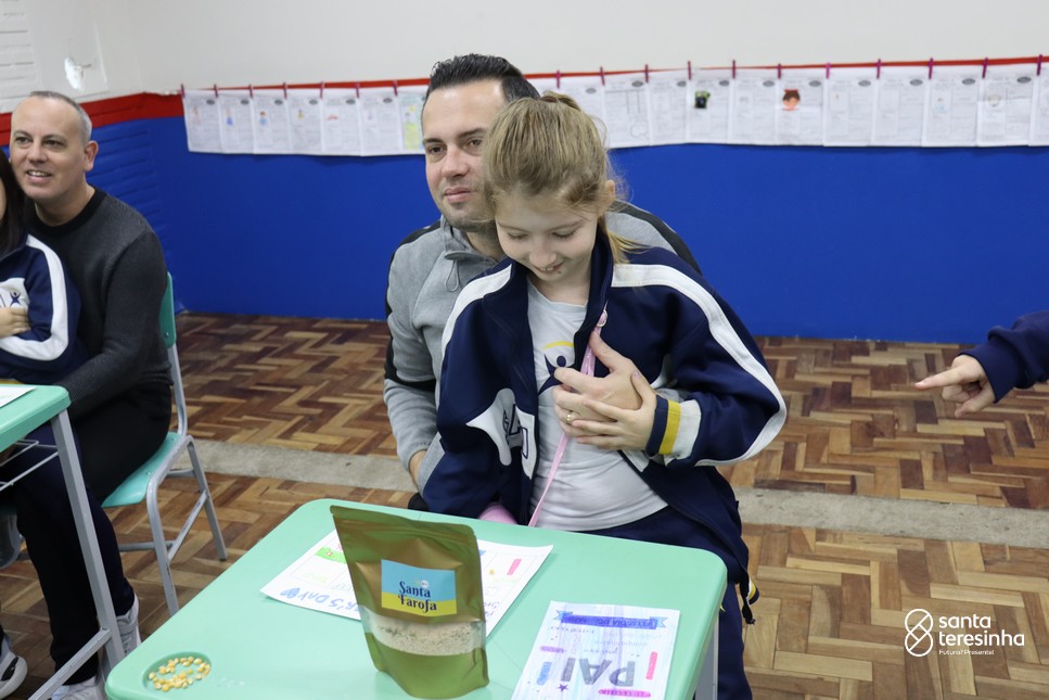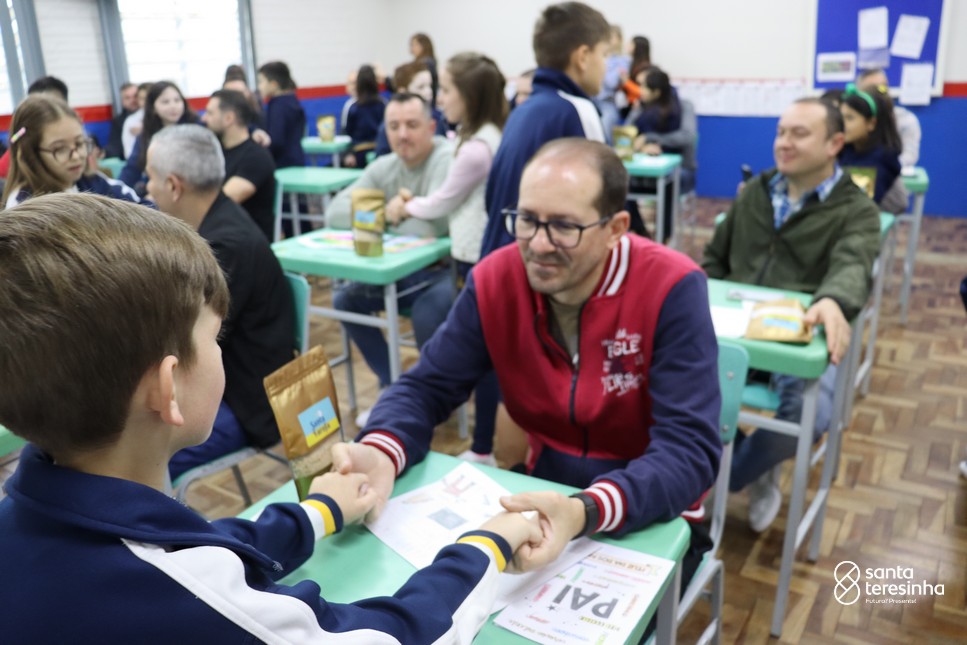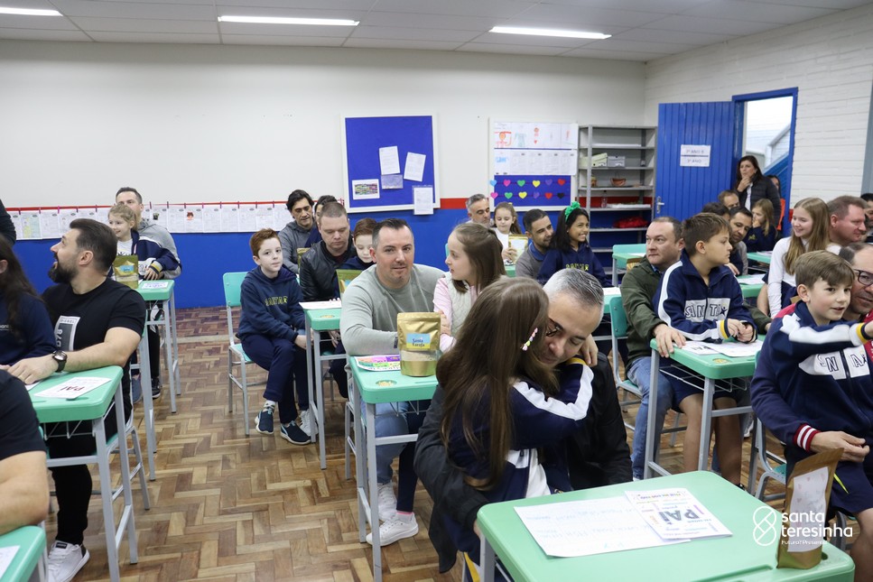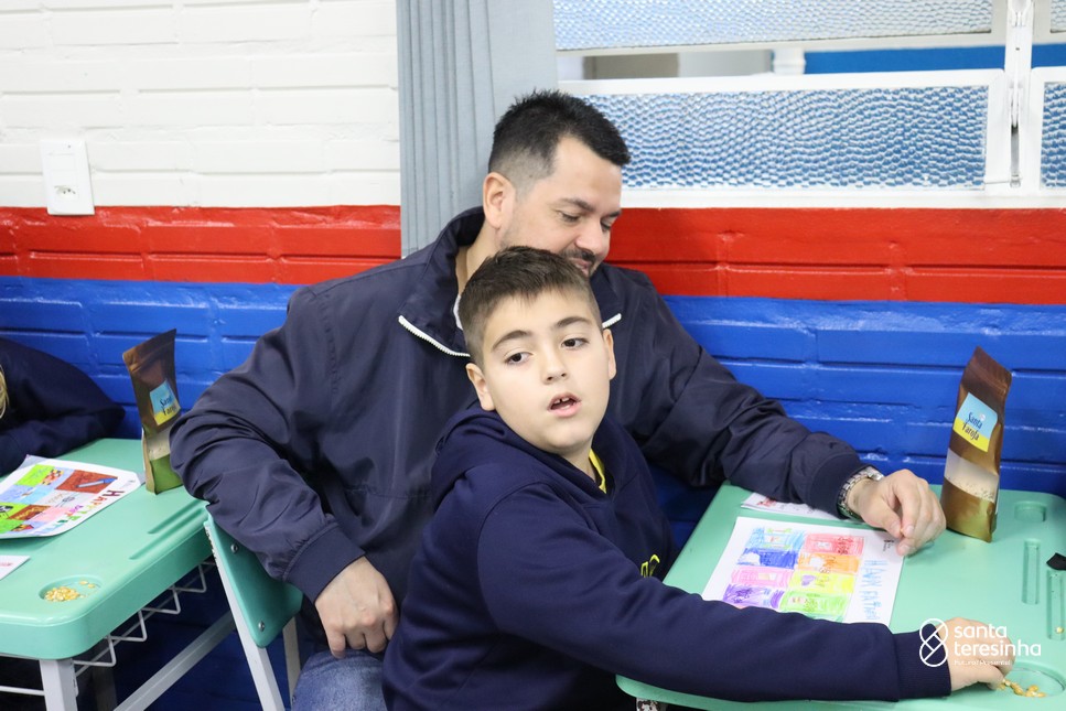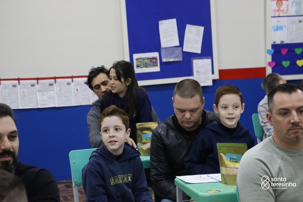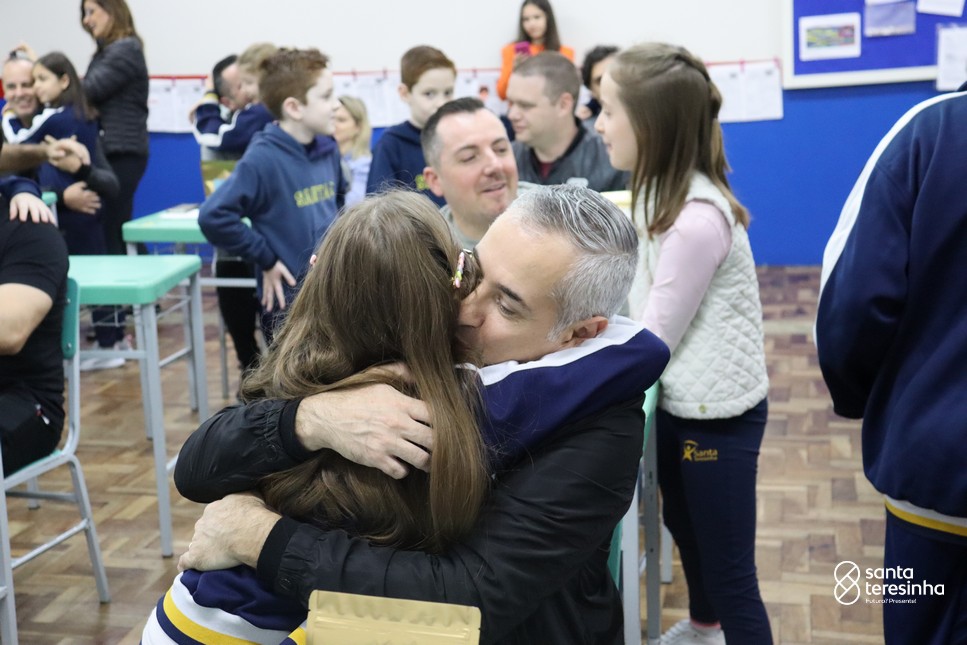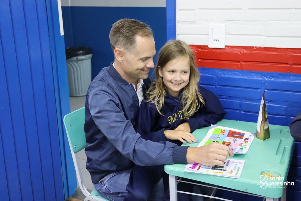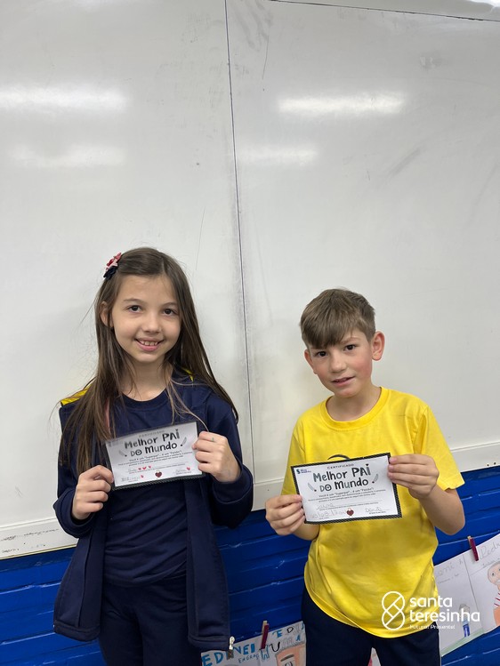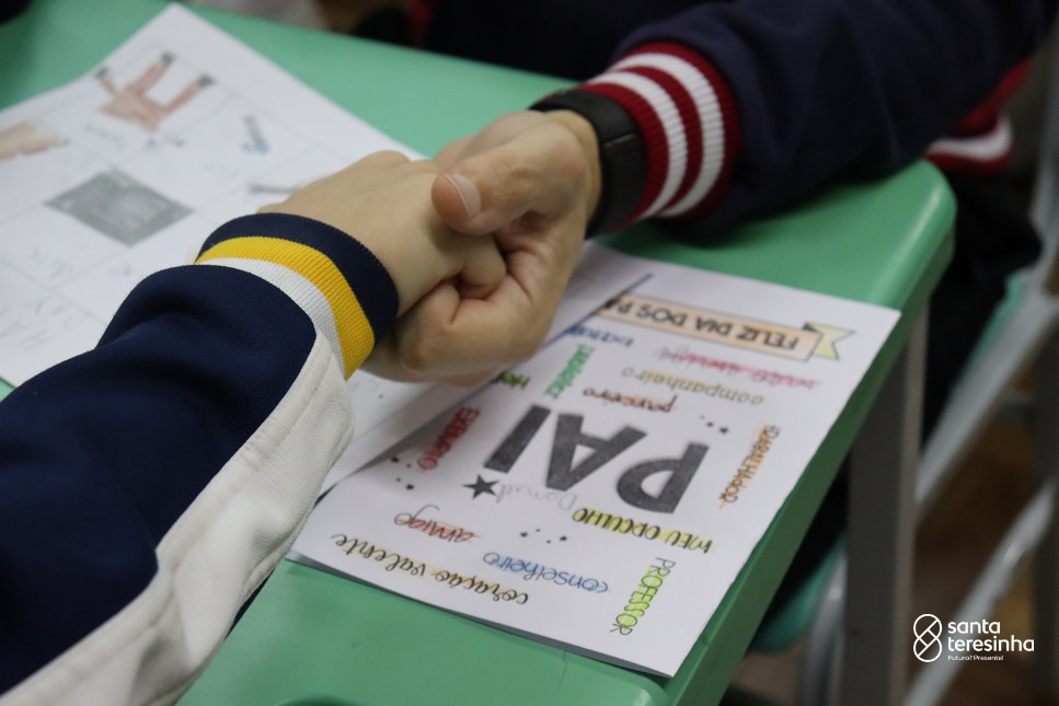 A semana dos pais na turma do 3º ano foi muito especial. Os alunos confeccionaram mimos como, certificado de melhor pai do mundo, vale presente e desenho. Também confeccionaram o presente e o cartão, com muita dedicação e amor. No sábado, os alunos receberam seus pais em sua sala de aula para realizar um bingo de inglês junto com o professor Marcelo e em seguida, prepararam uma apresentação recheada de amor e carinho.