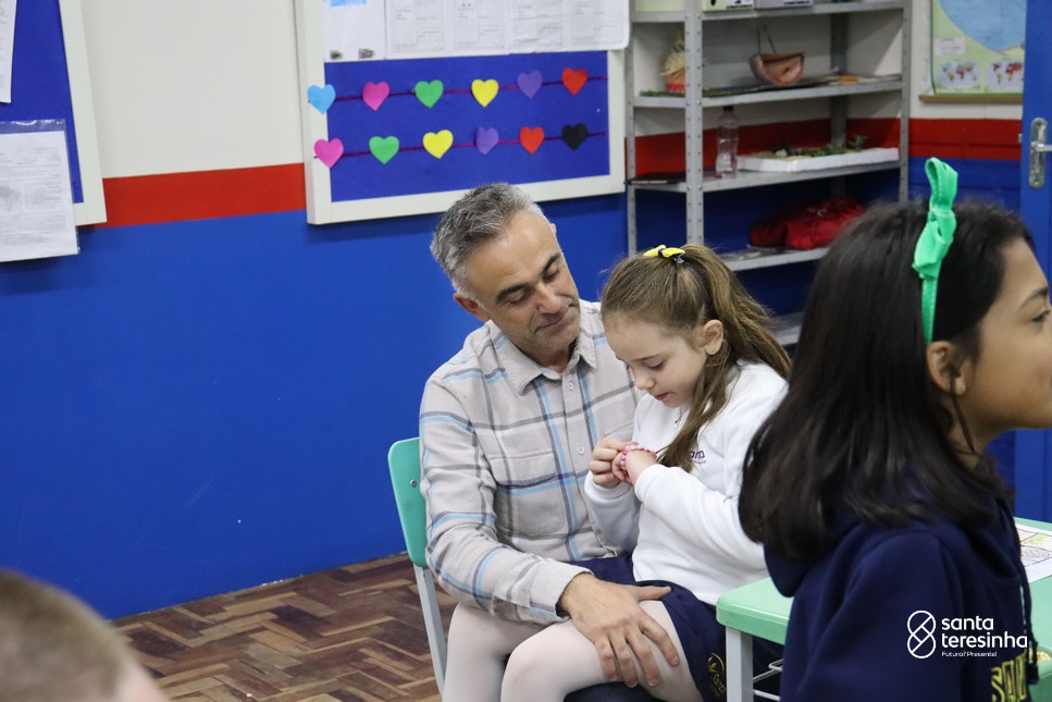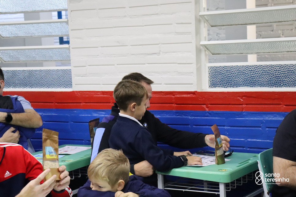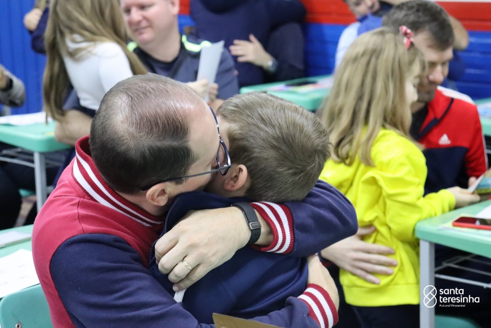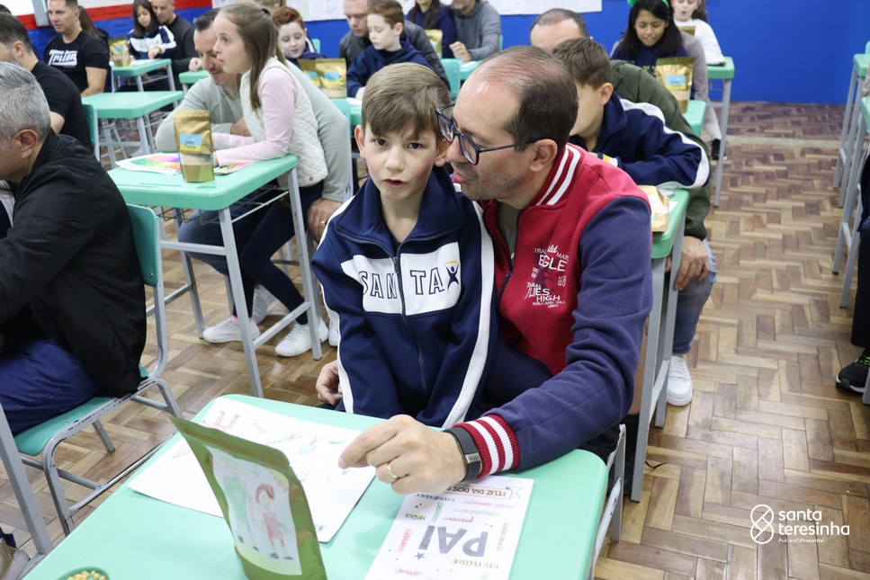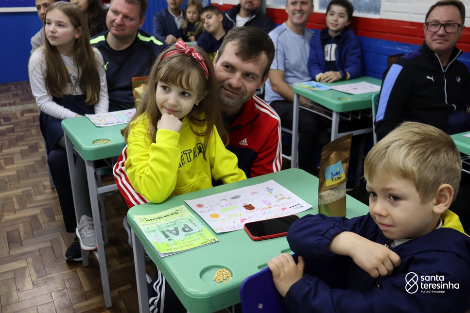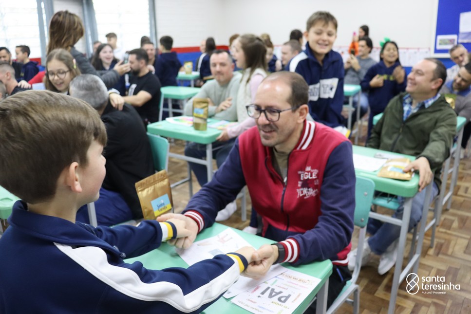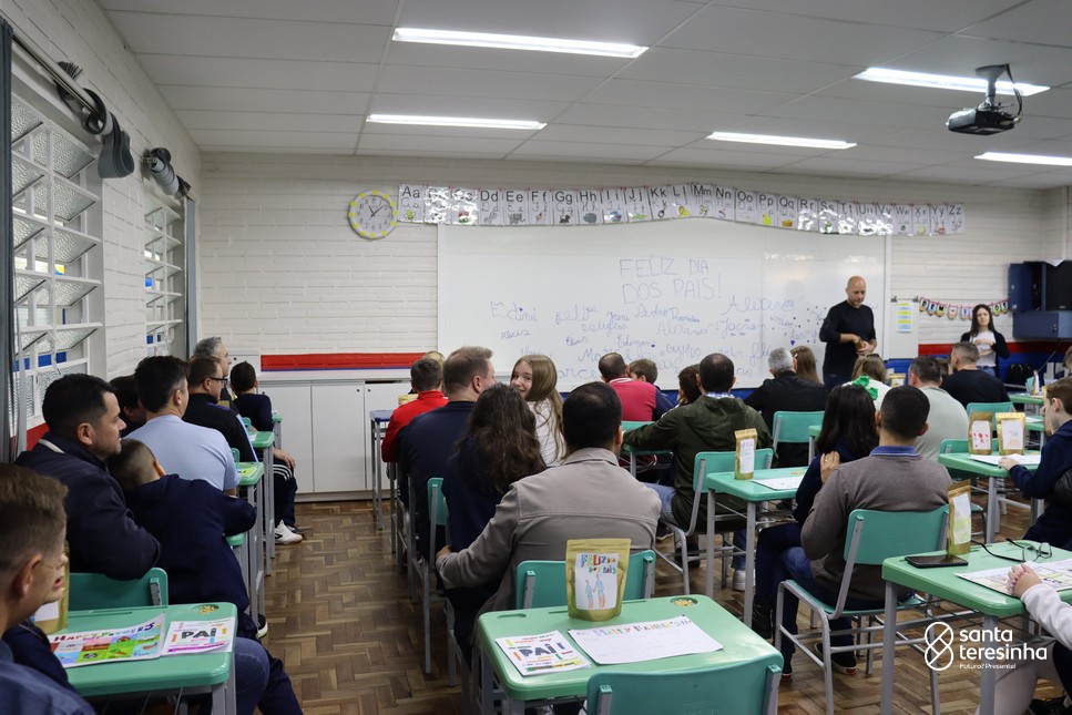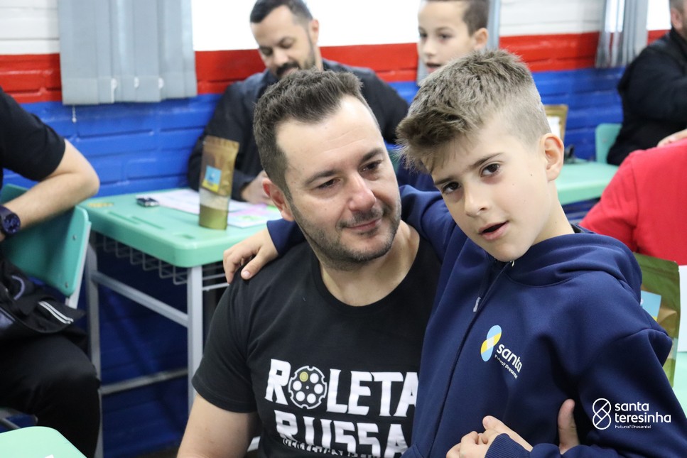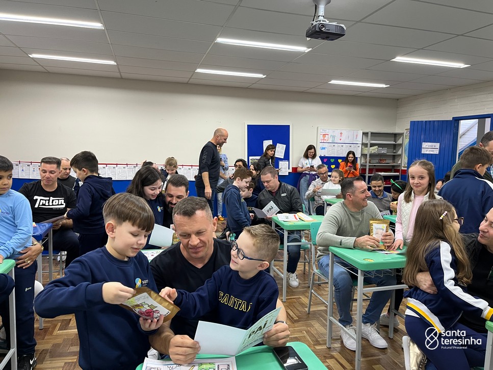 A semana dos pais na turma do 3º ano foi muito especial. Os alunos confeccionaram mimos como, certificado de melhor pai do mundo, vale presente e desenho. Também confeccionaram o presente e o cartão, com muita dedicação e amor. No sábado, os alunos receberam seus pais em sua sala de aula para realizar um bingo de inglês junto com o professor Marcelo e em seguida, prepararam uma apresentação recheada de amor e carinho.