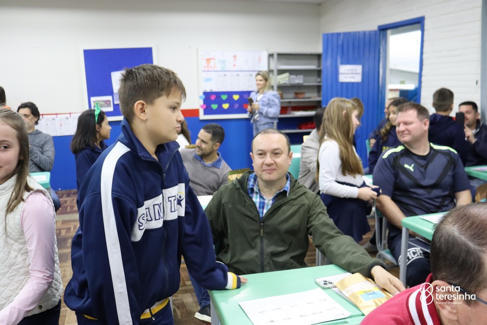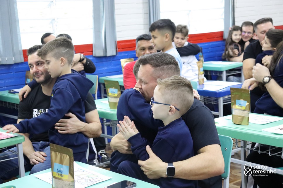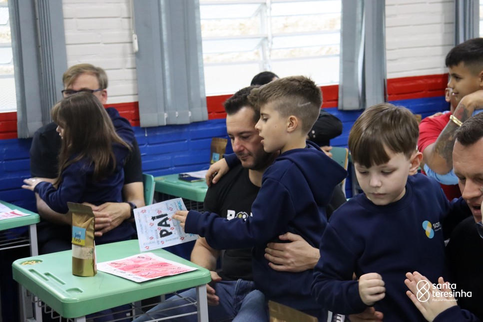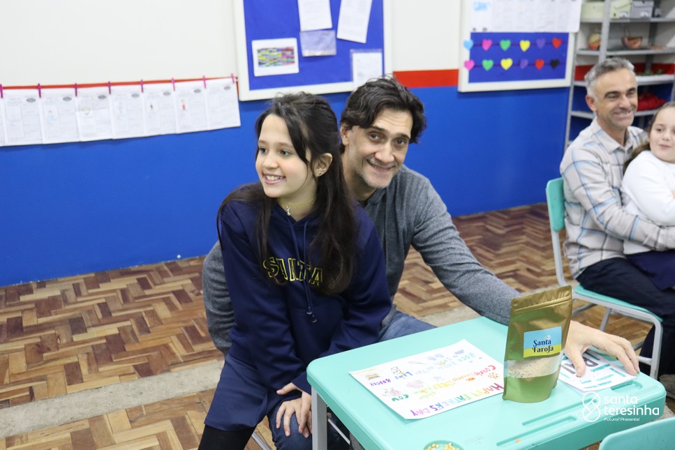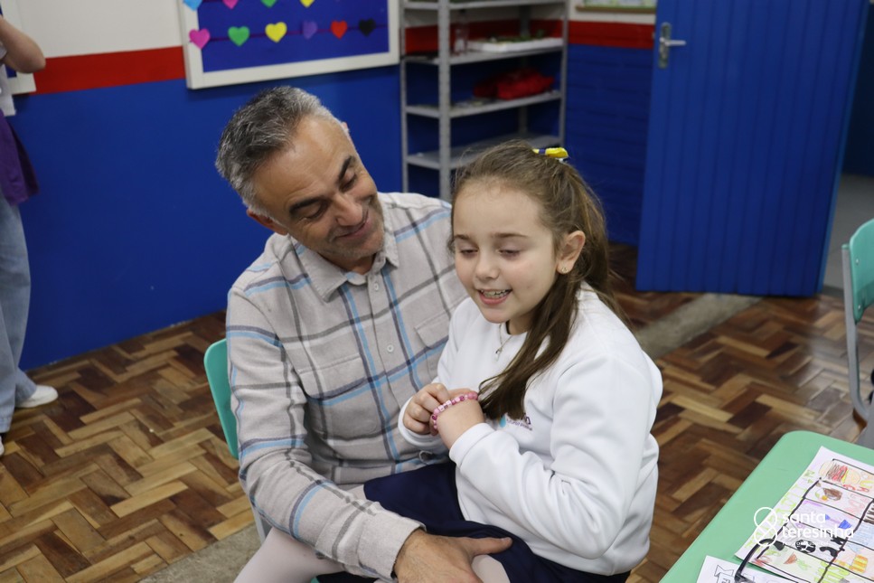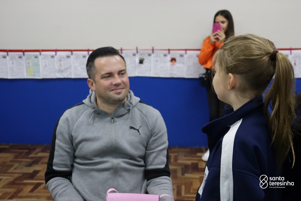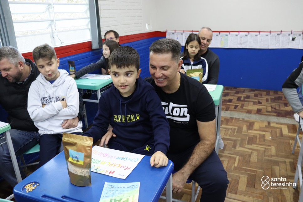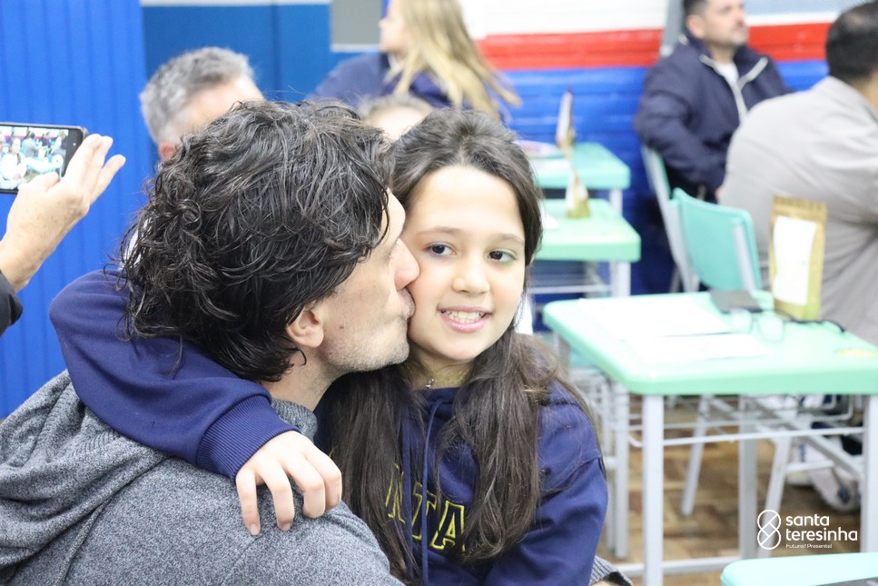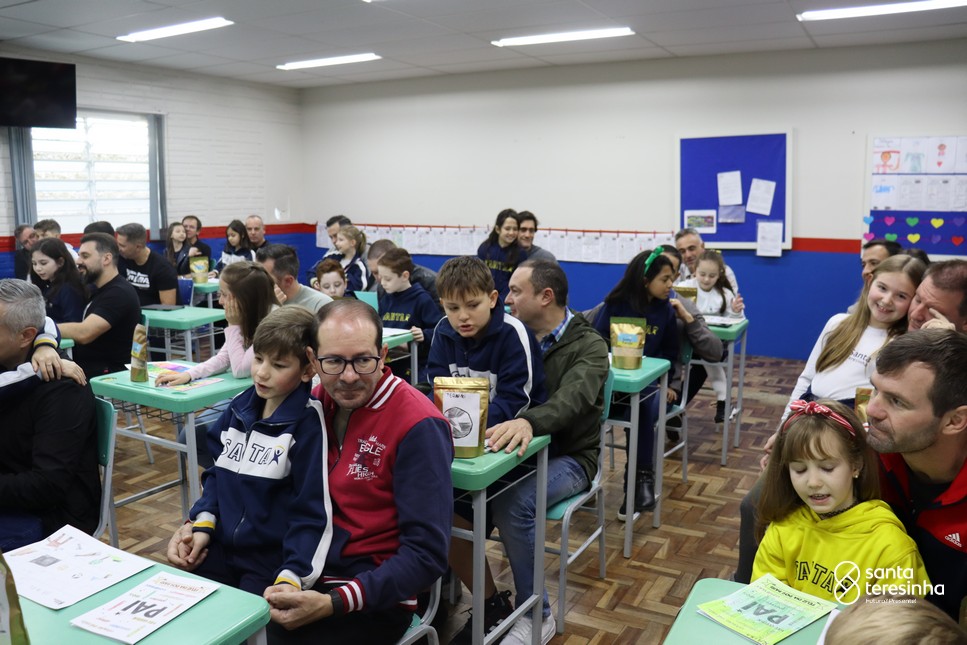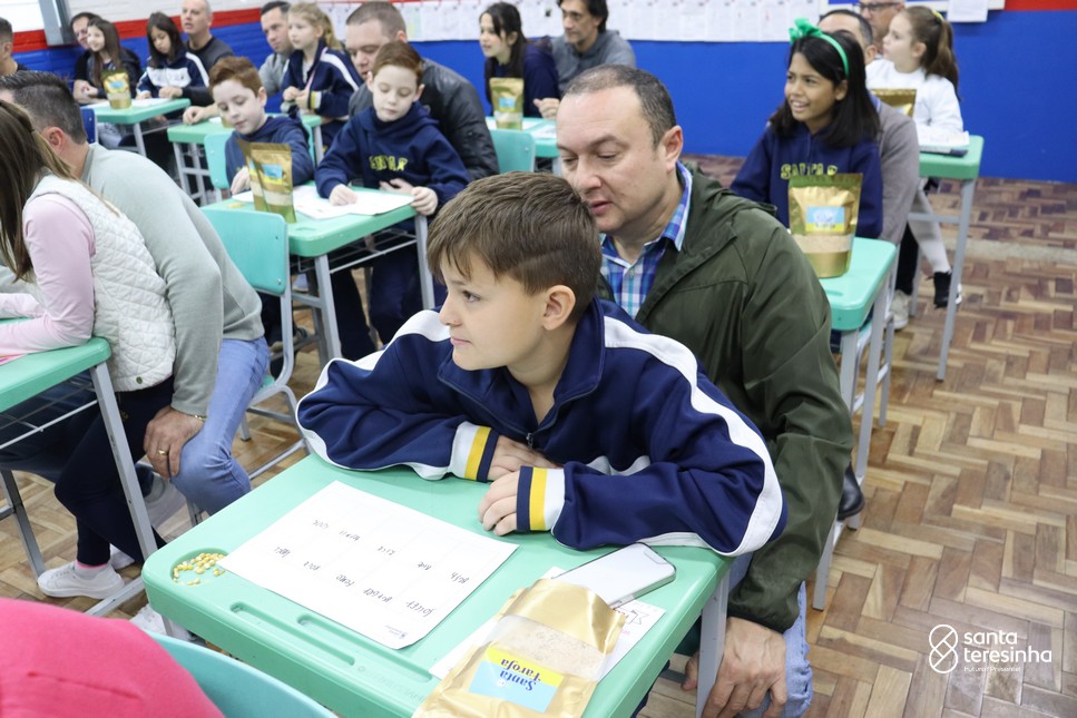 A semana dos pais na turma do 3º ano foi muito especial. Os alunos confeccionaram mimos como, certificado de melhor pai do mundo, vale presente e desenho. Também confeccionaram o presente e o cartão, com muita dedicação e amor. No sábado, os alunos receberam seus pais em sua sala de aula para realizar um bingo de inglês junto com o professor Marcelo e em seguida, prepararam uma apresentação recheada de amor e carinho.