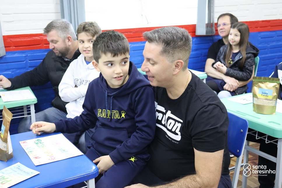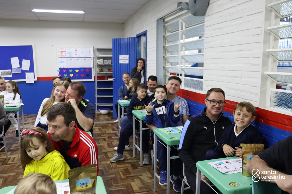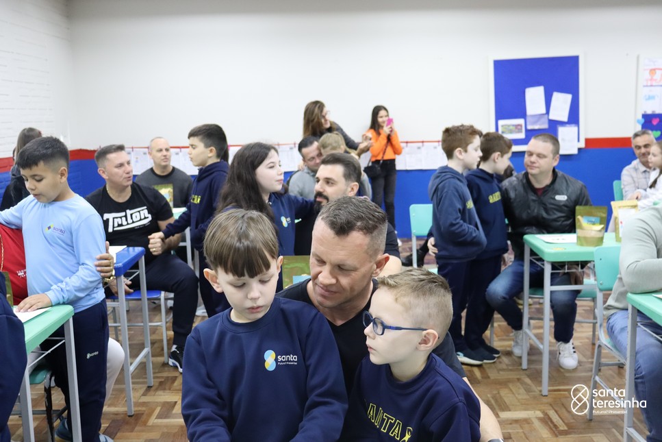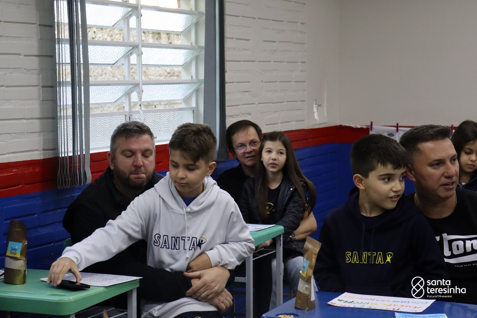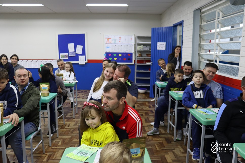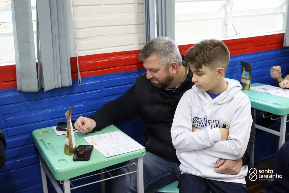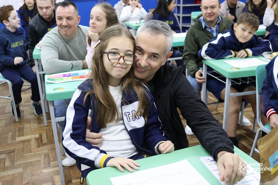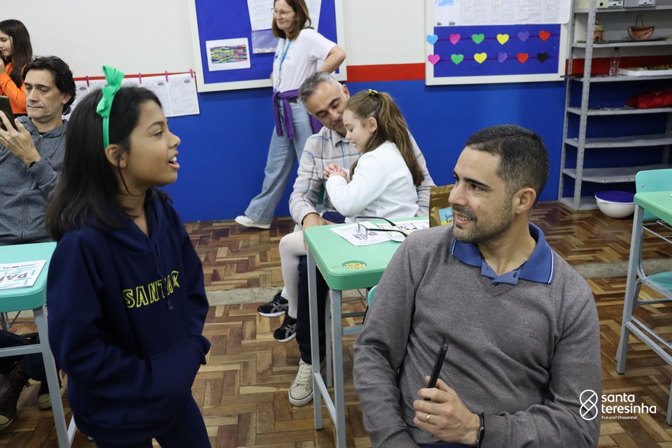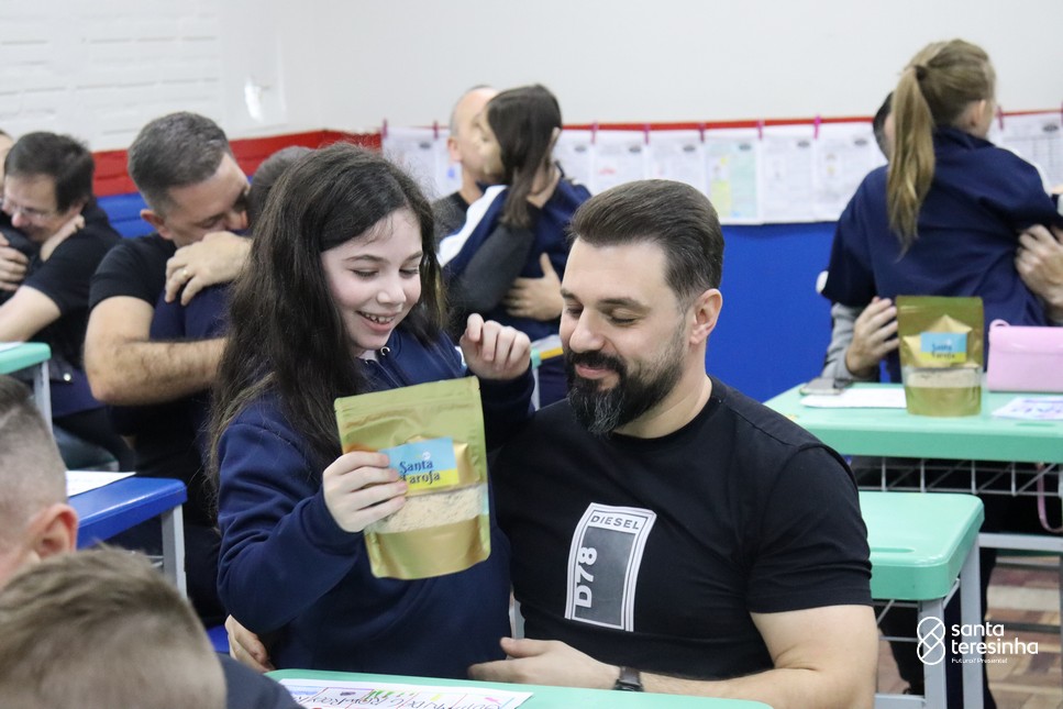 A semana dos pais na turma do 3º ano foi muito especial. Os alunos confeccionaram mimos como, certificado de melhor pai do mundo, vale presente e desenho. Também confeccionaram o presente e o cartão, com muita dedicação e amor. No sábado, os alunos receberam seus pais em sua sala de aula para realizar um bingo de inglês junto com o professor Marcelo e em seguida, prepararam uma apresentação recheada de amor e carinho.