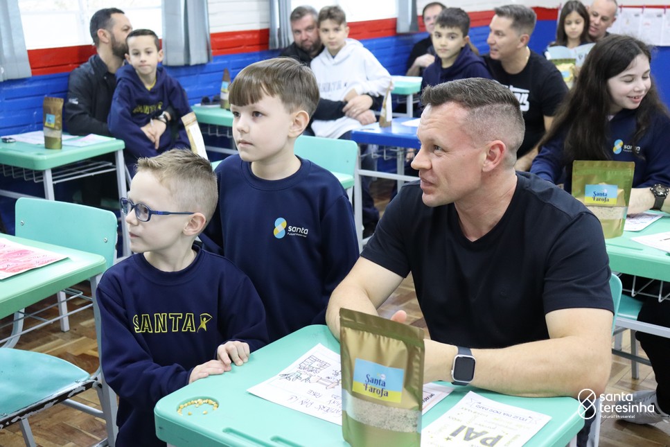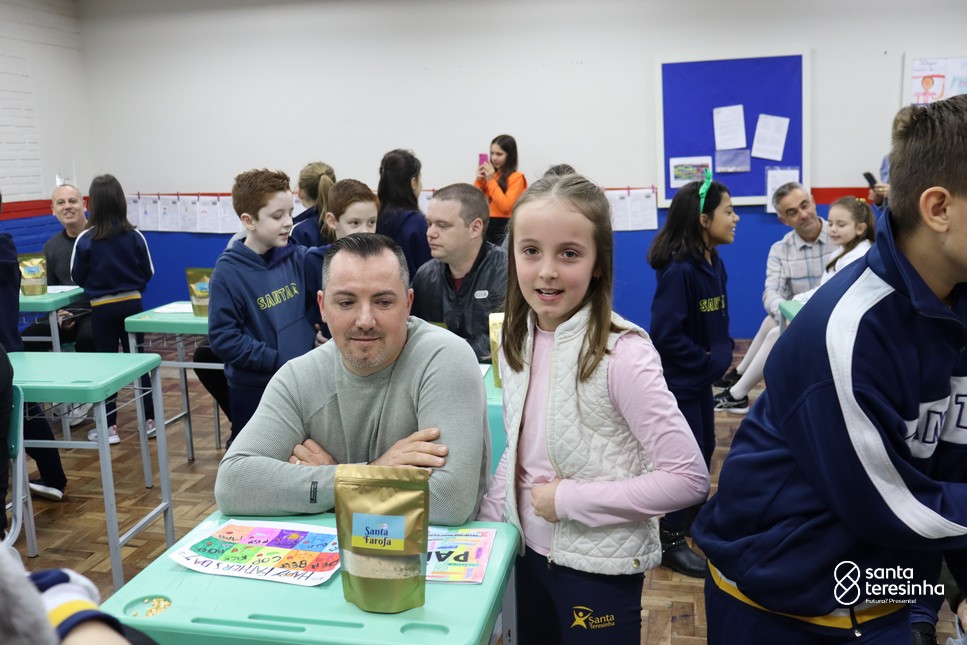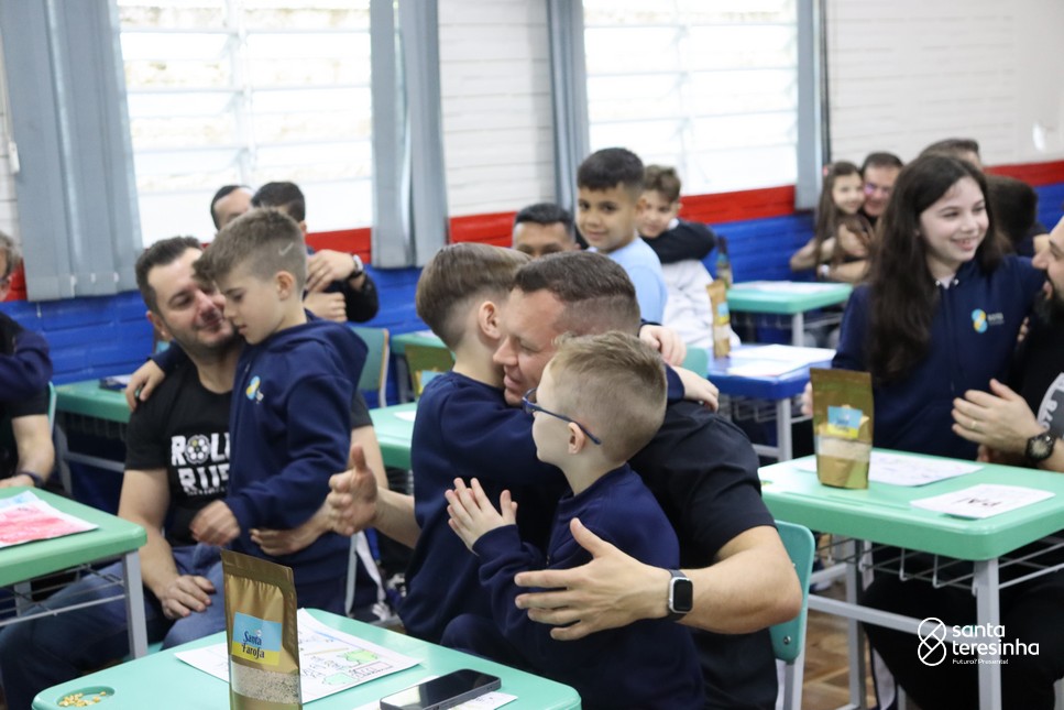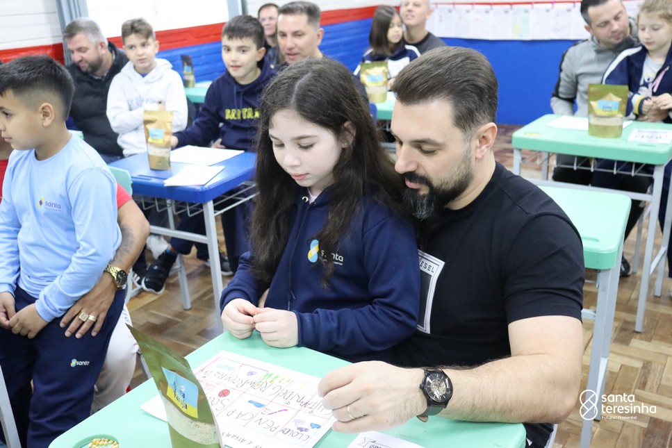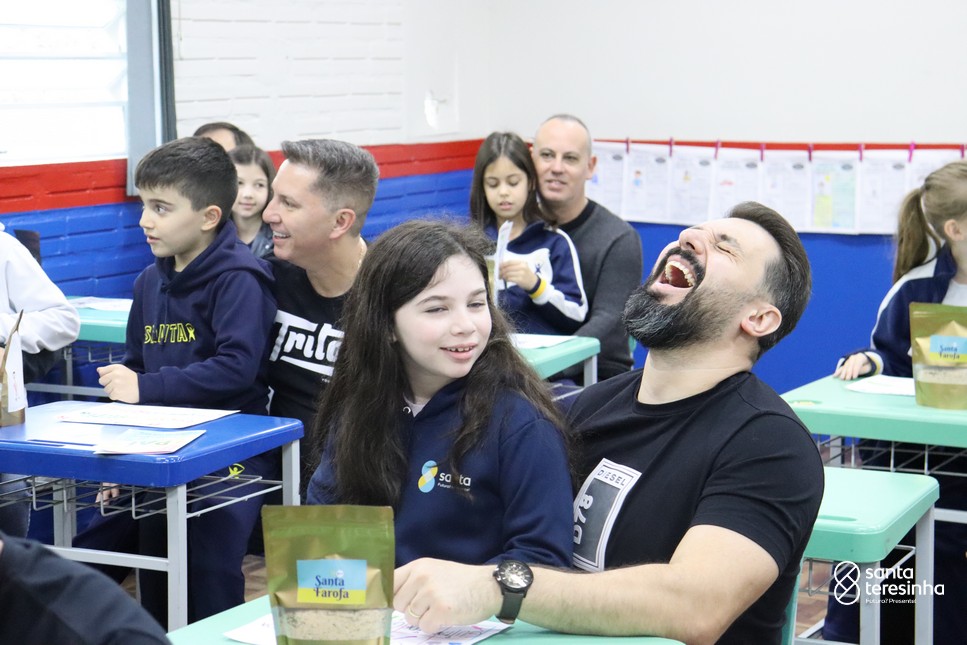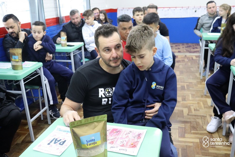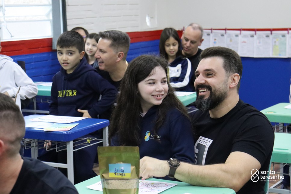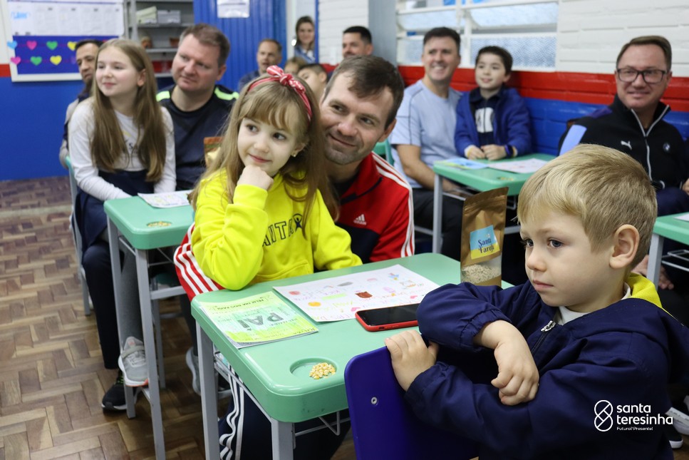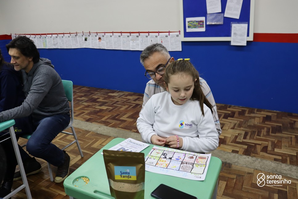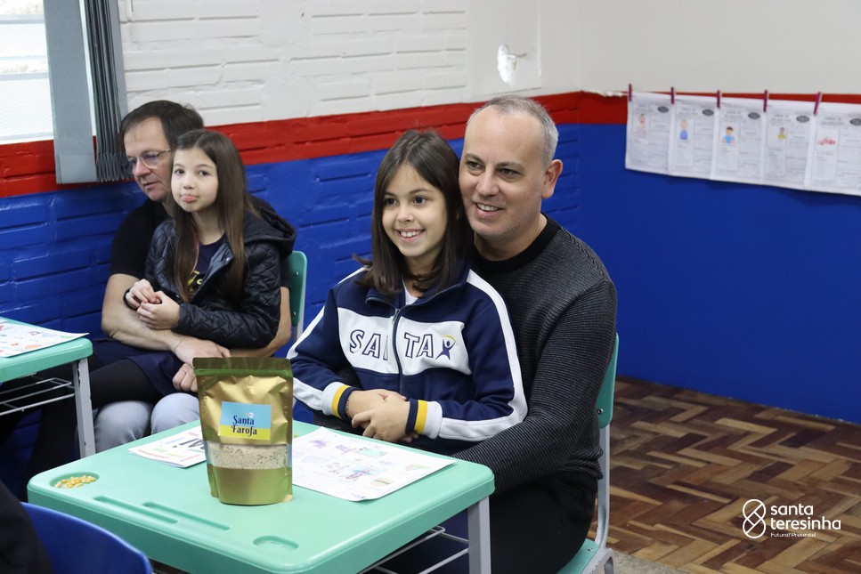 A semana dos pais na turma do 3º ano foi muito especial. Os alunos confeccionaram mimos como, certificado de melhor pai do mundo, vale presente e desenho. Também confeccionaram o presente e o cartão, com muita dedicação e amor. No sábado, os alunos receberam seus pais em sua sala de aula para realizar um bingo de inglês junto com o professor Marcelo e em seguida, prepararam uma apresentação recheada de amor e carinho.