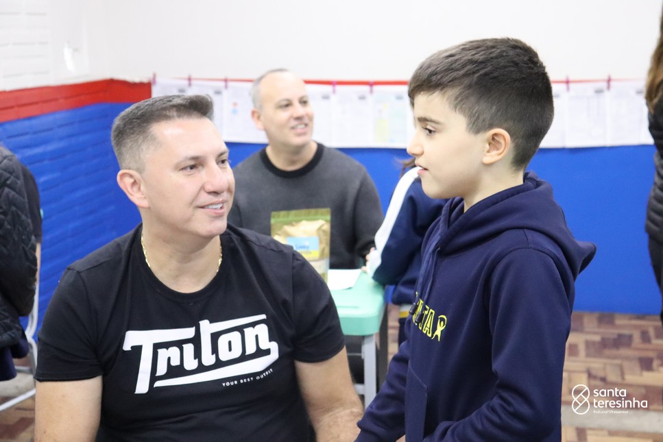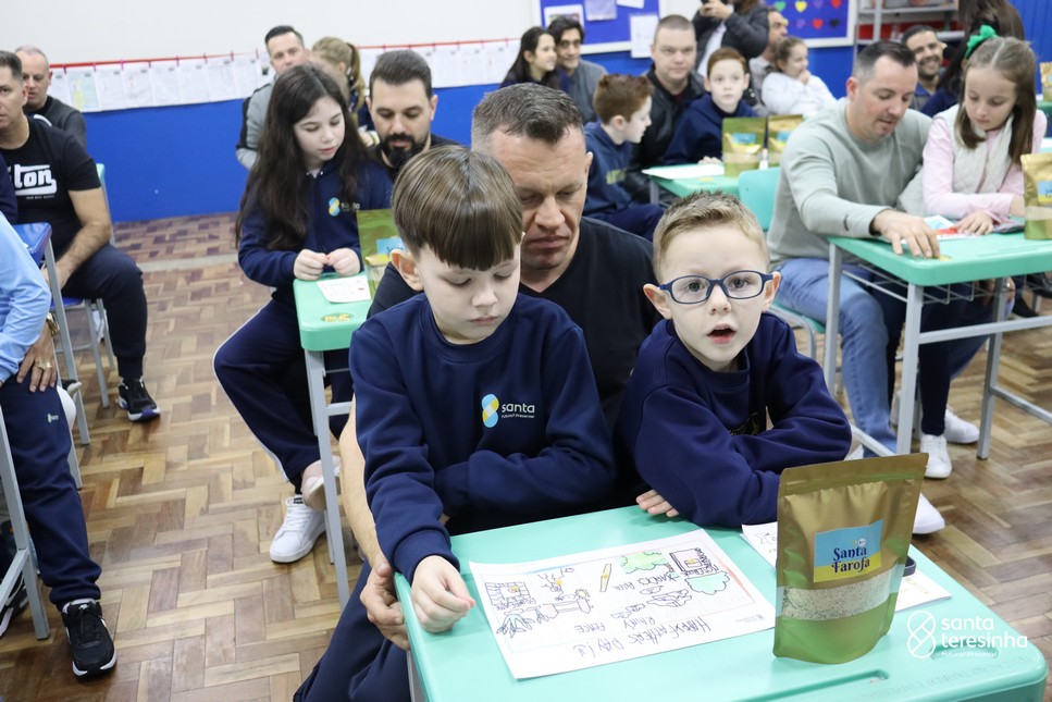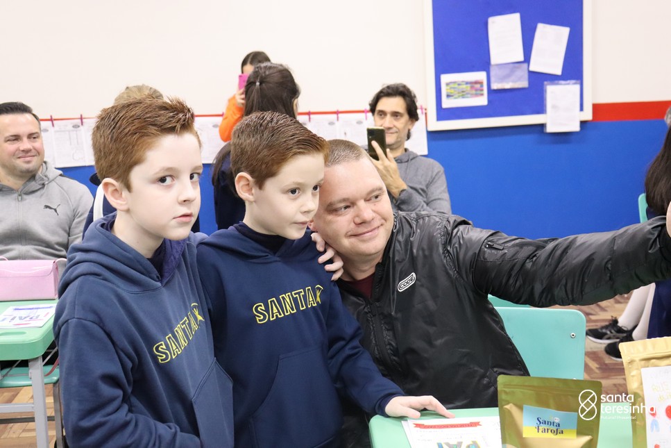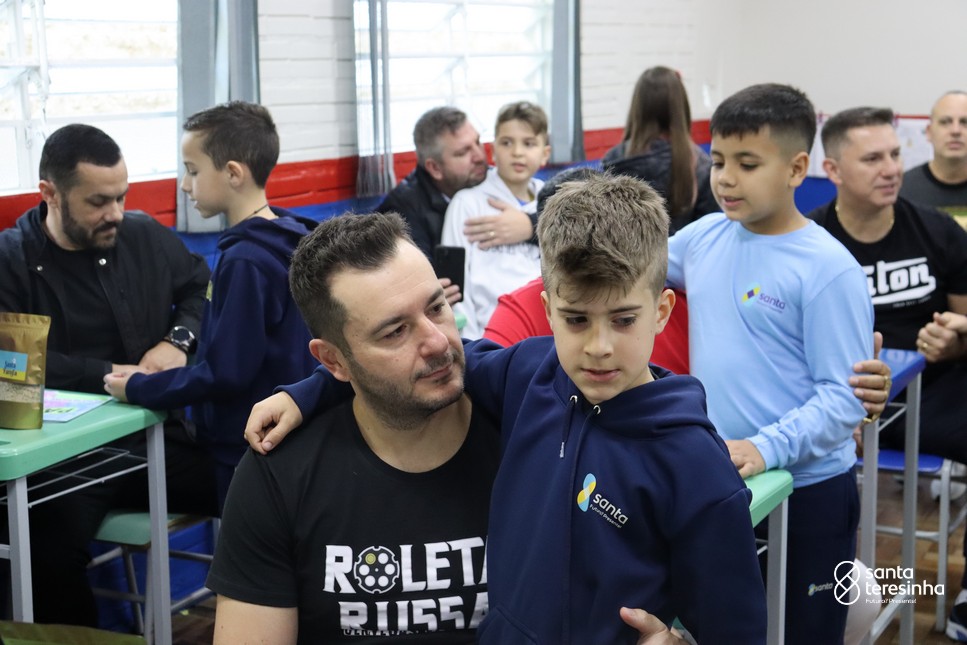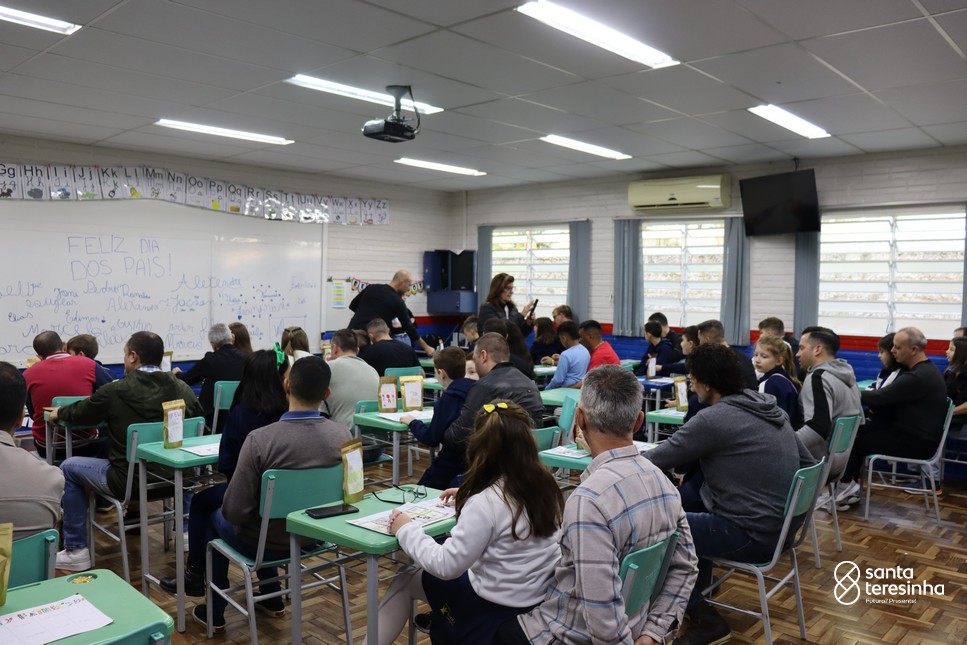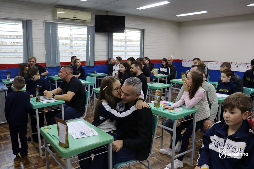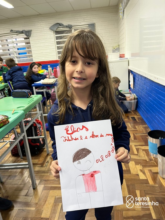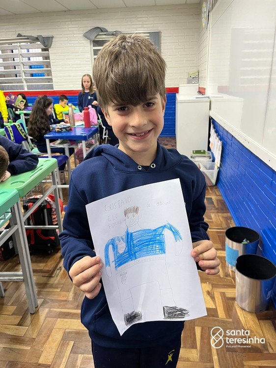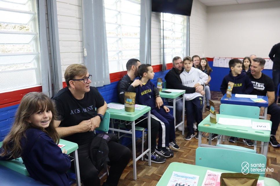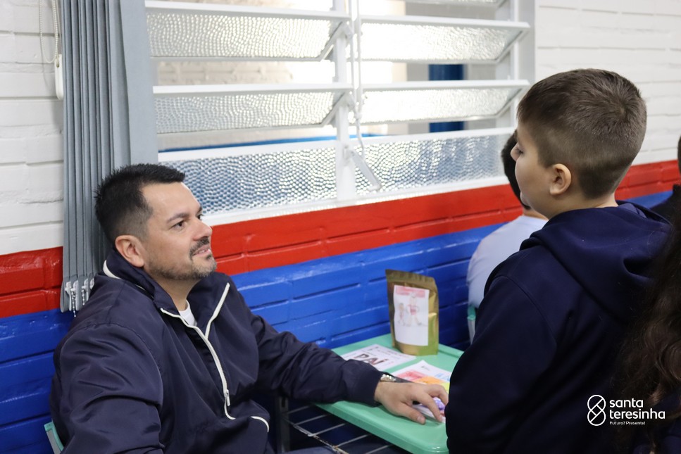 A semana dos pais na turma do 3º ano foi muito especial. Os alunos confeccionaram mimos como, certificado de melhor pai do mundo, vale presente e desenho. Também confeccionaram o presente e o cartão, com muita dedicação e amor. No sábado, os alunos receberam seus pais em sua sala de aula para realizar um bingo de inglês junto com o professor Marcelo e em seguida, prepararam uma apresentação recheada de amor e carinho.