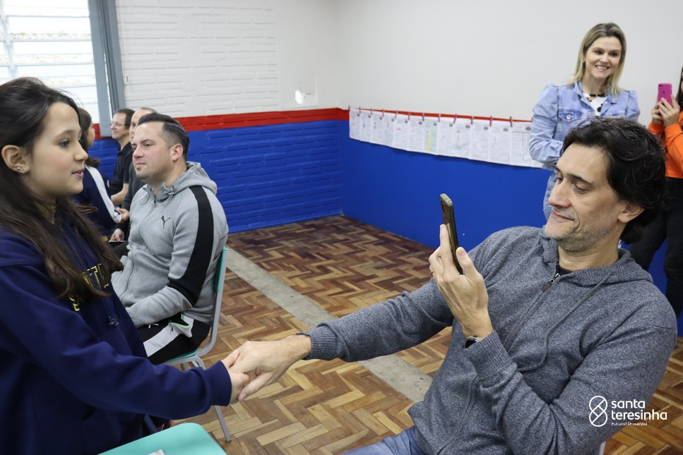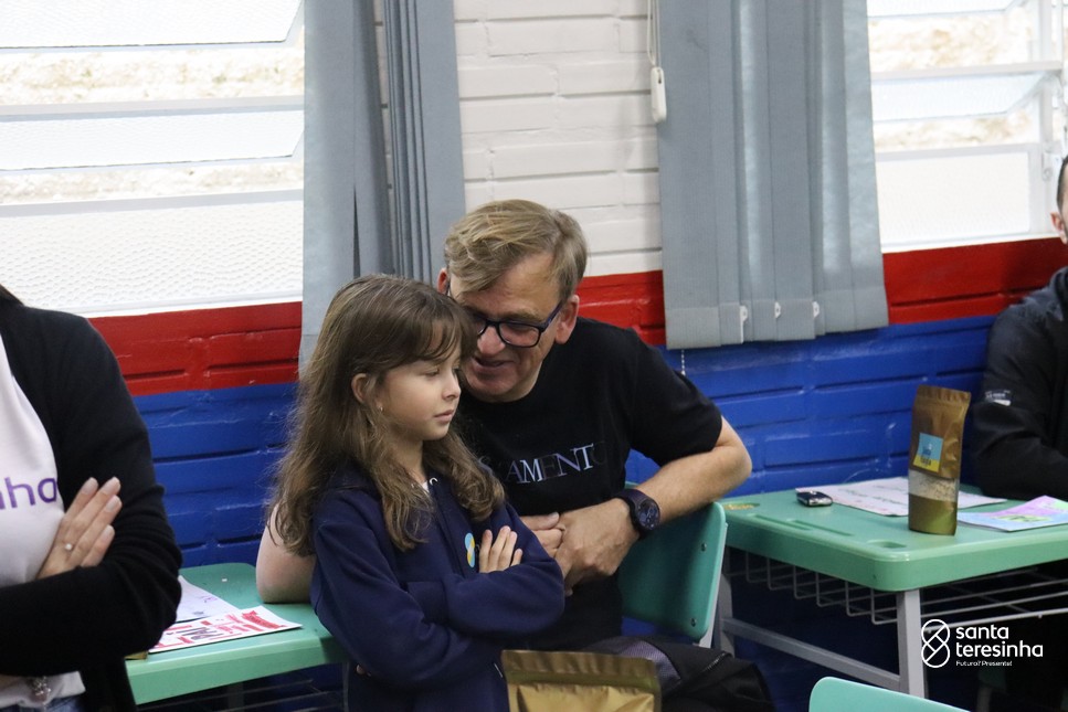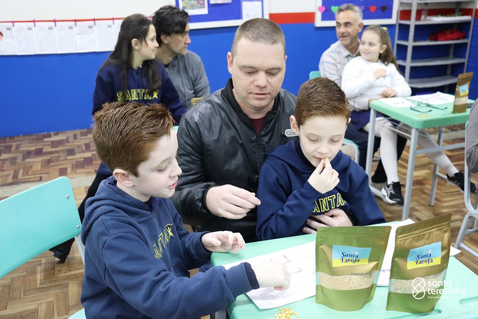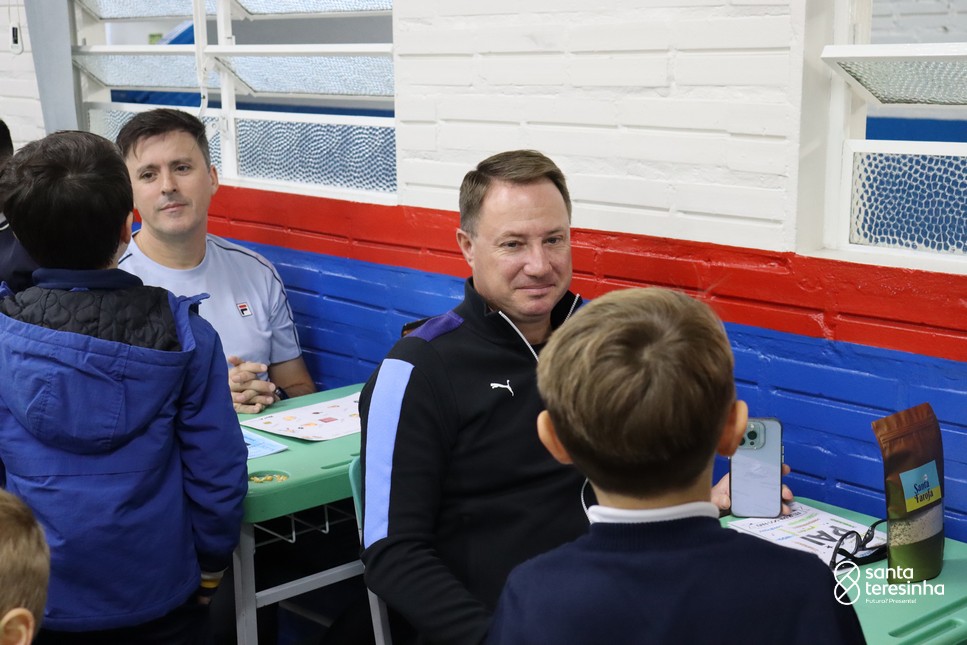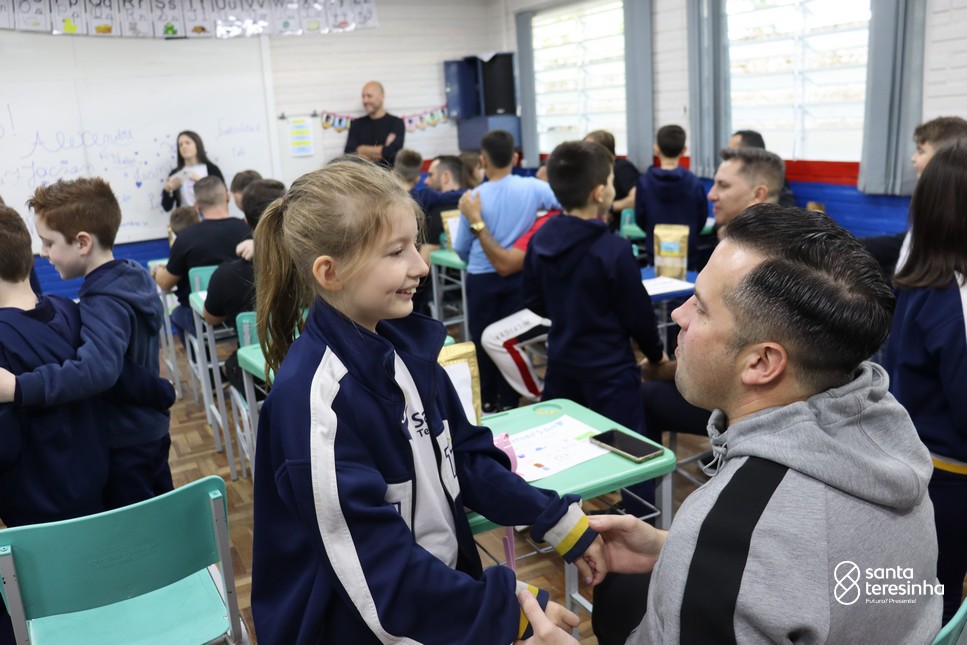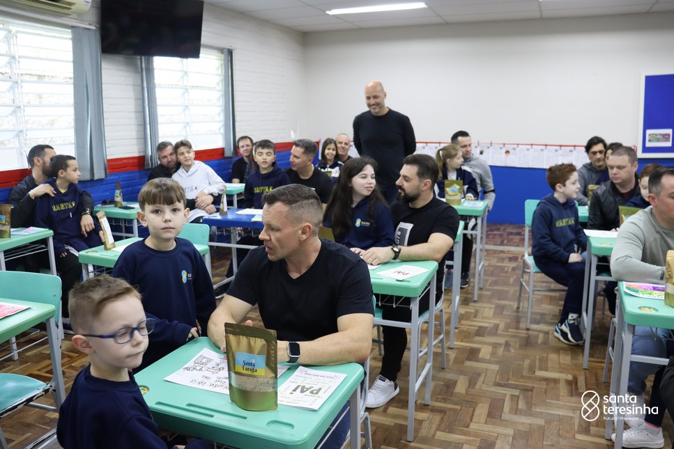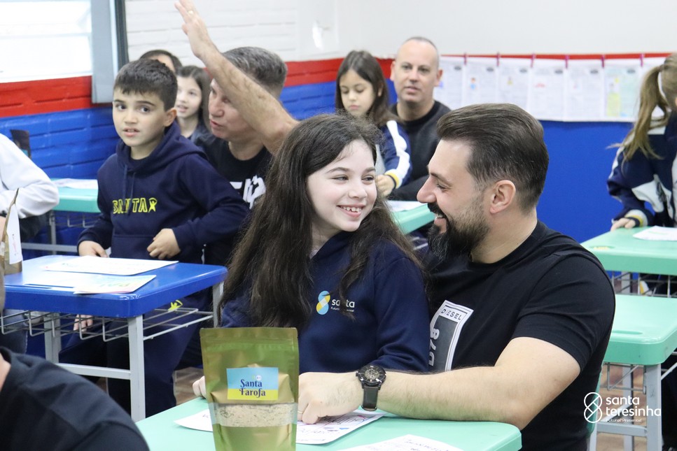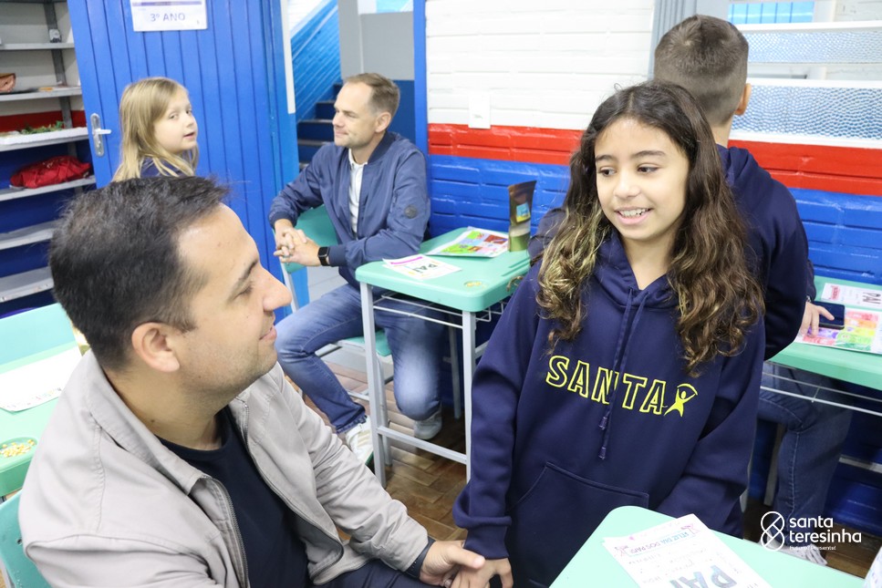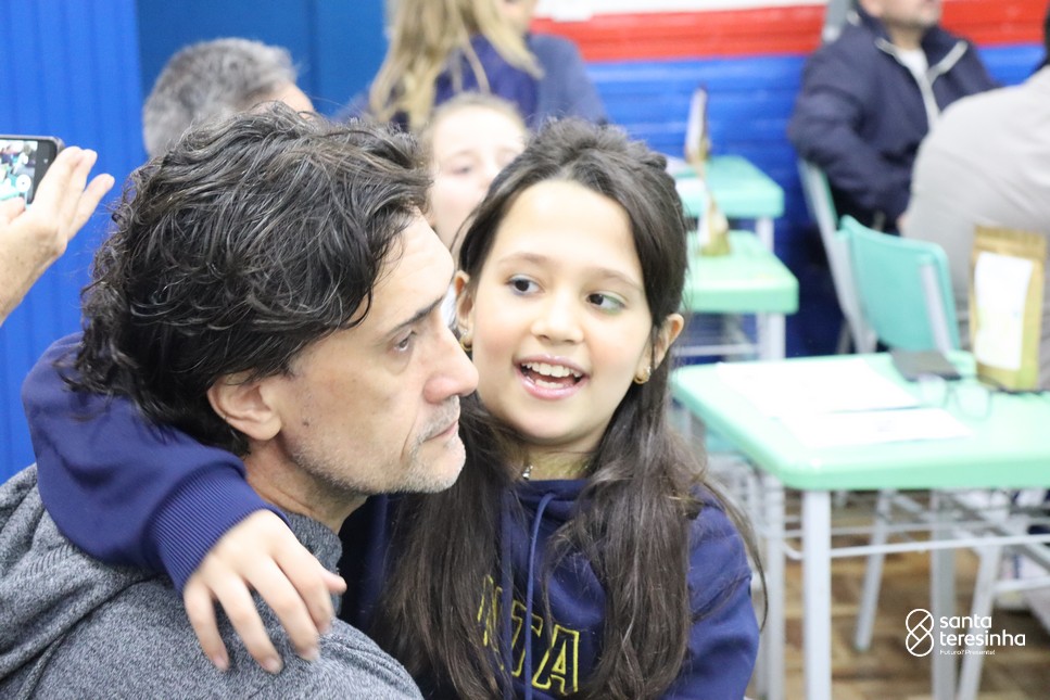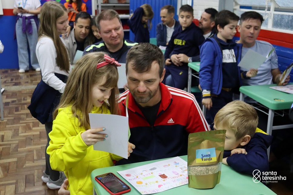 A semana dos pais na turma do 3º ano foi muito especial. Os alunos confeccionaram mimos como, certificado de melhor pai do mundo, vale presente e desenho. Também confeccionaram o presente e o cartão, com muita dedicação e amor. No sábado, os alunos receberam seus pais em sua sala de aula para realizar um bingo de inglês junto com o professor Marcelo e em seguida, prepararam uma apresentação recheada de amor e carinho.