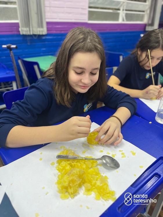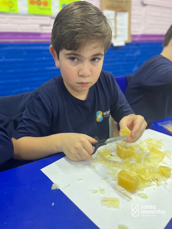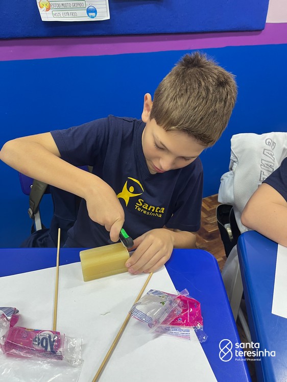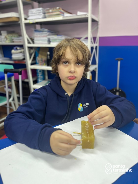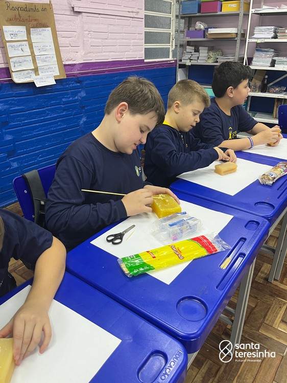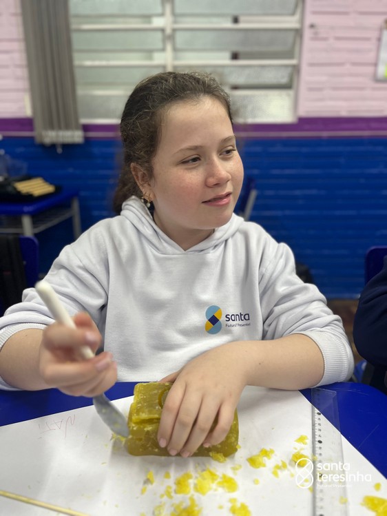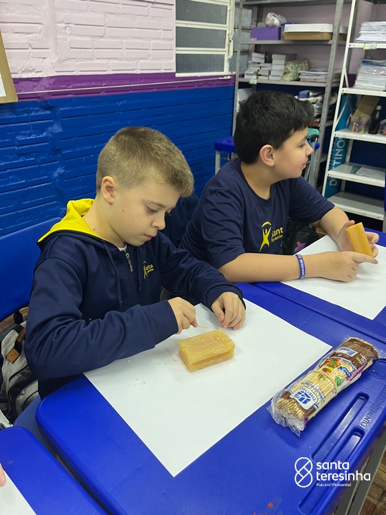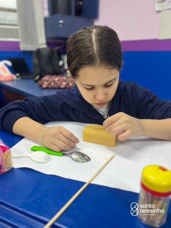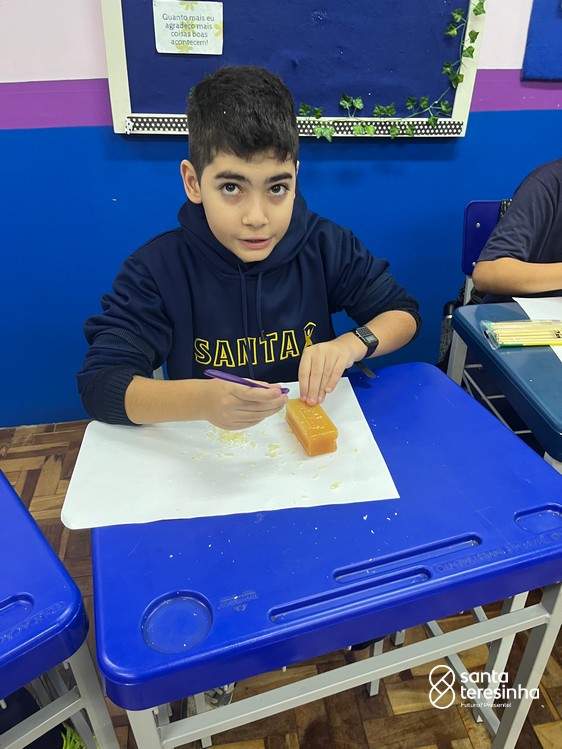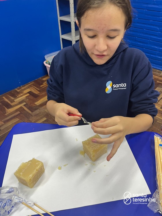 A partir dos estudos das obras do artista brasileiro, Aleijadinho, os alunos criaram suas próprias esculturas utilizando o sabão de glicerina.