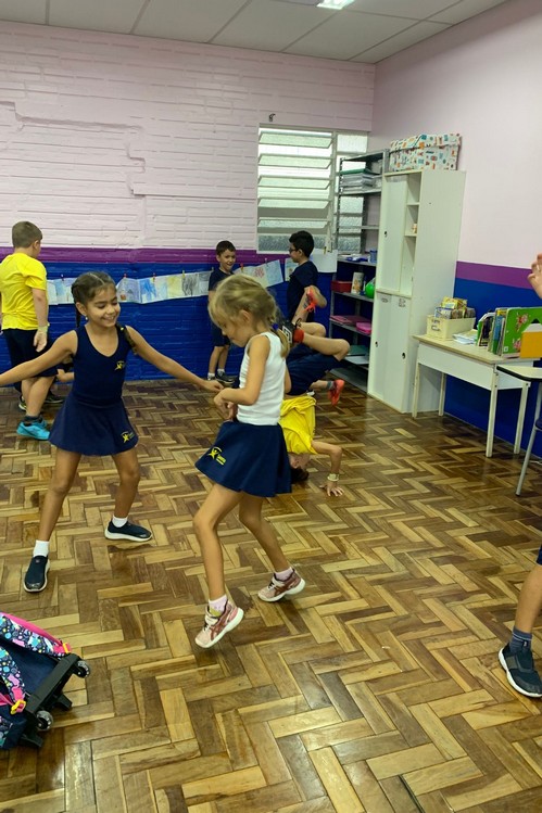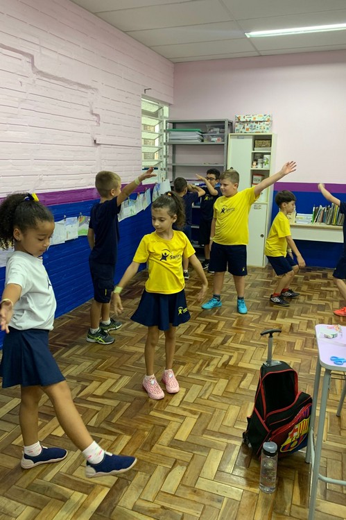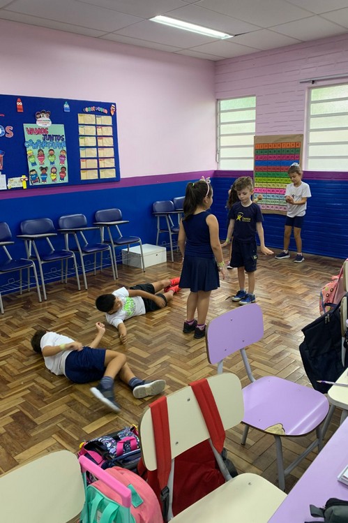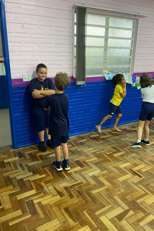 Na aula de Artes de hoje aprendemos um pouco sobre simetria e espelhamento, para deixar nossa aula ainda mais significativa, brincamos de “Espelho” com os colegas.