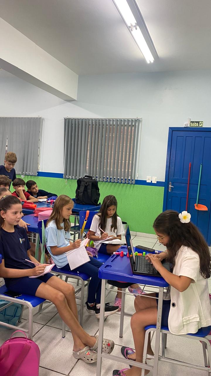 Os estudantes do 5º ano A estudaram as principais características do texto teatral, reconhecendo elementos como personagens, falas, rubricas e a organização em cenas.