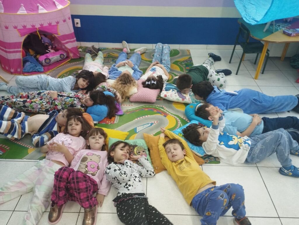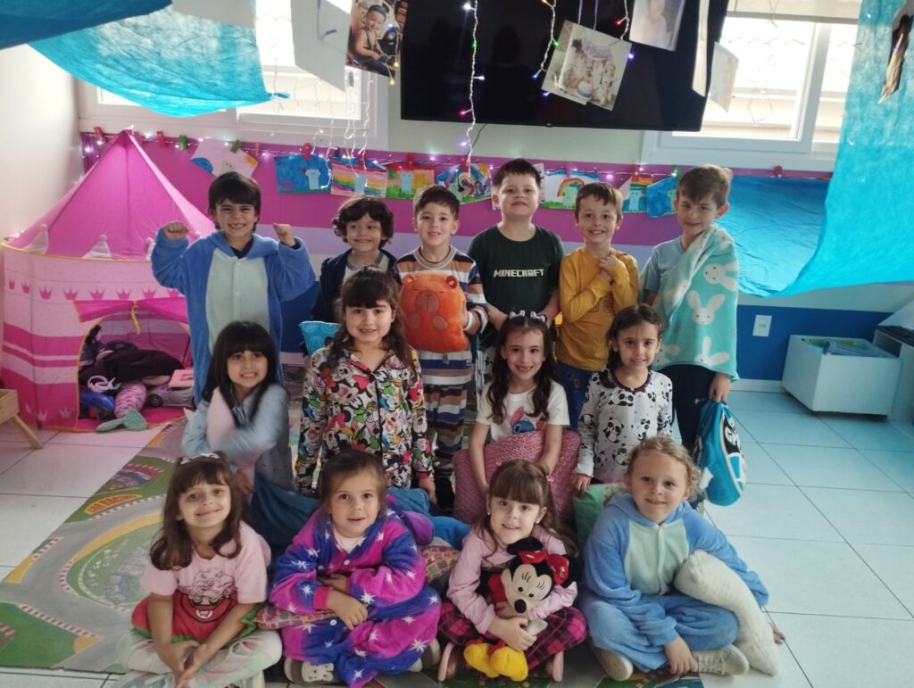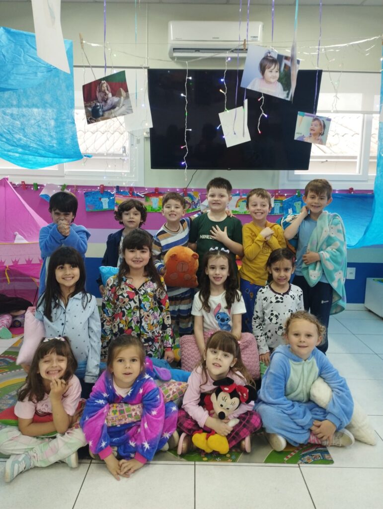 Começamos o Dia das Crianças de um jeito muito especial! Tivemos uma divertida festa do pijama, onde todos vieram com seus pijamas preferidos. Cada criança trouxe um brinquedo com a inicial do seu nome, e foi uma alegria compartilhar e descobrir novas brincadeiras. Para deixar o dia ainda mais mágico, fizemos um acampamento na sala, com muita imaginação, risadas e momentos de encantamento!