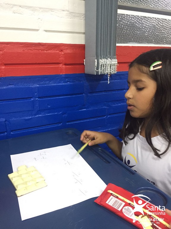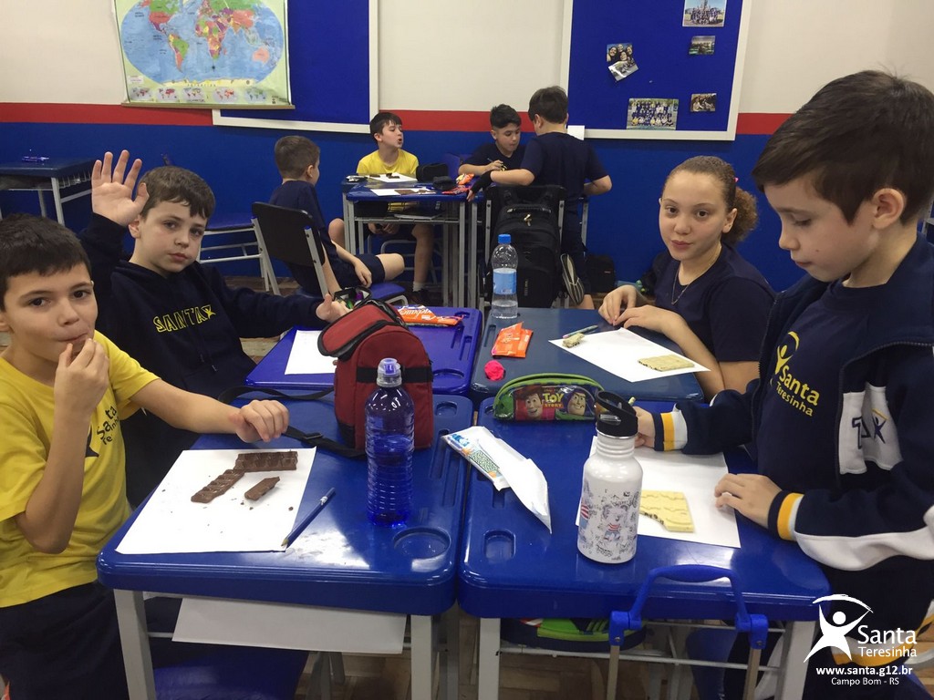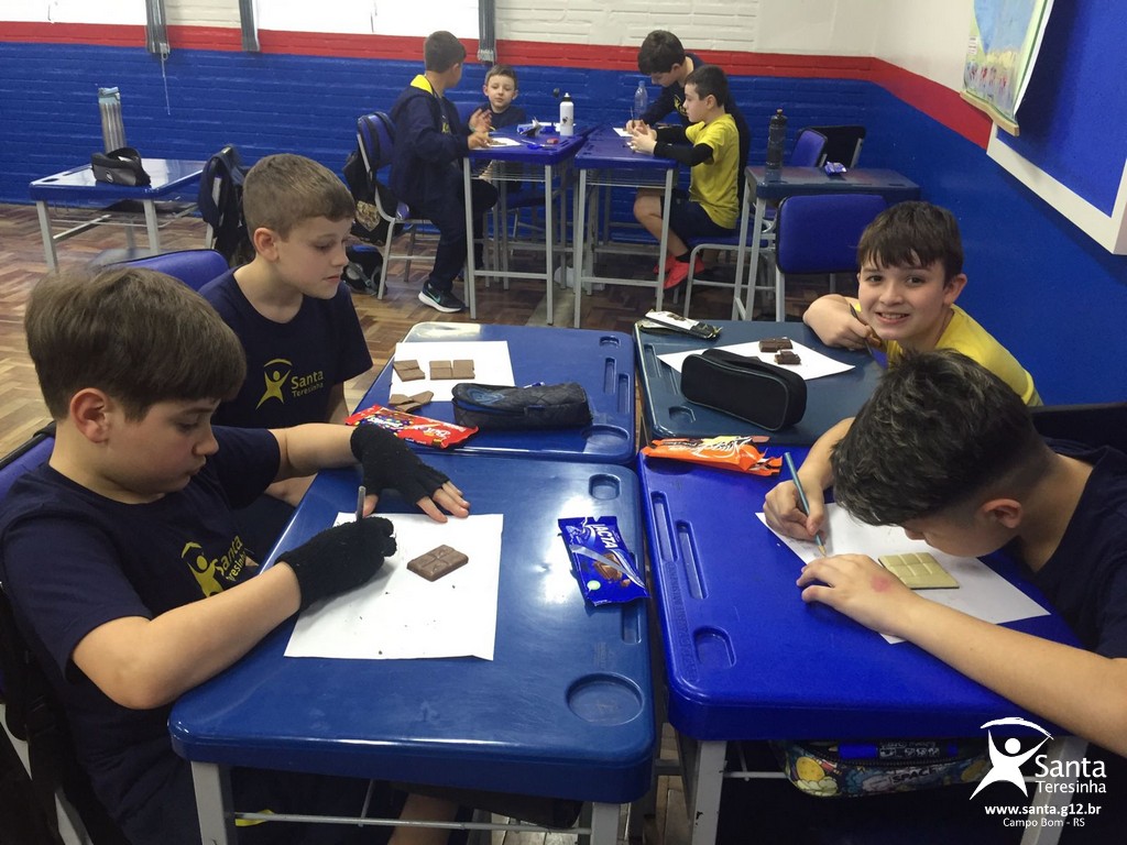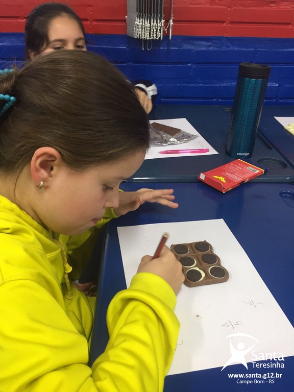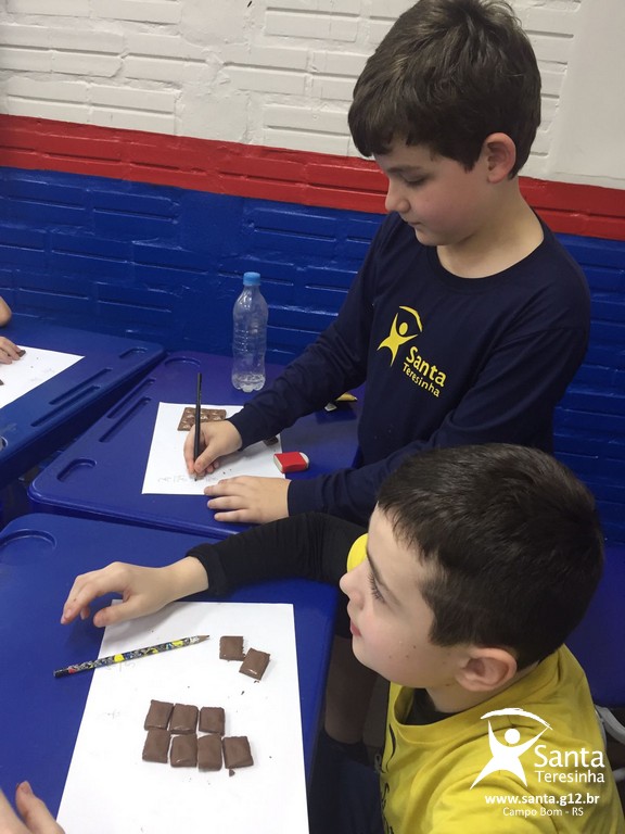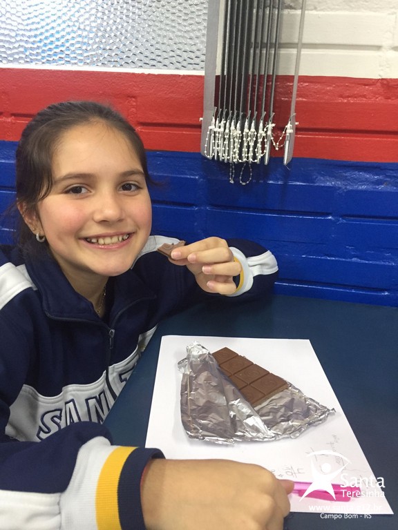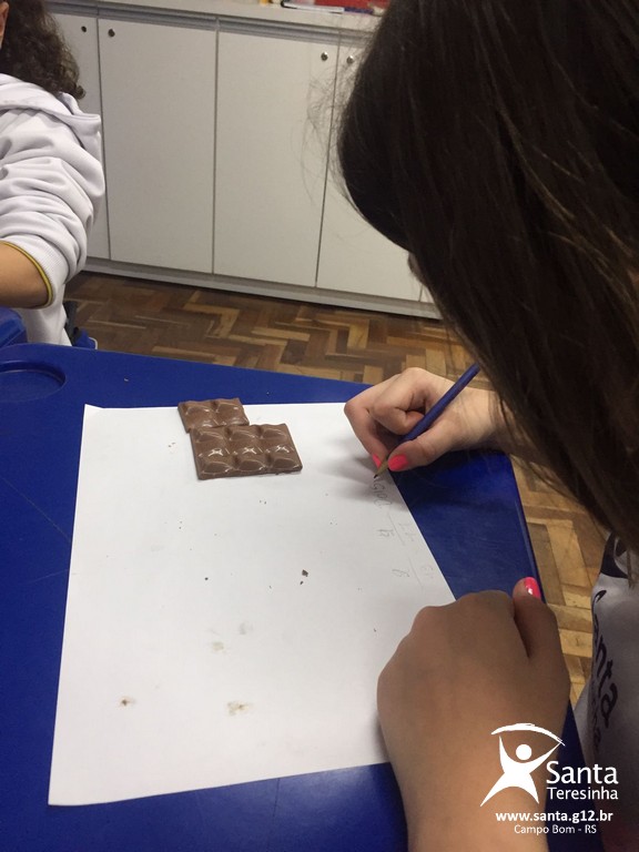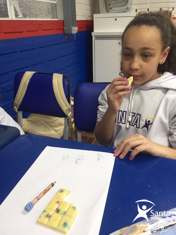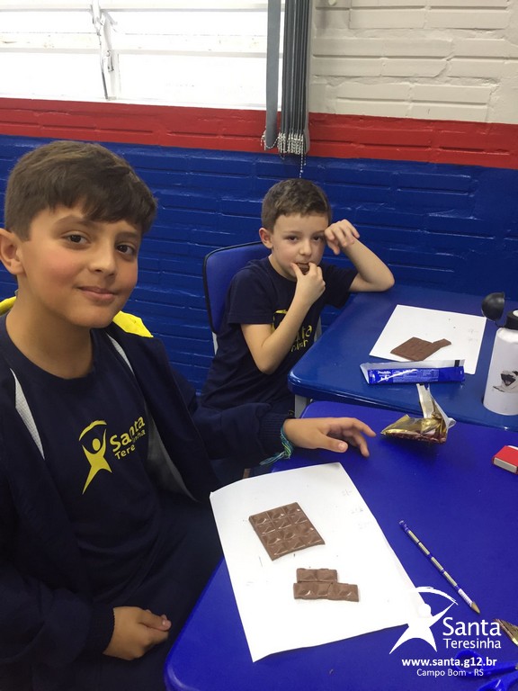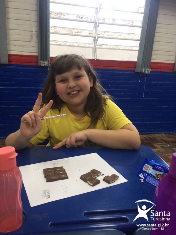 Os alunos do 4º ano A curtiram uma aula muito saborosa é diferente de Matemática trabalhando frações. Algumas situações problemas foram criadas e vivenciadas na prática usando a barra de chocolate como material. Depois da aula os alunos puderam degustar essa delícia.