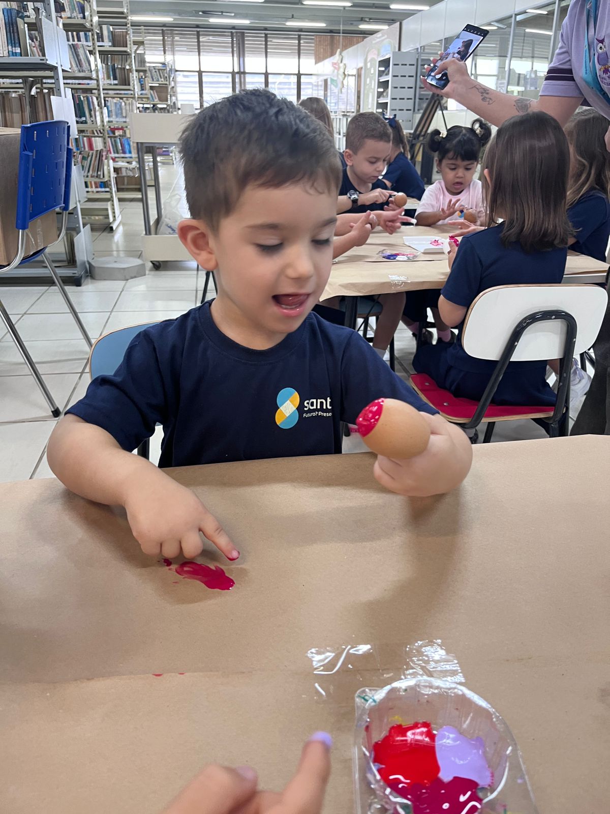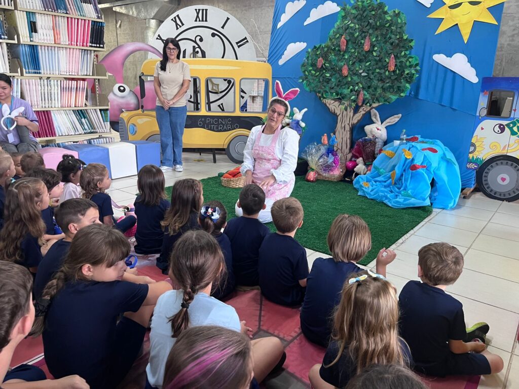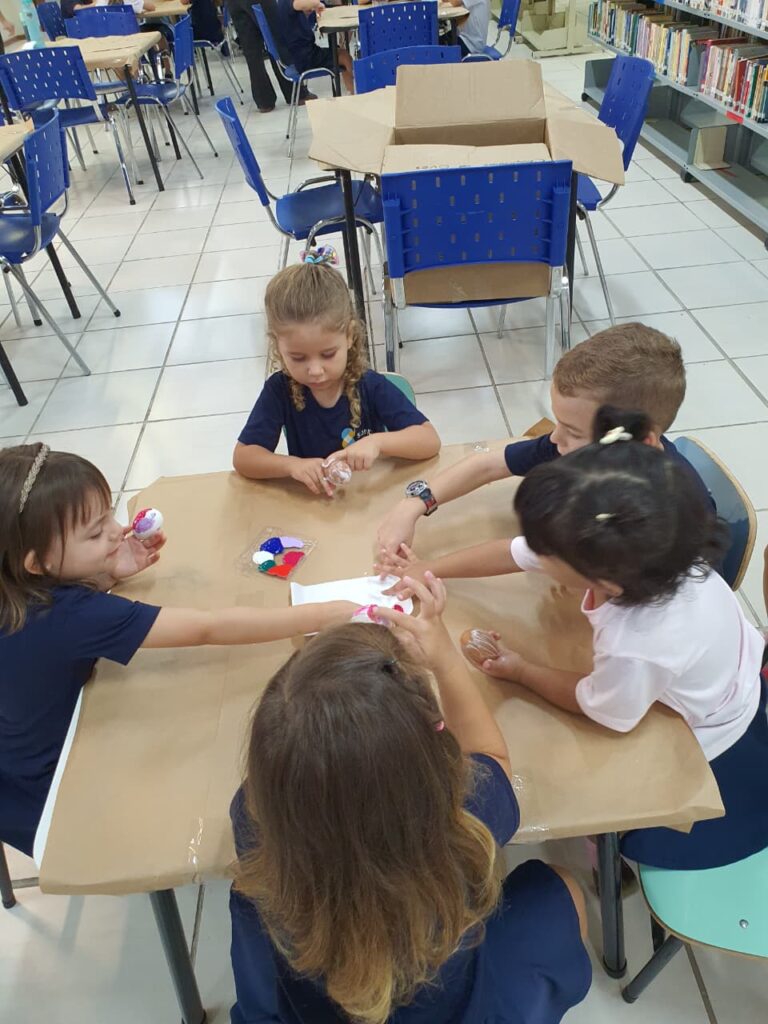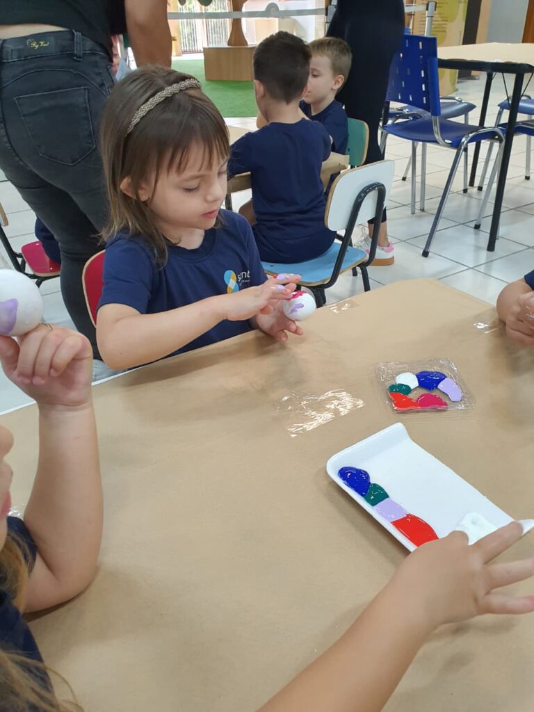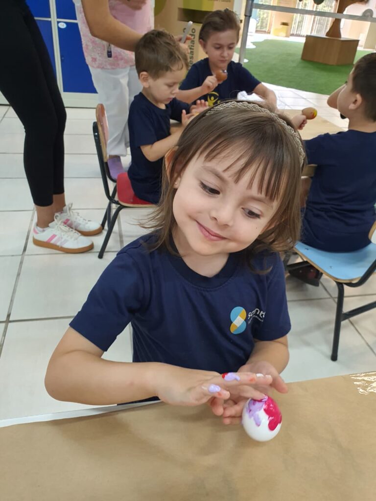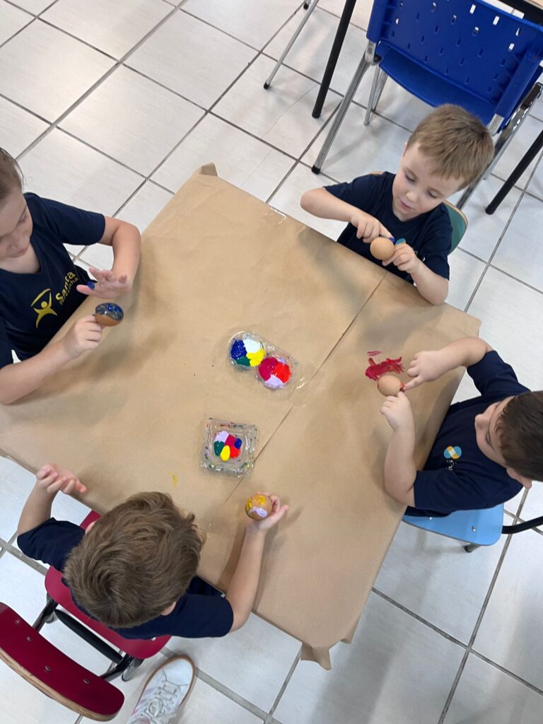 A história “O Coelhinho e o Pé de Cacau” despertou a imaginação e a curiosidade das crianças, trazendo muita magia e aprendizado. Após a história, os pequenos colocaram a criatividade em ação pintando casquinhas de ovos, explorando cores e texturas com muita alegria!! E para completar esse dia especial, a diversão continuou na brinquedoteca, com muitas brincadeiras, risadas e interação entre os colegas!