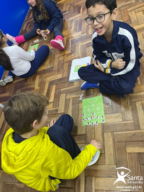 Na aula de Língua Portuguesa, os alunos do 3 ano colocaram em prática mais um jogo, seguindo suas instruções. Dessa vez, colocam em prática o Jogo da onça. Foi um momento que exigiu muita estratégia, mas também muita diversão!