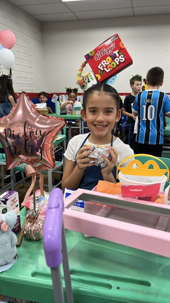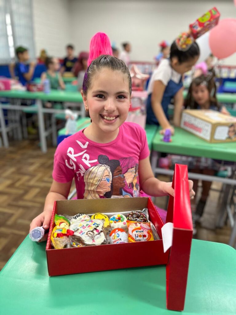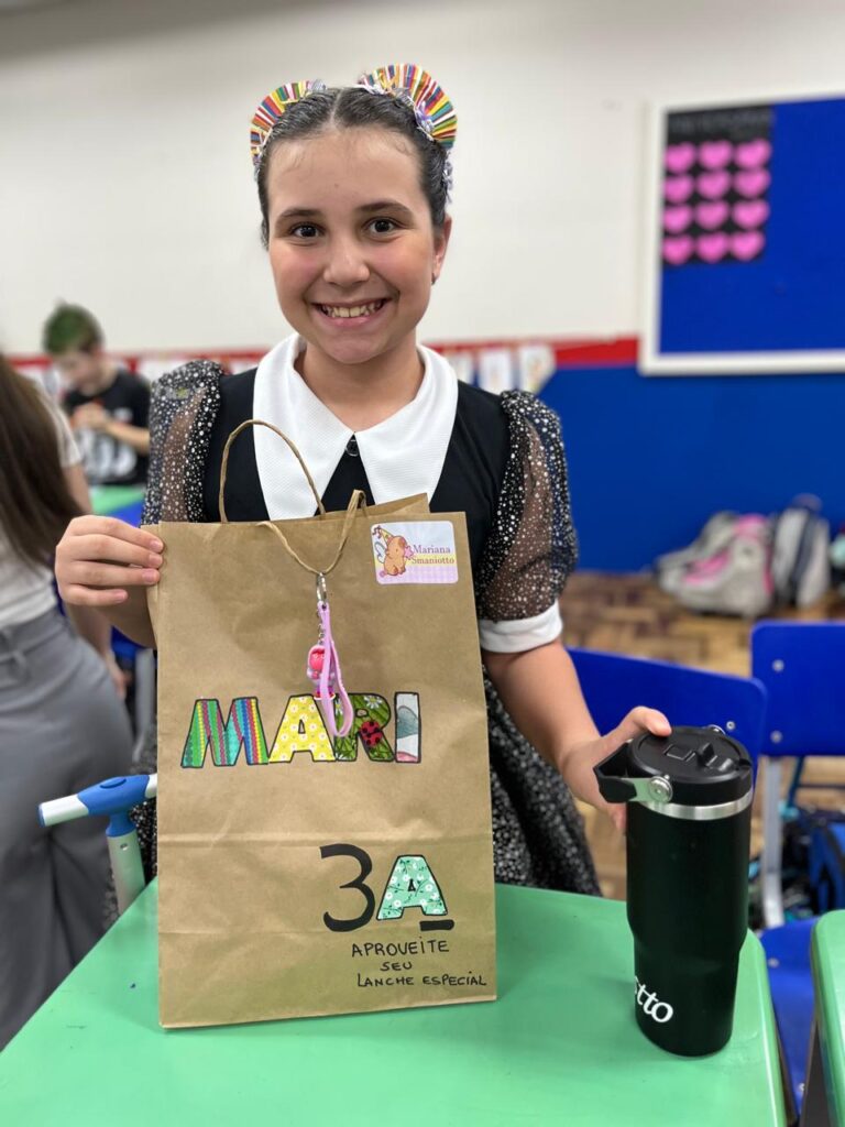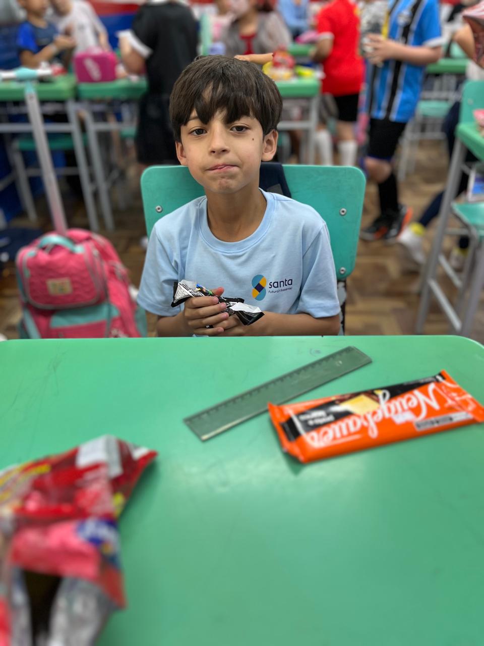 Lanche surpresa de dia das crianças enviado pelas famílias do 3º ano A.