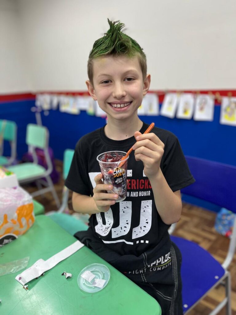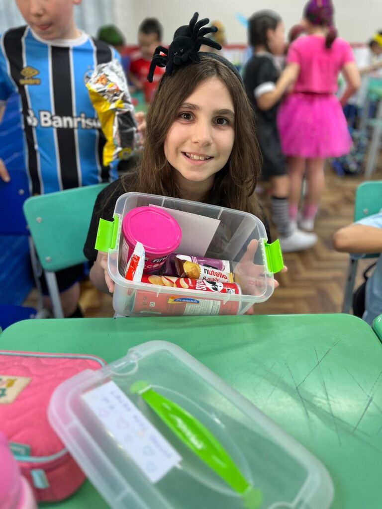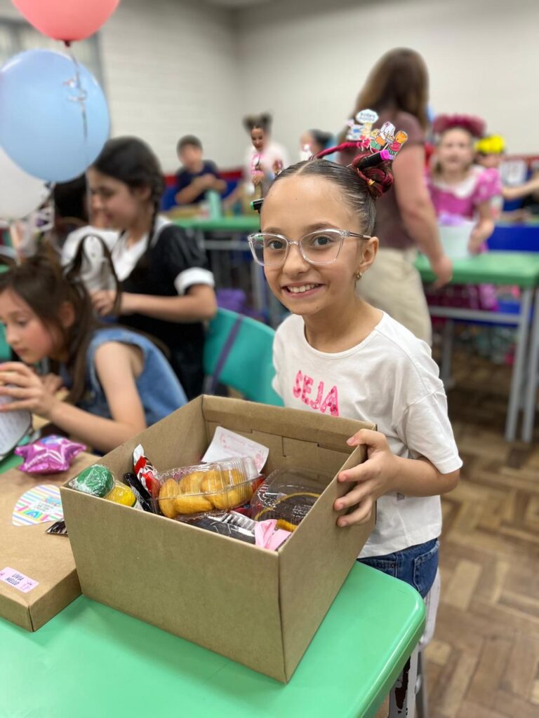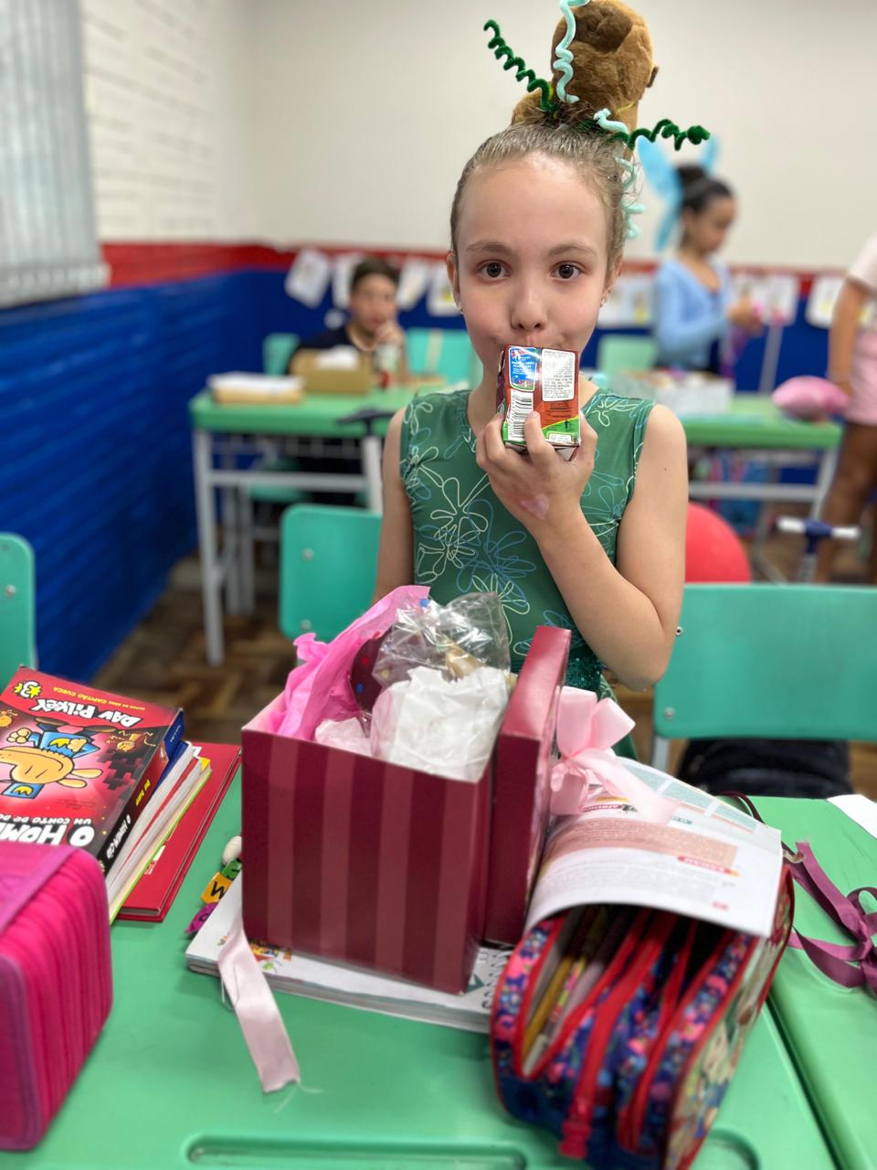 Lanche surpresa de dia das crianças enviado pelas famílias do 3º ano A.