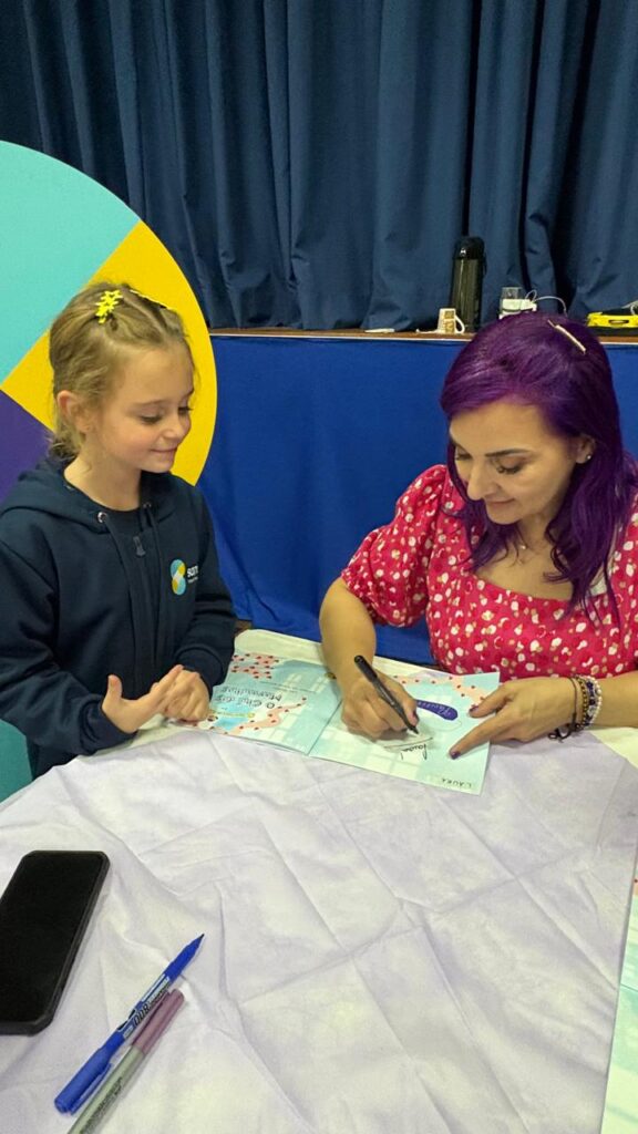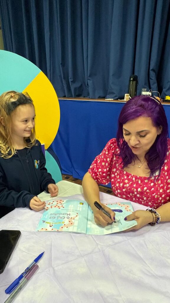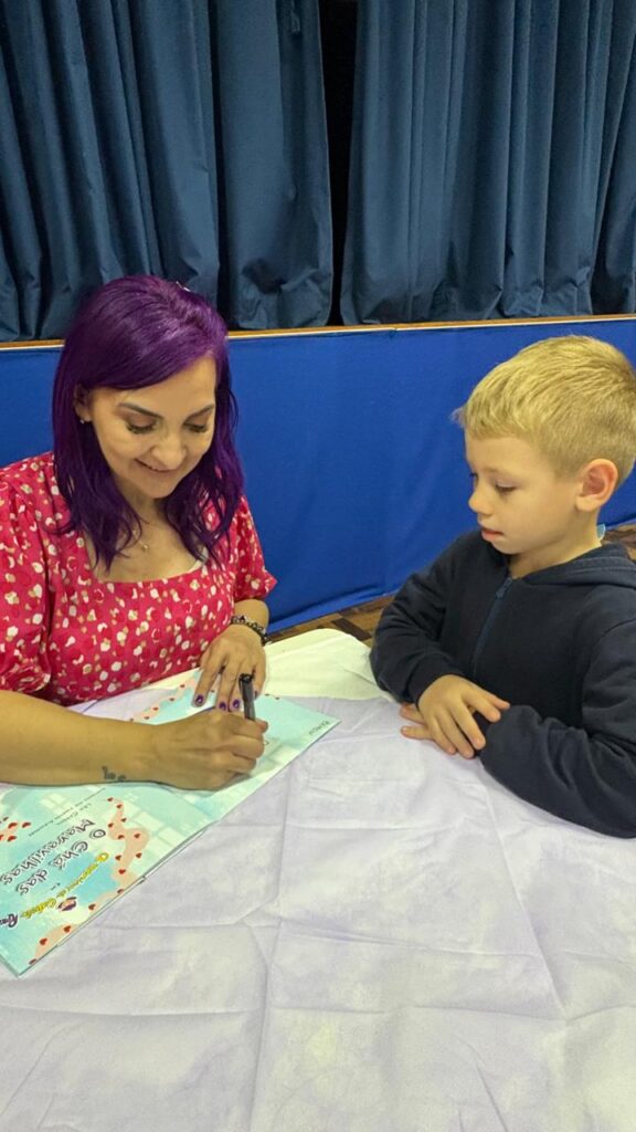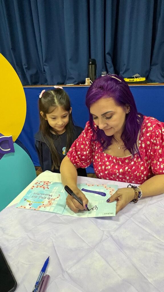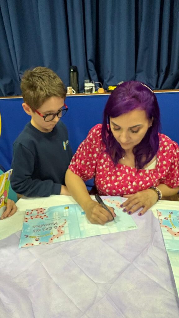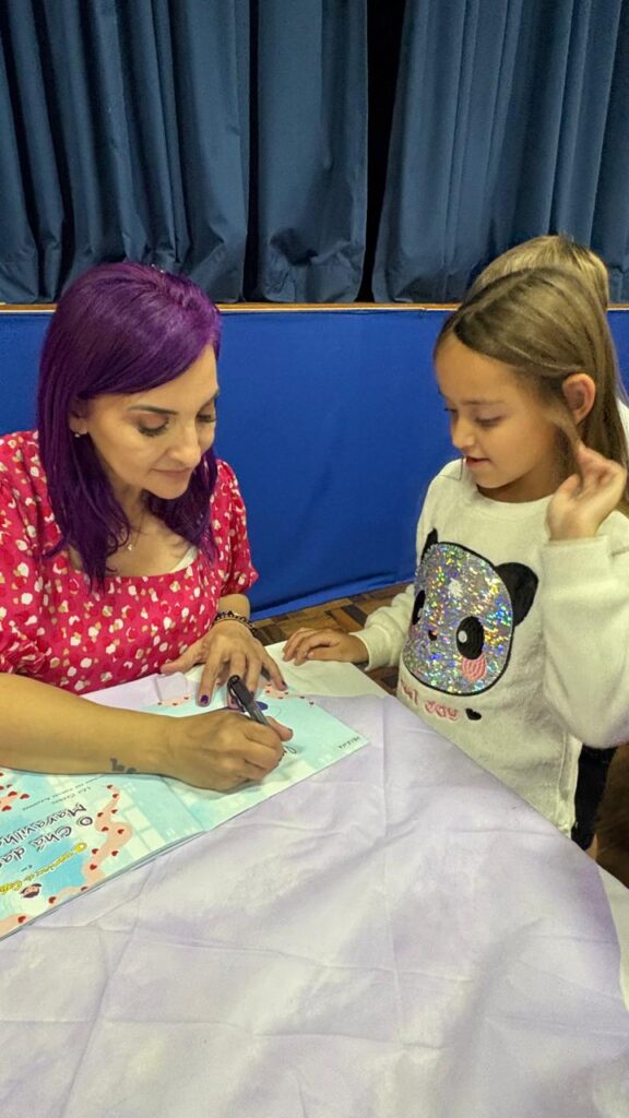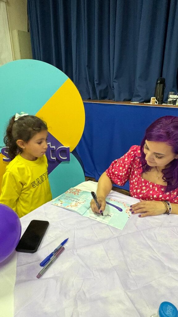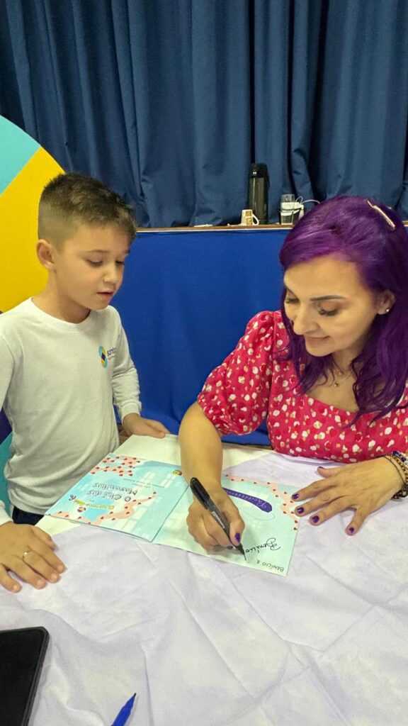 Com muita alegria e imaginação, participaram de uma envolvente hora do conto, conduzida pela própria autora, que trouxe suas histórias à vida de forma lúdica e divertida. Após a contação, os pequenos leitores ainda tiveram a oportunidade de viver o encantamento do momento de autógrafos, aproximando-se ainda mais do universo da leitura.