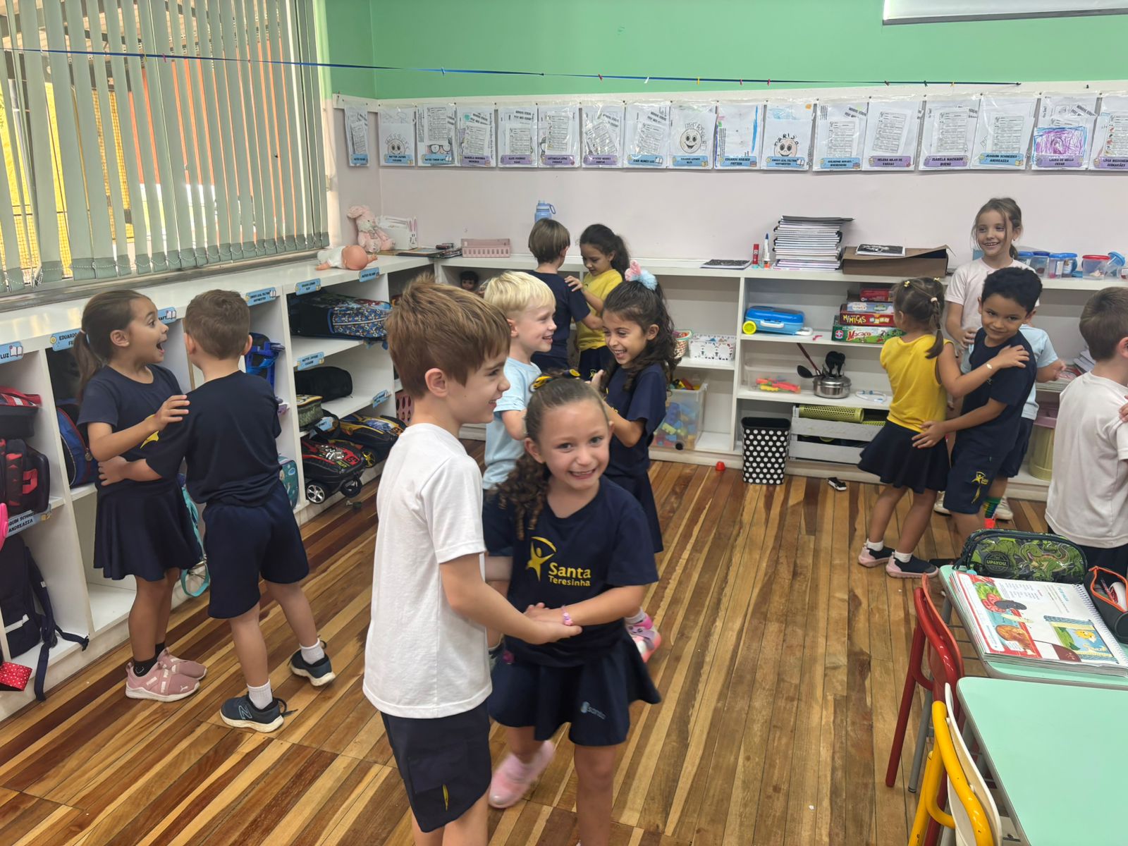 As crianças aprenderam os primeiros movimentos dessa dança clássica, explorando ritmo, coordenação e muita parceria de um jeito leve e divertido!
