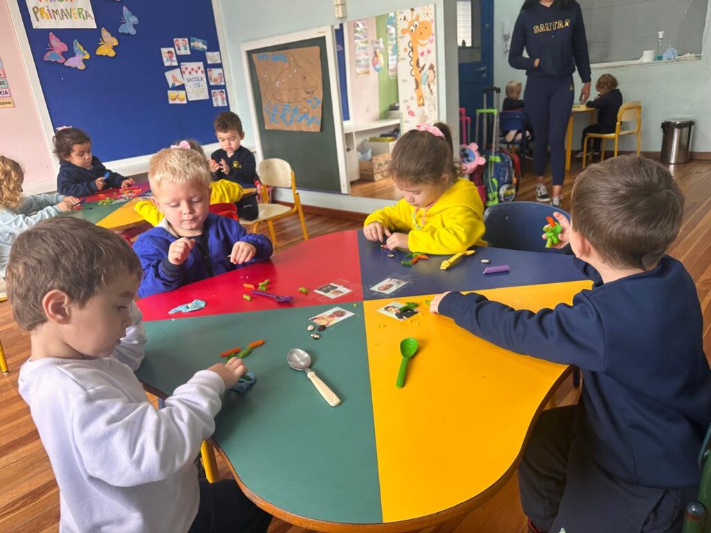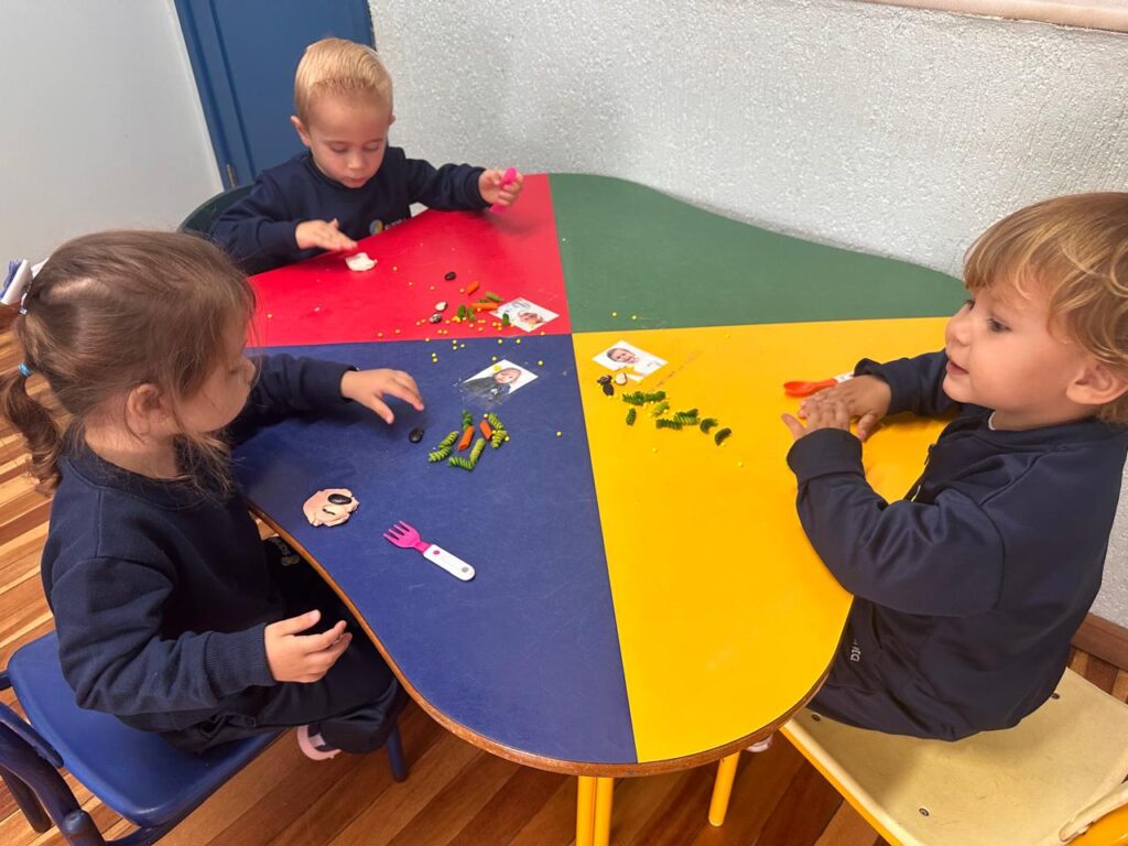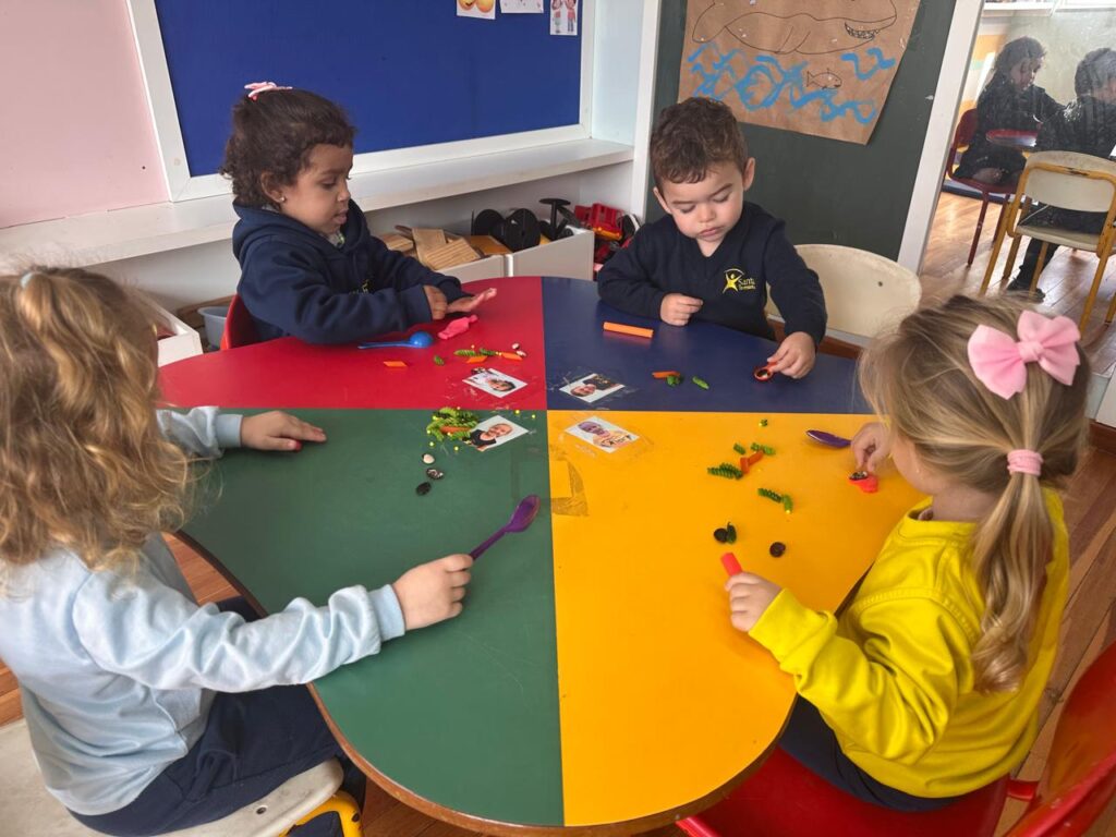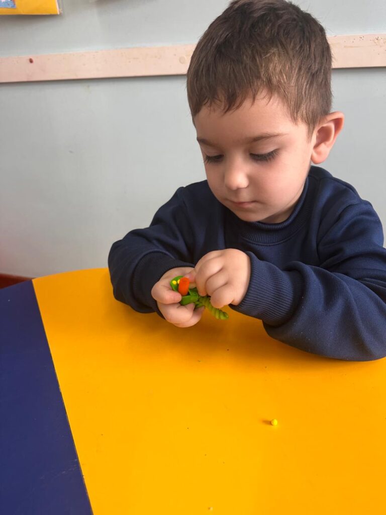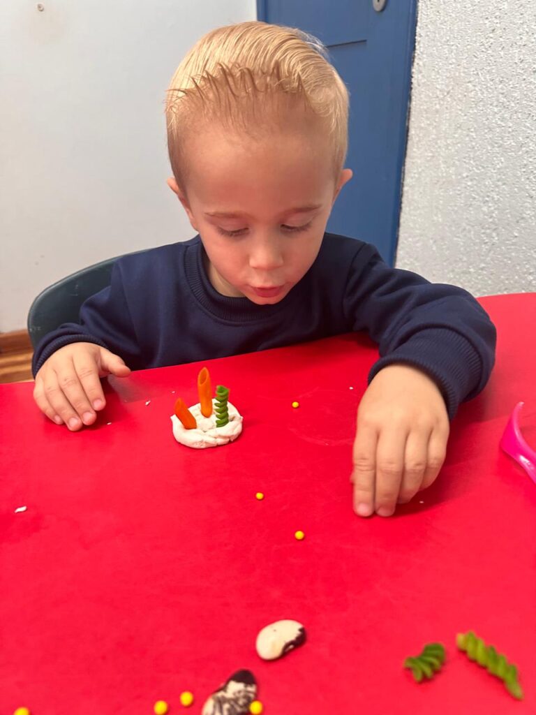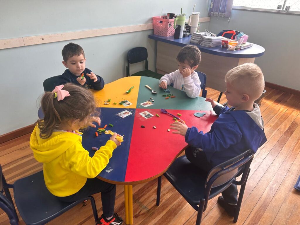 Mãos que amassam e criamMassinha que vira diversãoSementes que enfeitam o brincarTexturas para imaginarExplorando com curiosidadeAprendendo com criatividade!