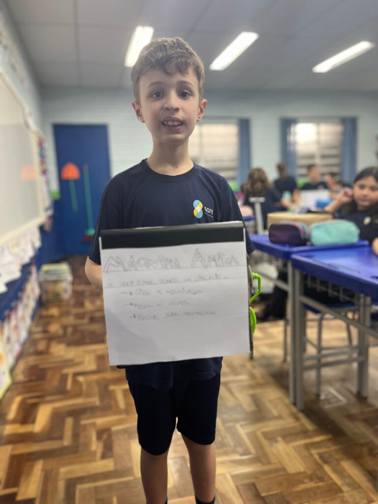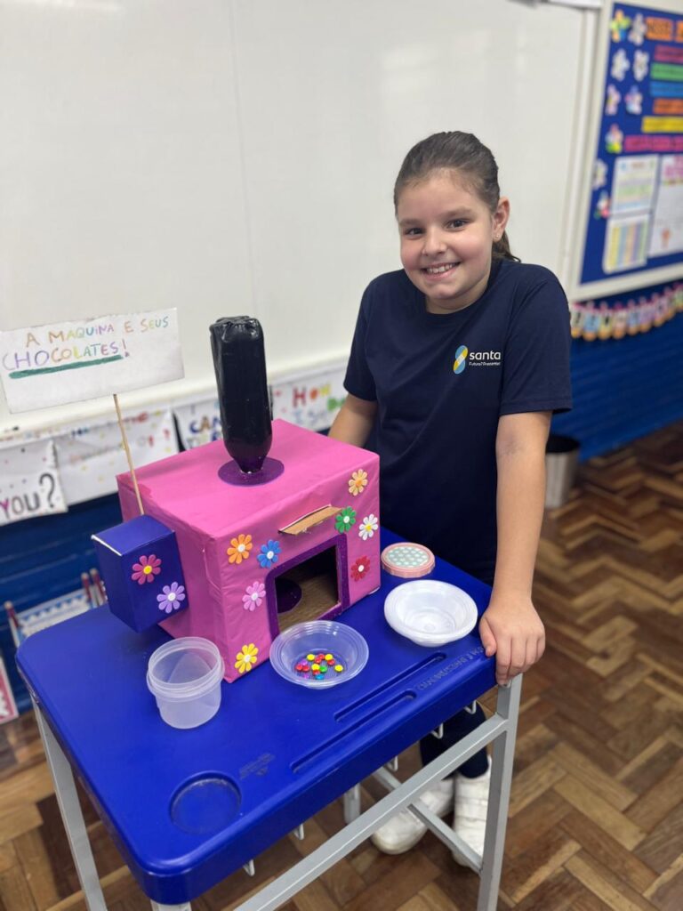 A partir da leitura do livro “A Máquina Maluca”, de Ruth Rocha, os alunos do 3º ano B foram desafiados a criar a sua própria máquina maluca! A proposta foi desenvolvida em duas etapas: na primeira, as crianças preencheram uma ficha de criação, pensando no nome, na função da máquina, em como ela funcionaria e nos materiais necessários.