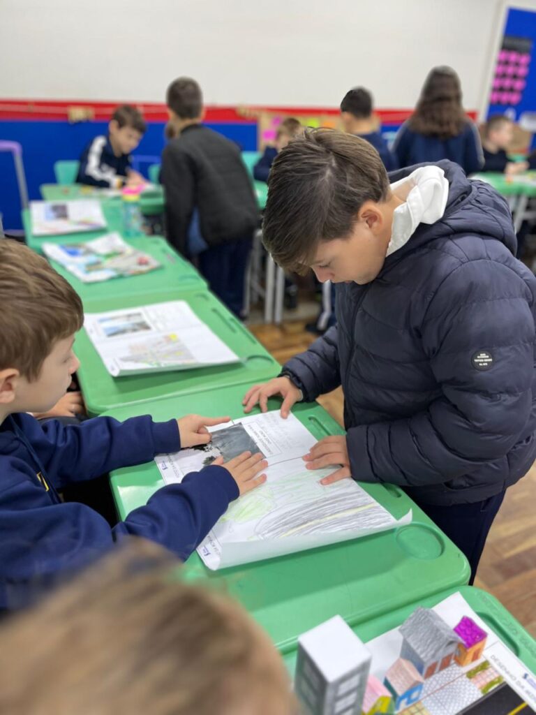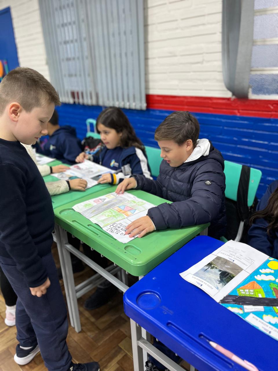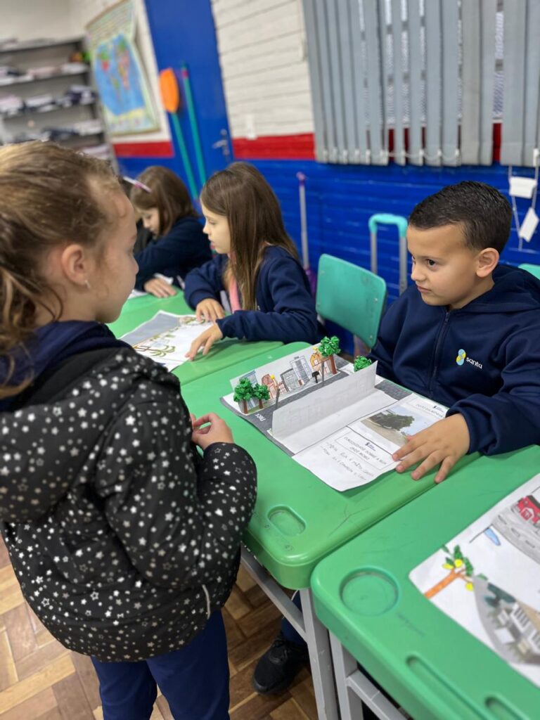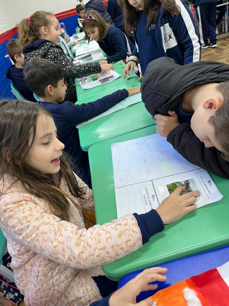 Turma do 3º A, apresentando tarefa da FIC sobre a rua onde moram.