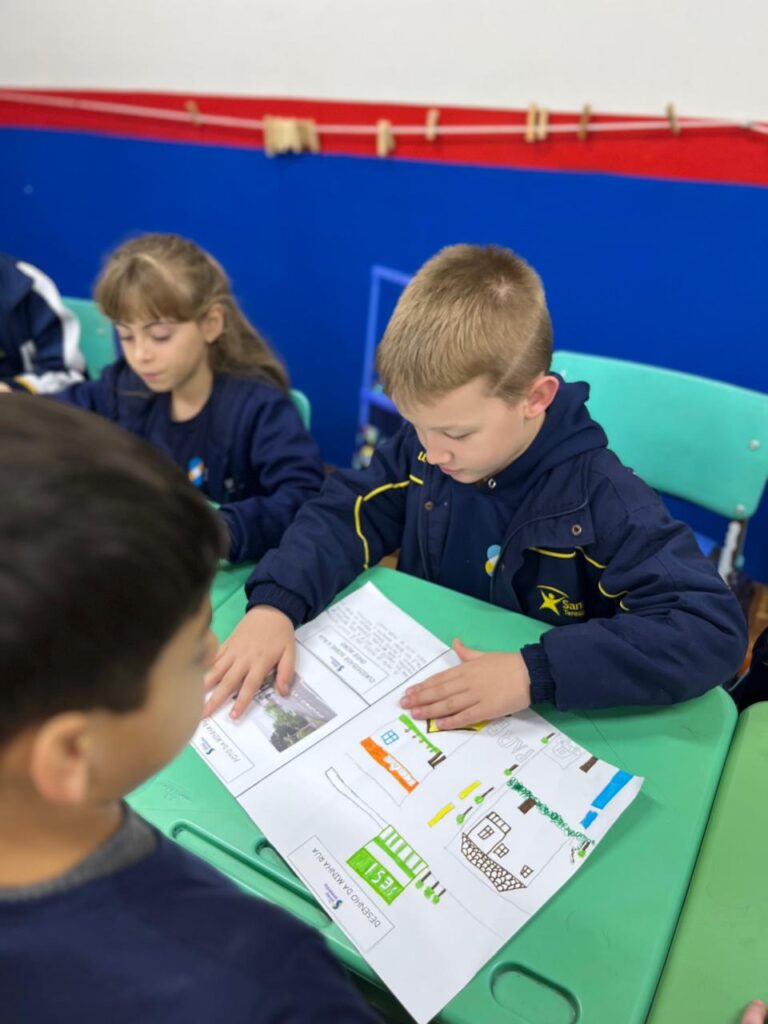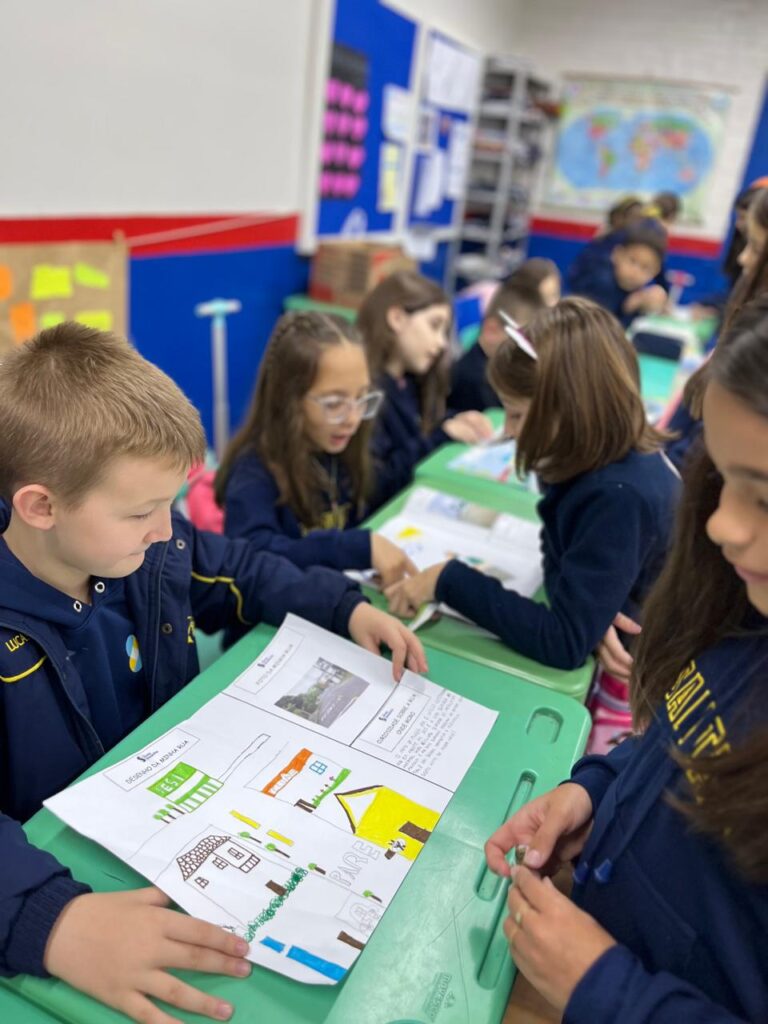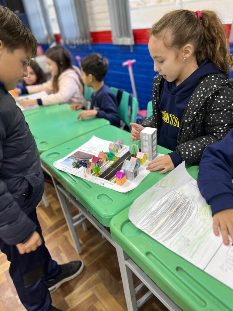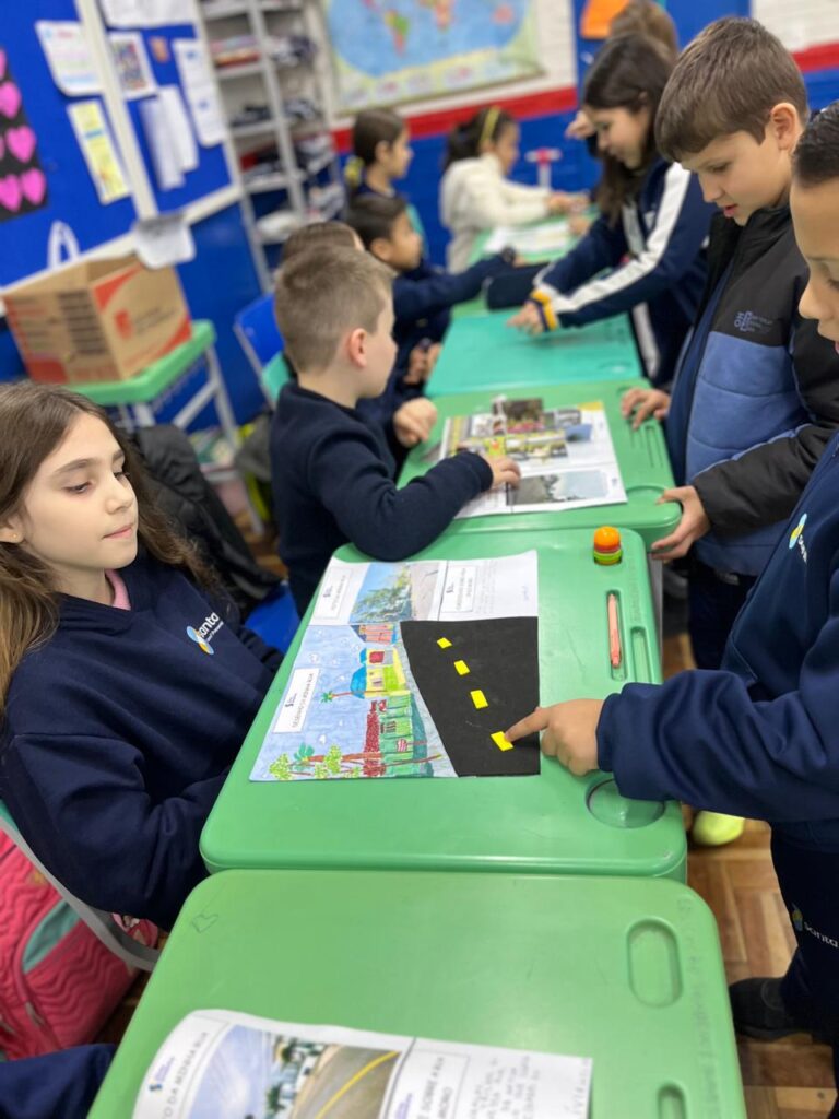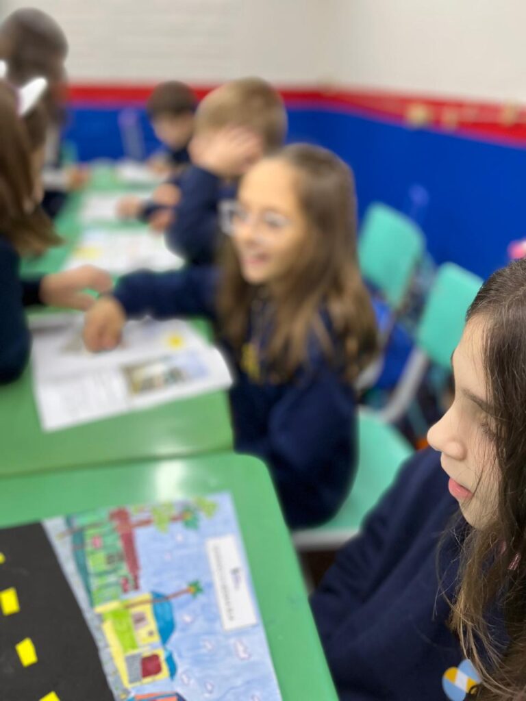 Turma do 3º A, apresentando tarefa da FIC sobre a rua onde moram.