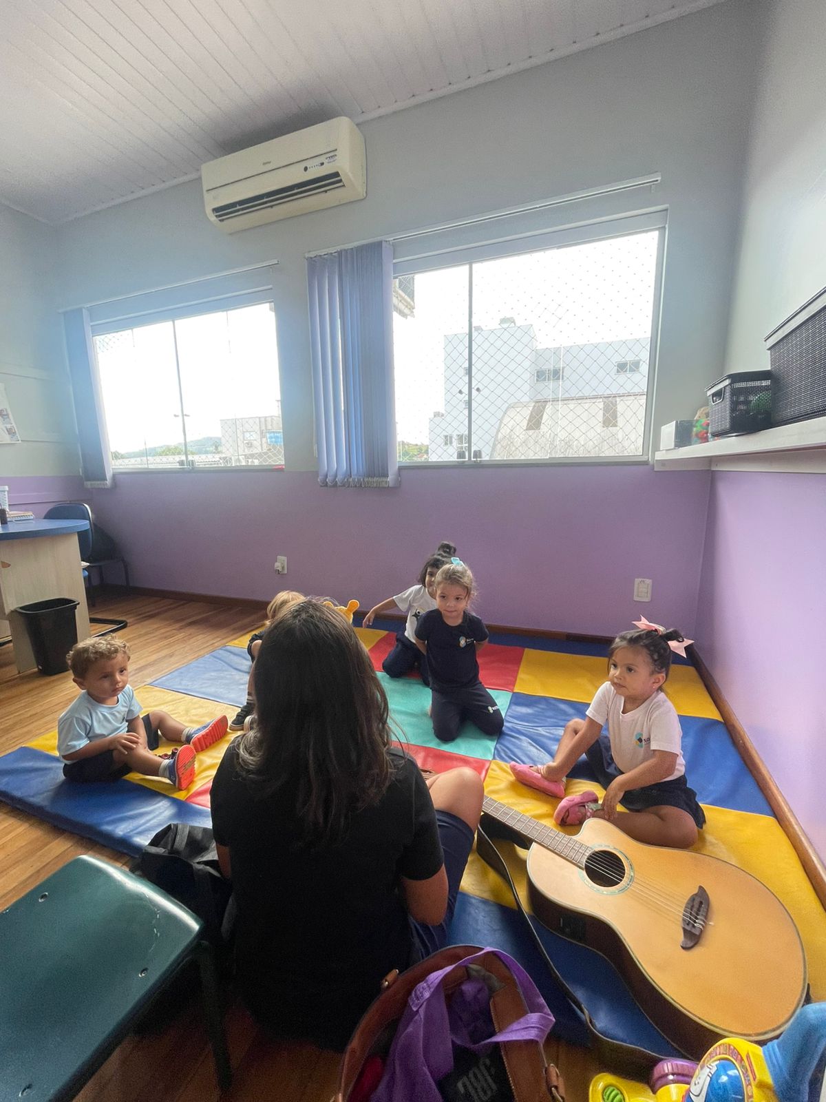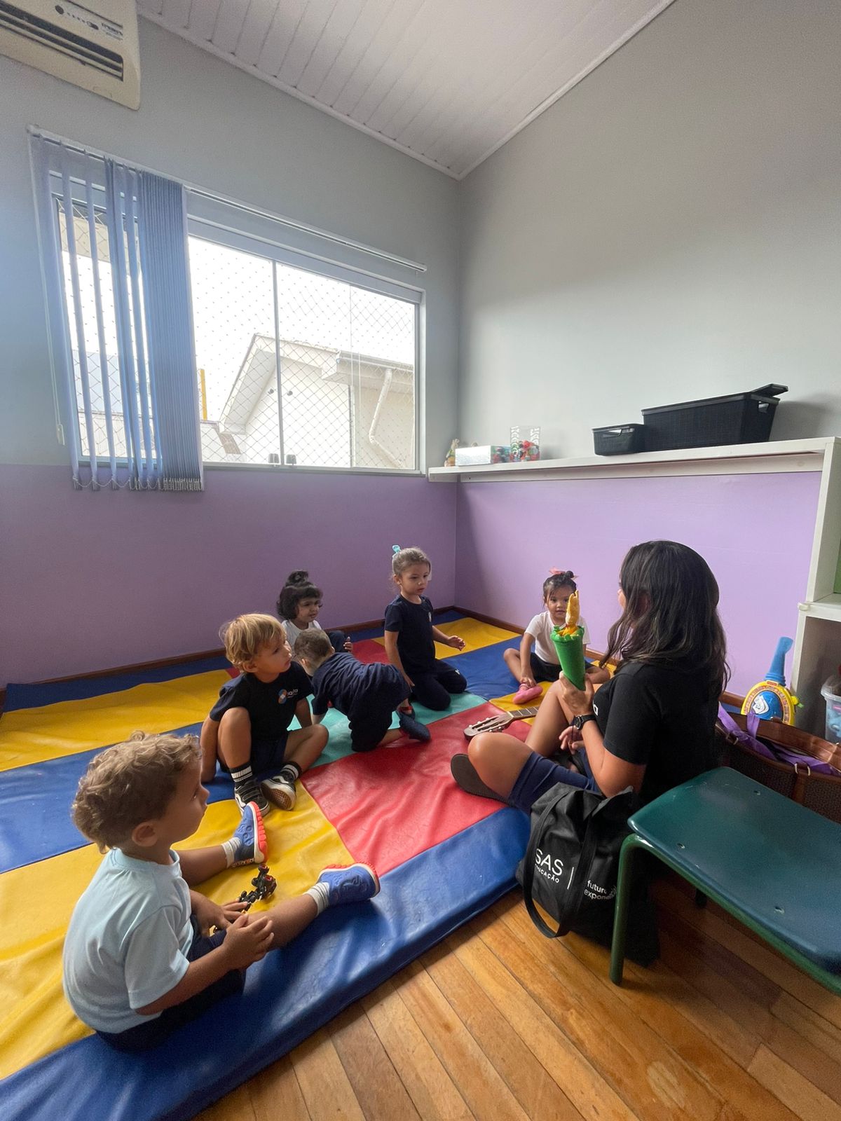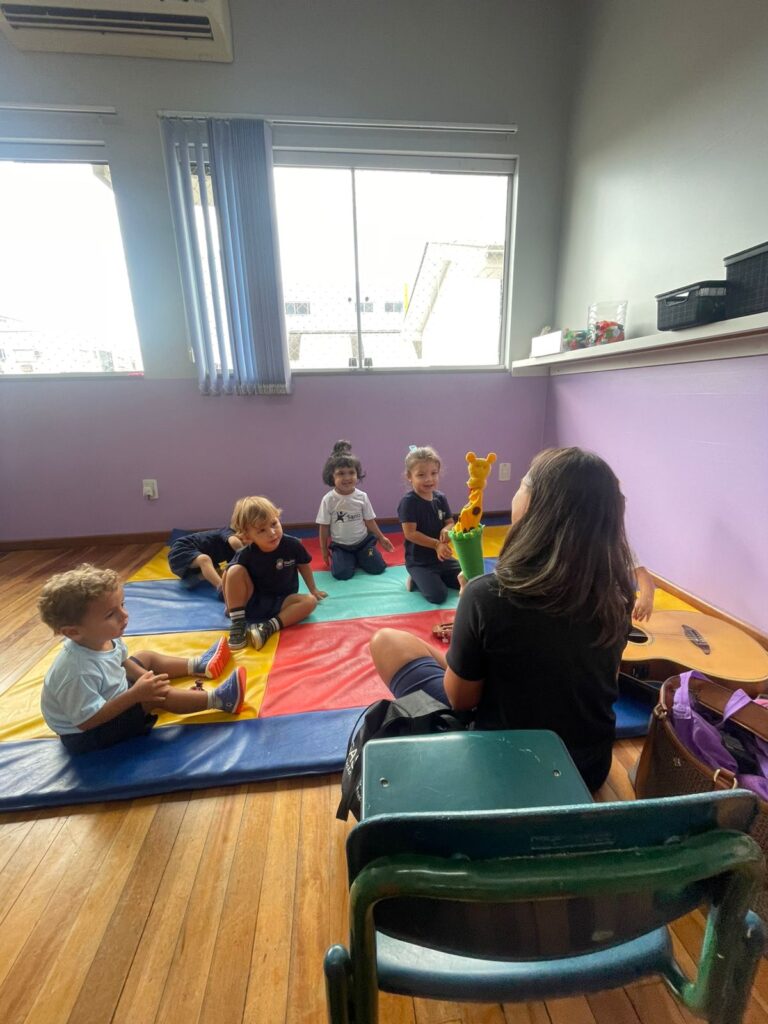 Na aula de Música, a turma do Maternal teve um momento especial ao conhecer a nova amiga: a Girafa. De forma lúdica e divertida, as crianças exploraram sons, ritmos e movimentos, tornando a aprendizagem musical ainda mais encantadora e cheia de descobertas.