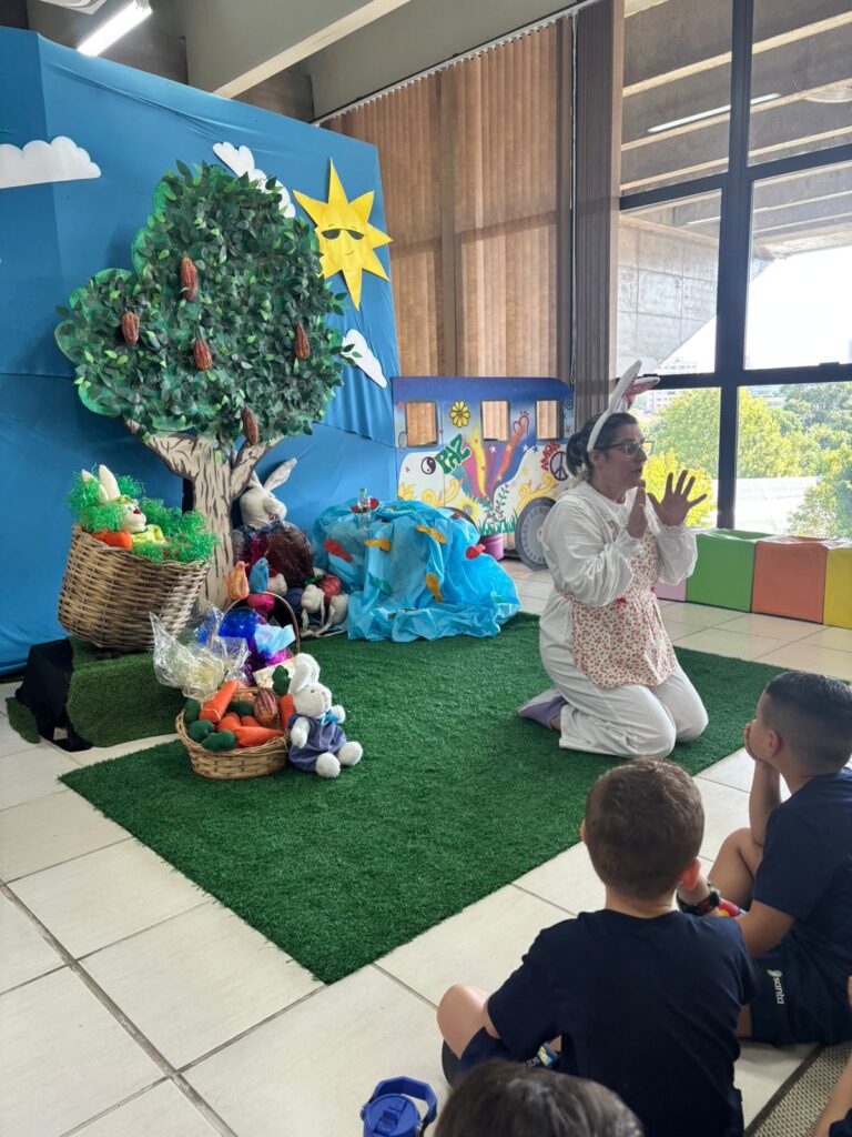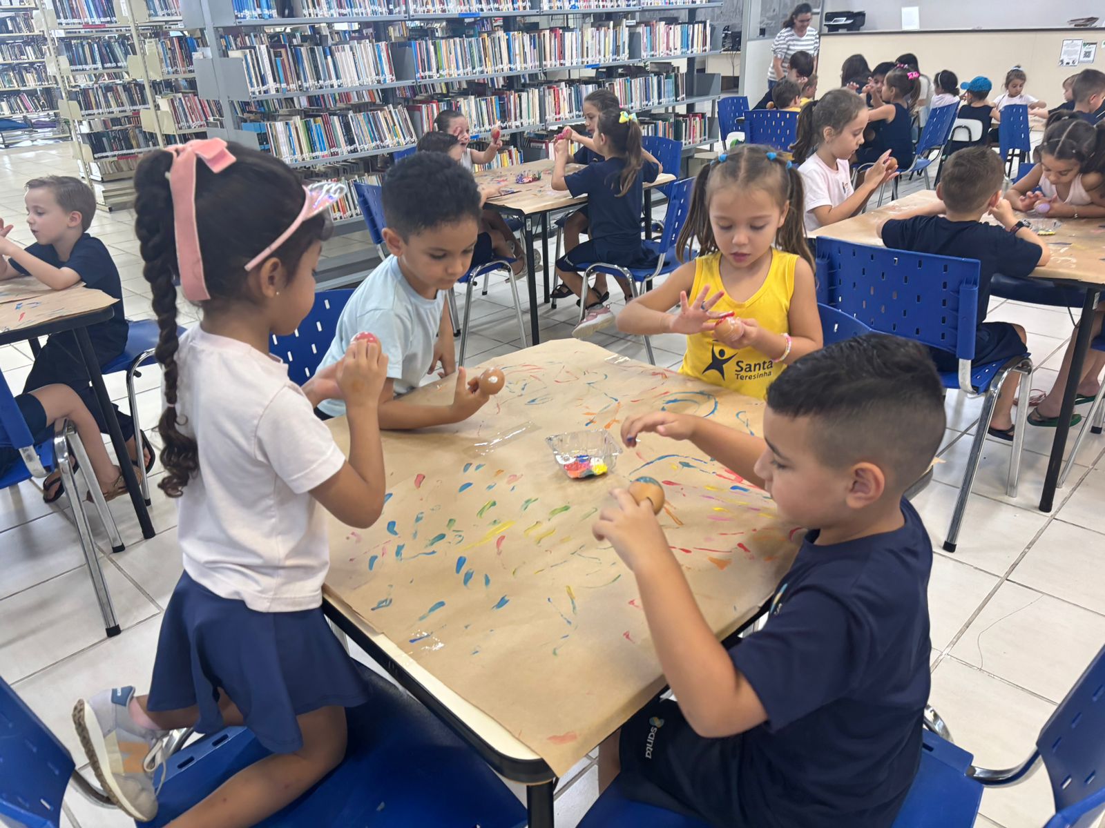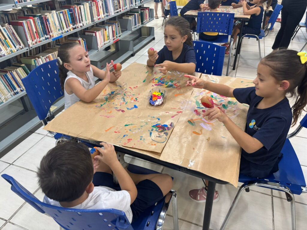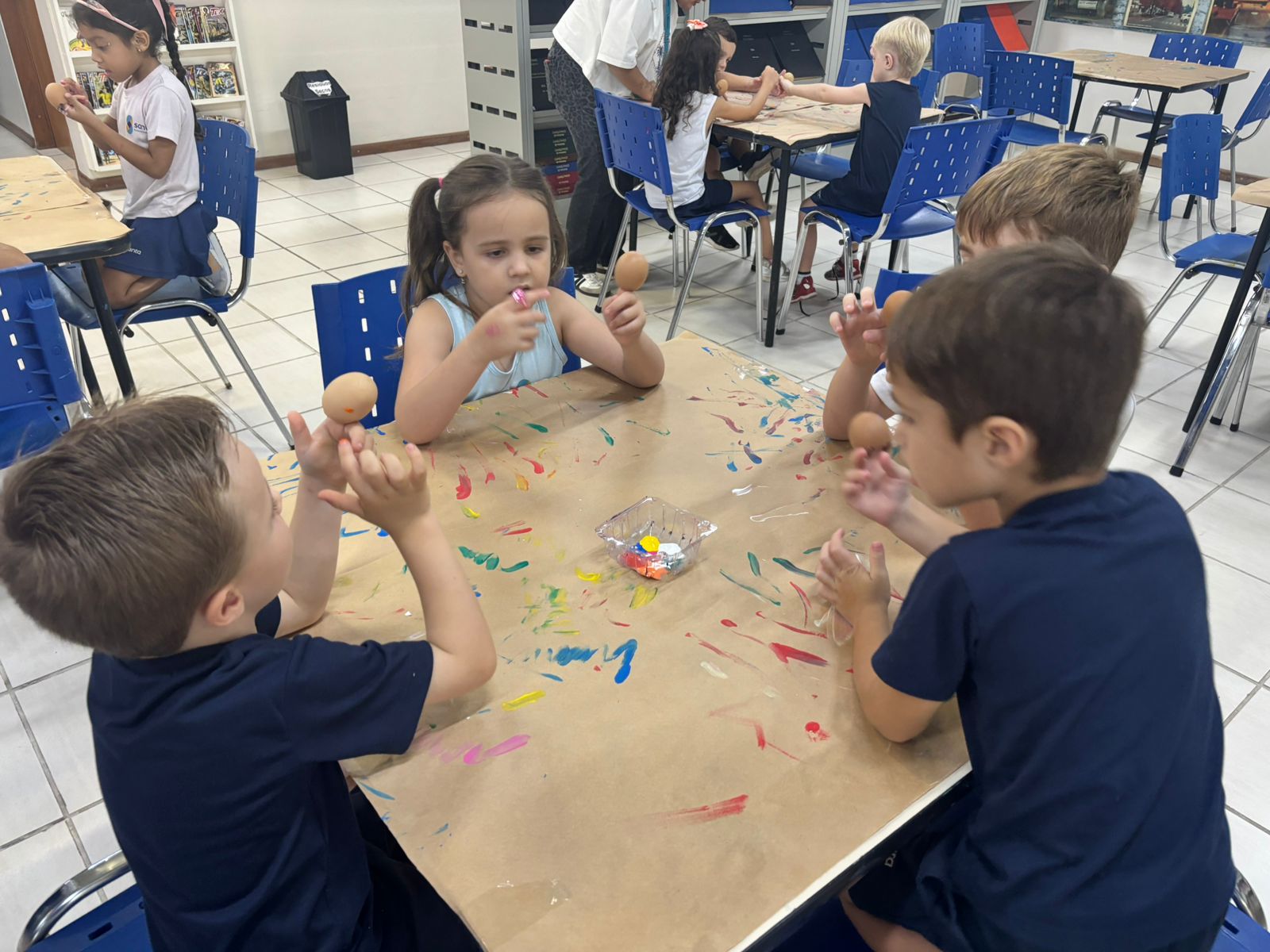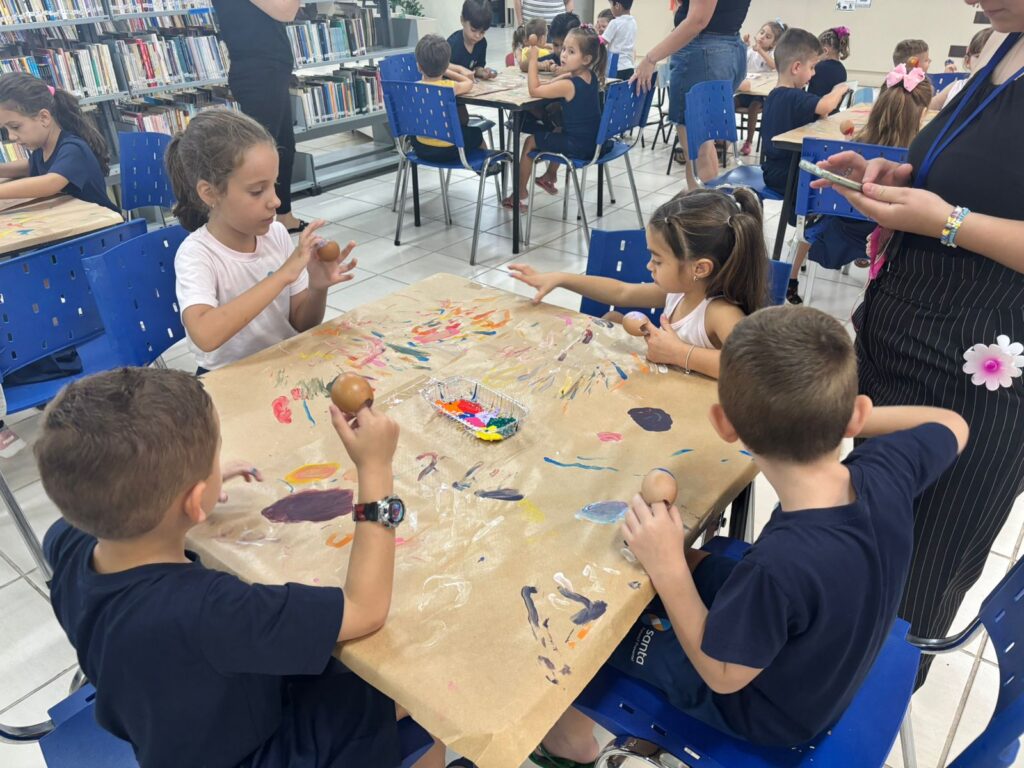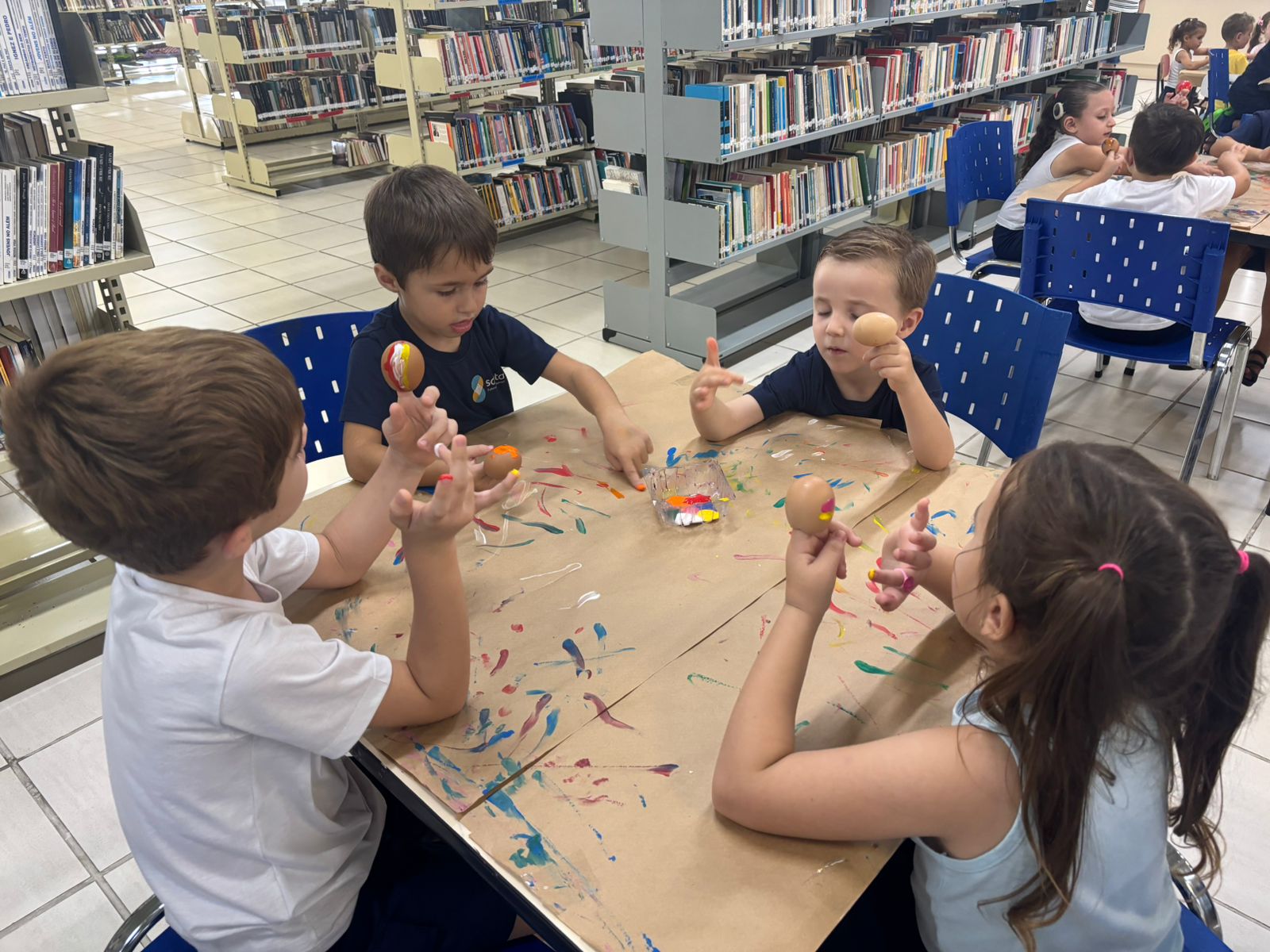 As crianças viveram um momento encantador, ouvindo uma linda história e soltando a criatividade na pintura dos ovinhos de Páscoa. Foi um passeio cheio de alegria, imaginação e muitas descobertas!
