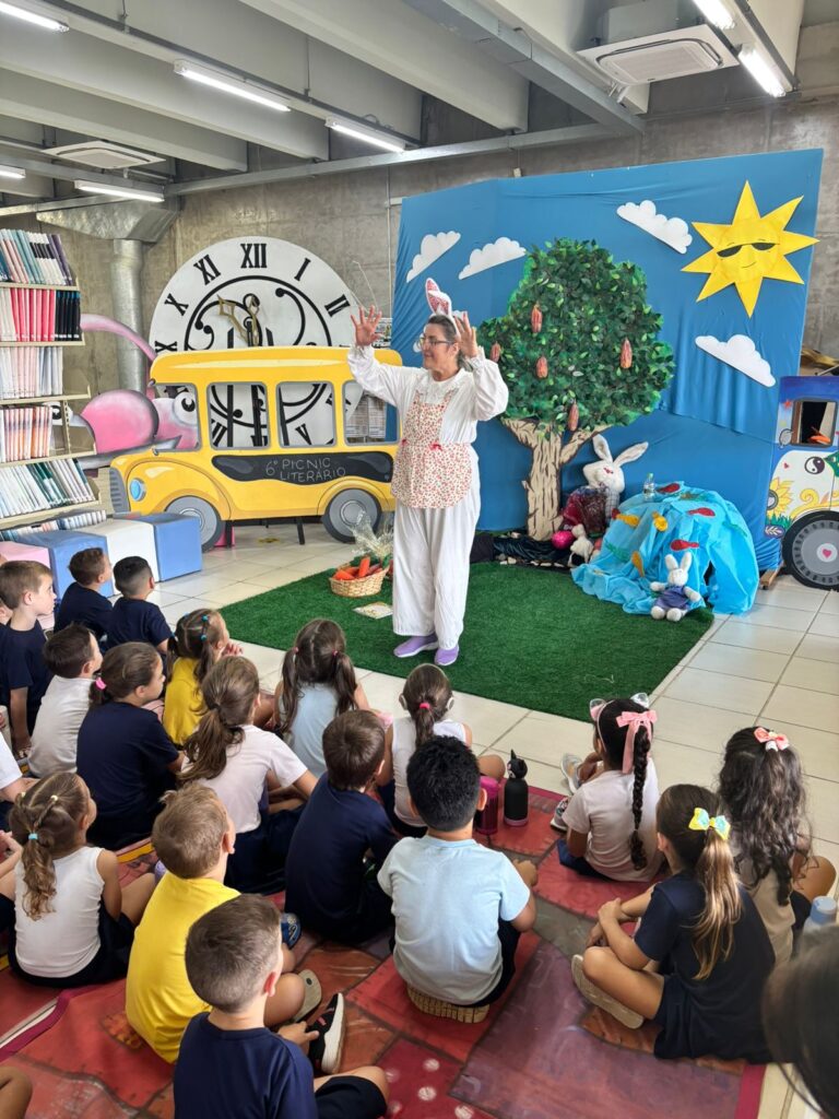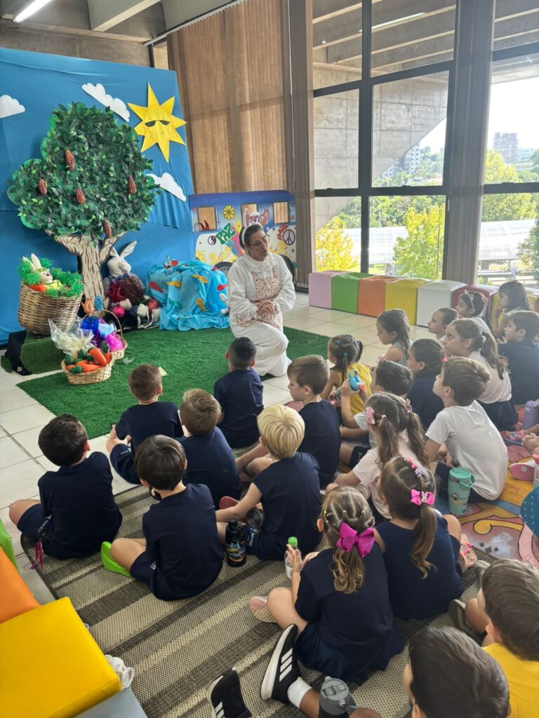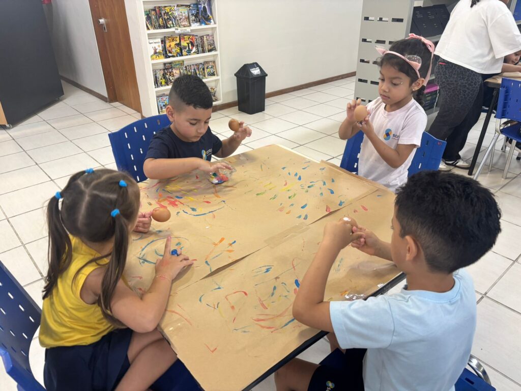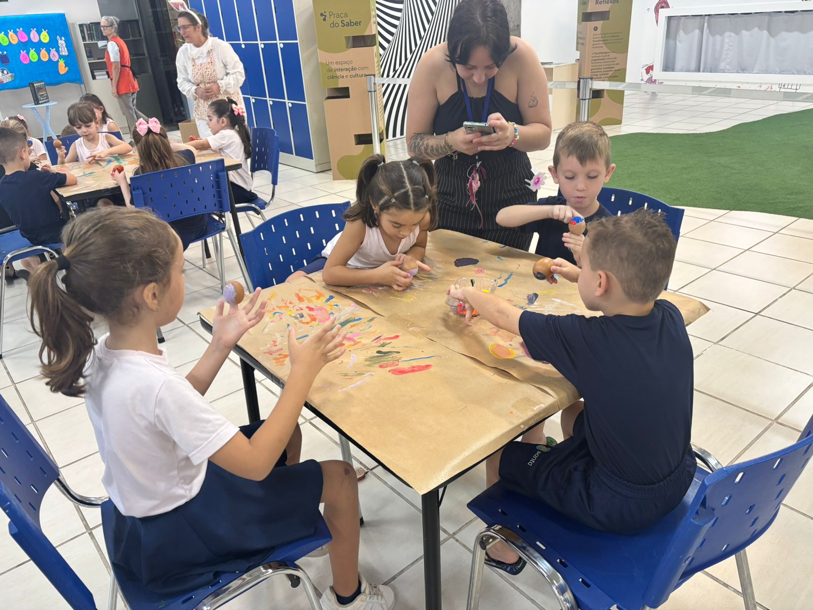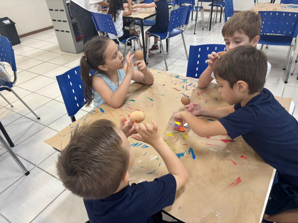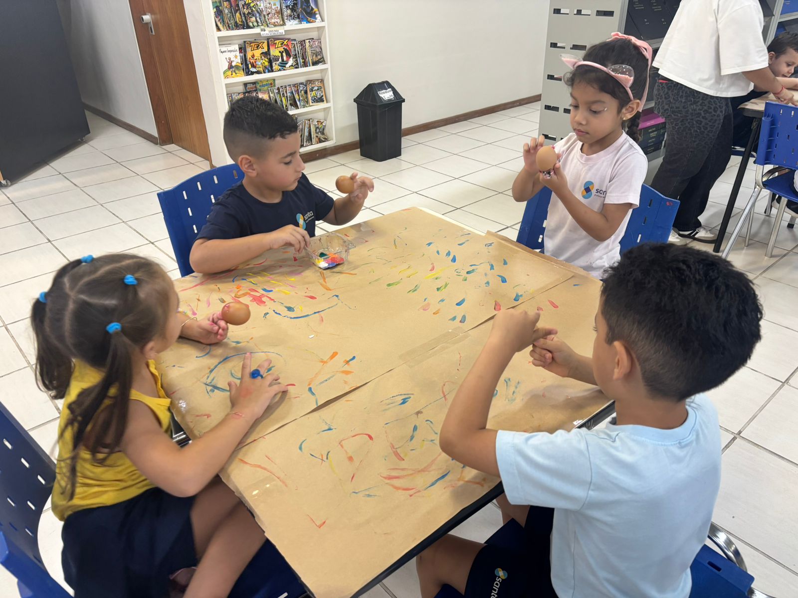 As crianças viveram um momento encantador, ouvindo uma linda história e soltando a criatividade na pintura dos ovinhos de Páscoa. Foi um passeio cheio de alegria, imaginação e muitas descobertas!