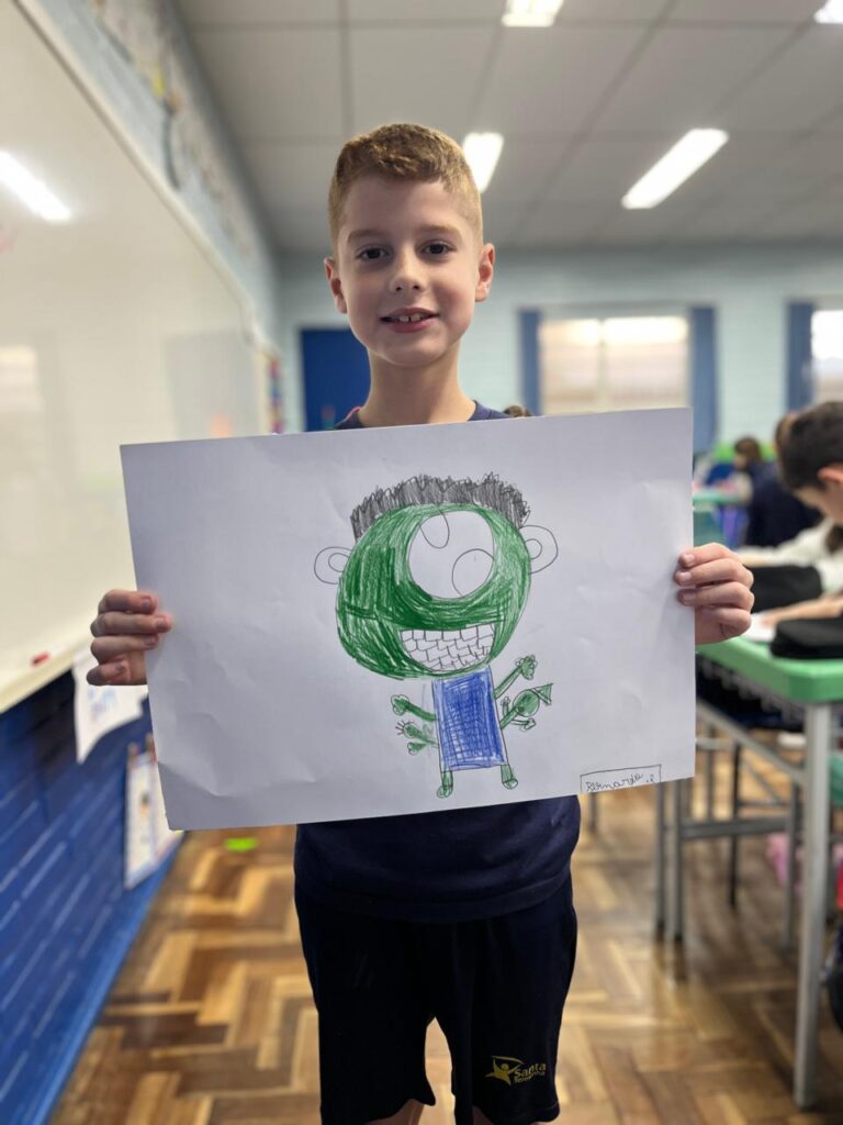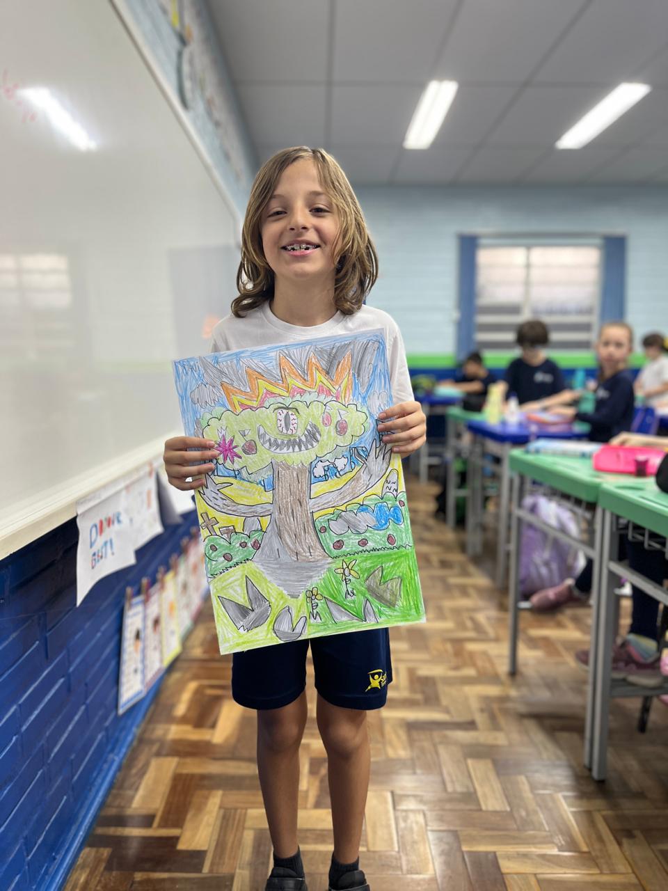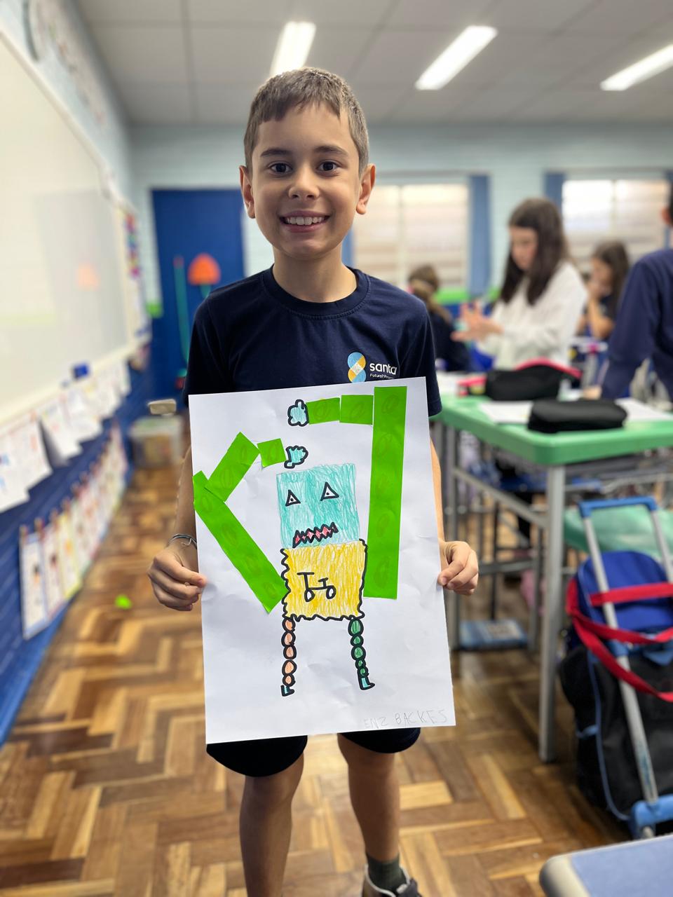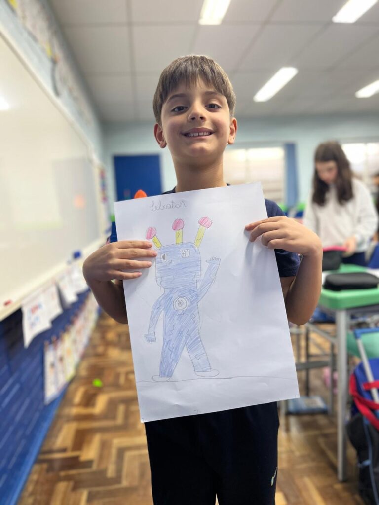 A turma do 3º ano B encerrou as atividades do livro do projeto literário “A Máquina Maluca”, de Ruth Rocha, construindo um personagem maluco com desenhos e colagens. Foi um momento repleto de criatividade, imaginação e diversão!