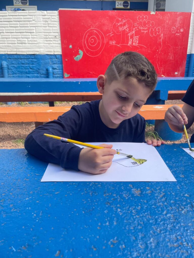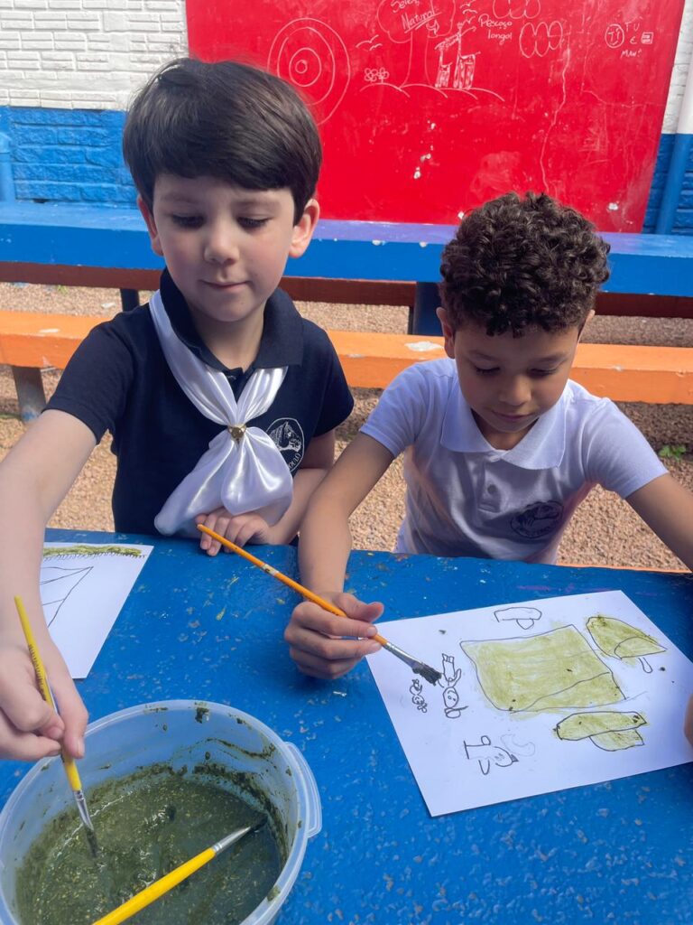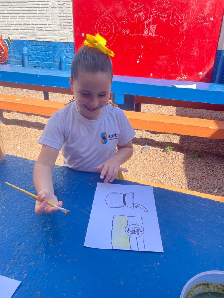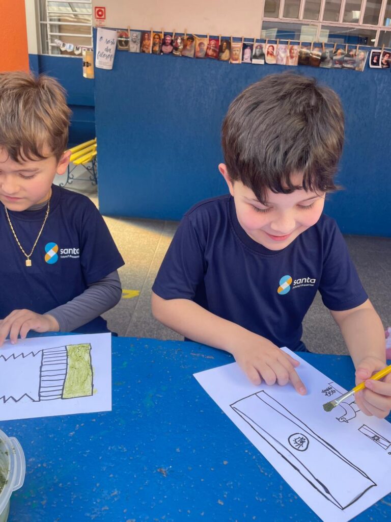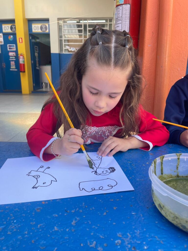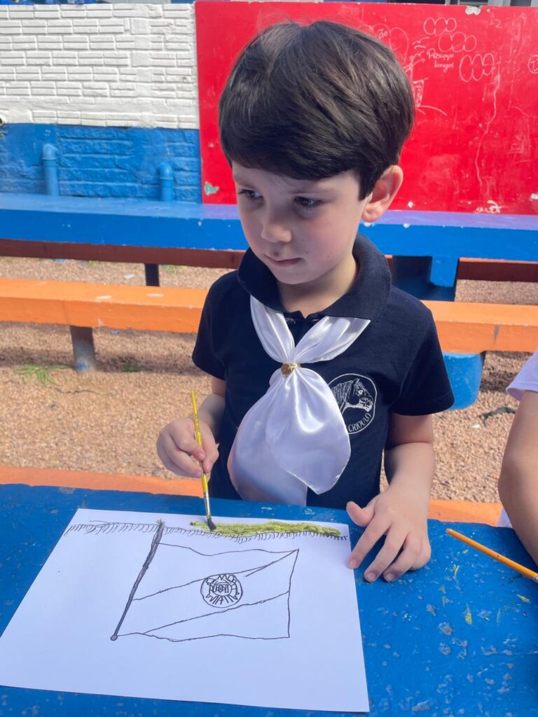 Aprendendo sobre a semana Farroupilha, a turma do 1° ano B registros através de desenhos os símbolos do Rio Grande do Sul, e para a pintura, fizeram o uso da tinta de erva-mate!
