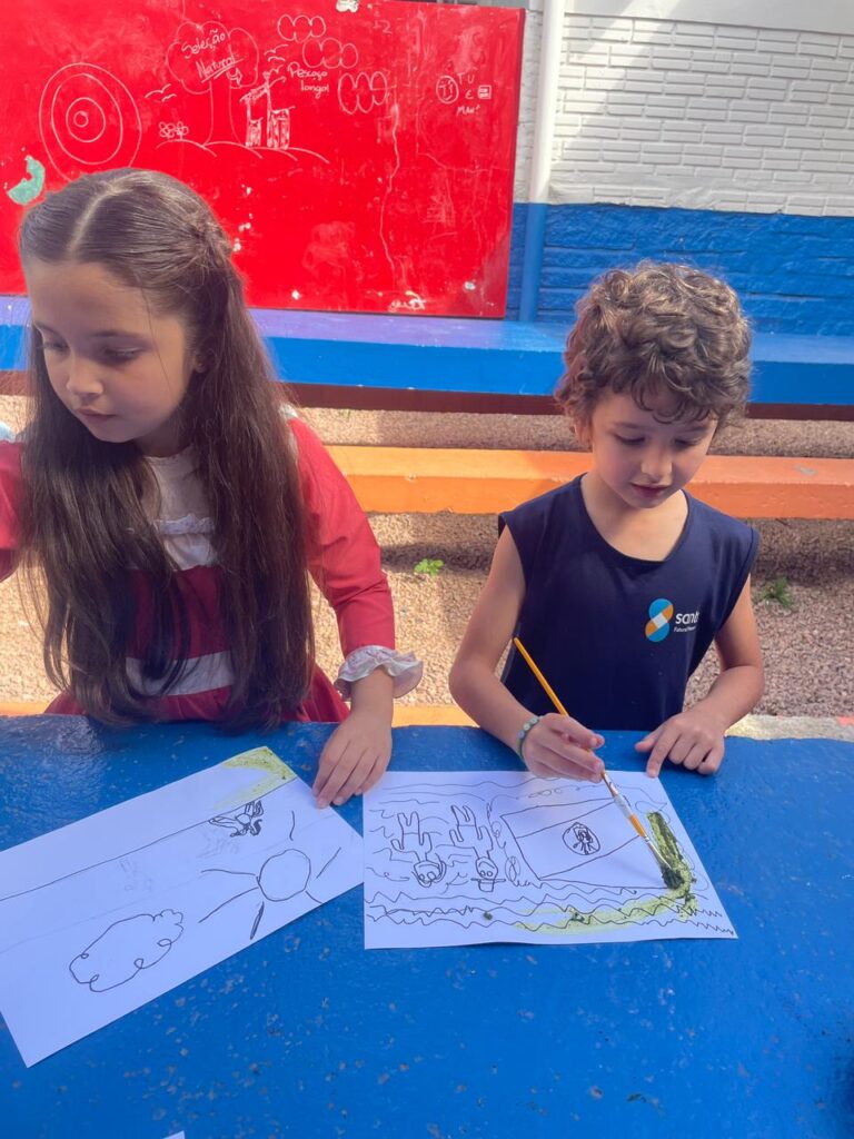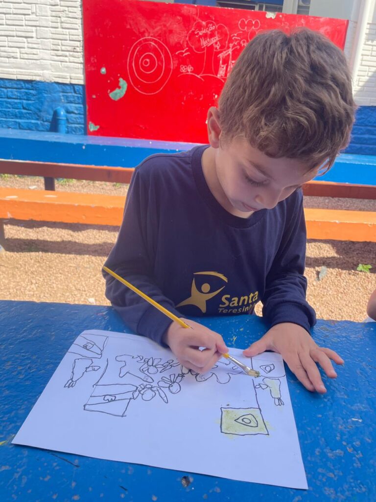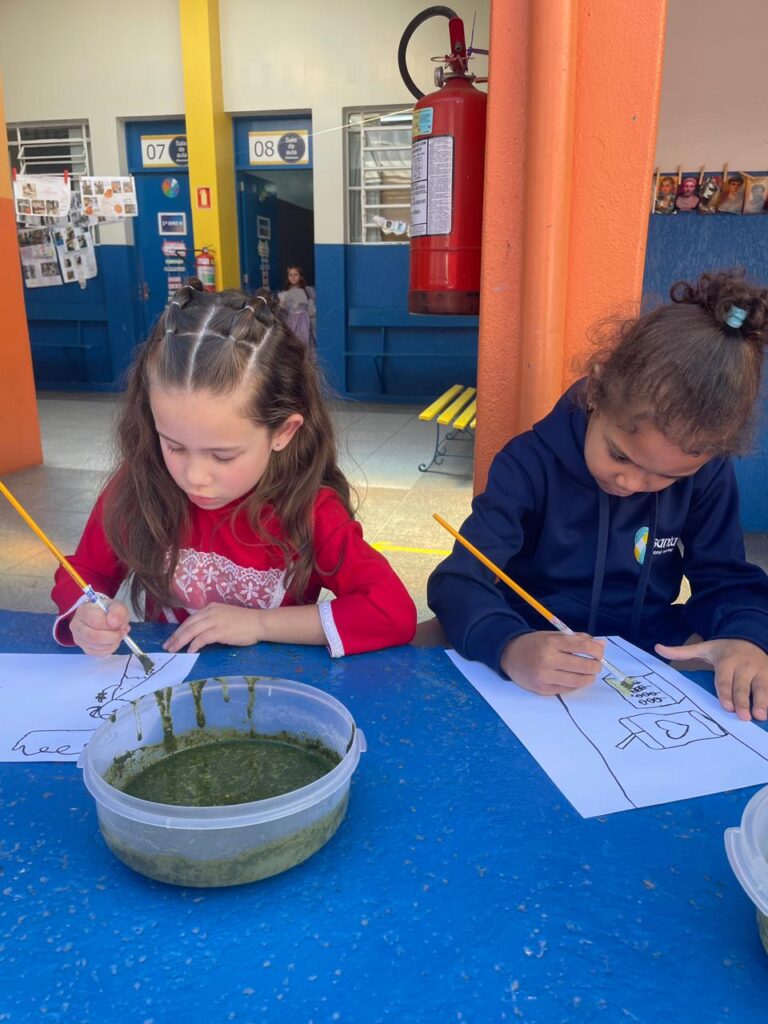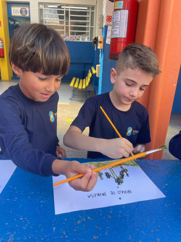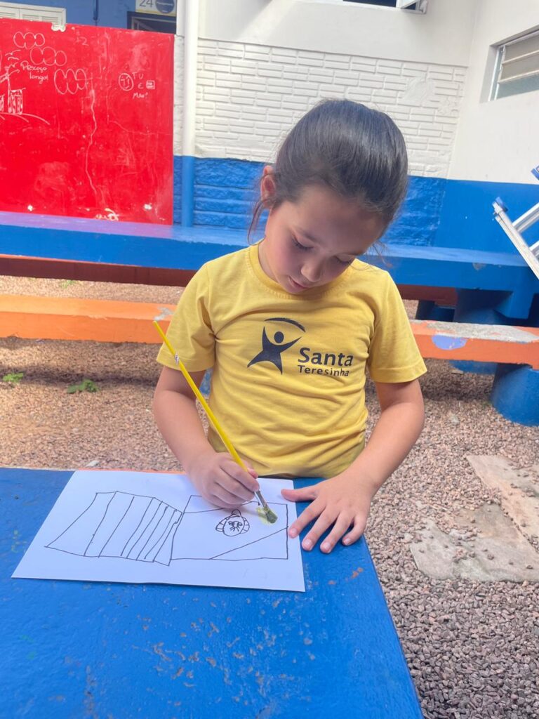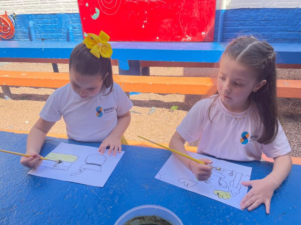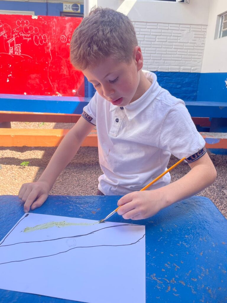 Aprendendo sobre a semana Farroupilha, a turma do 1° ano B registros através de desenhos os símbolos do Rio Grande do Sul, e para a pintura, fizeram o uso da tinta de erva-mate!