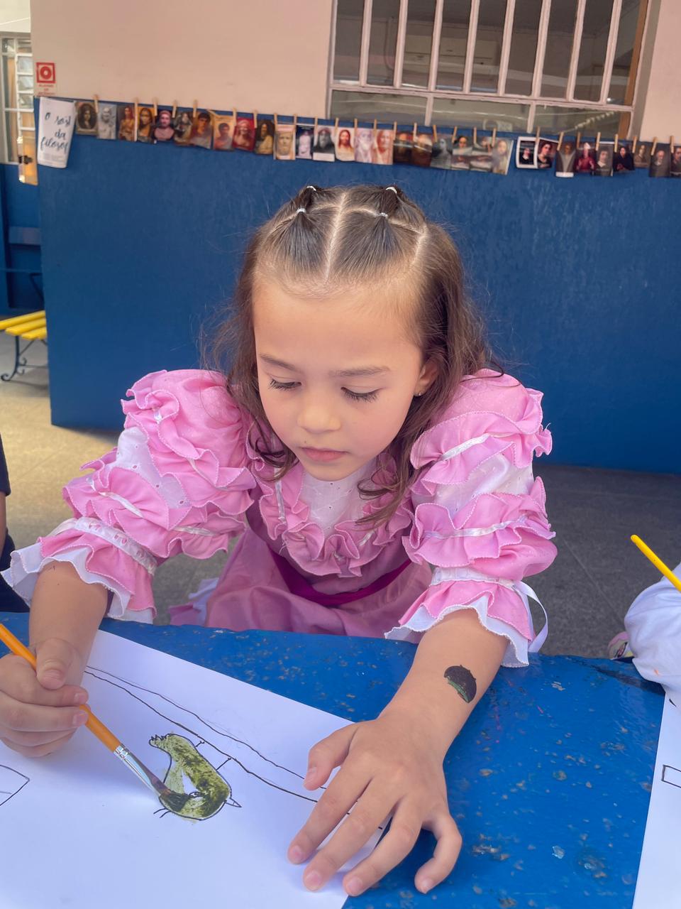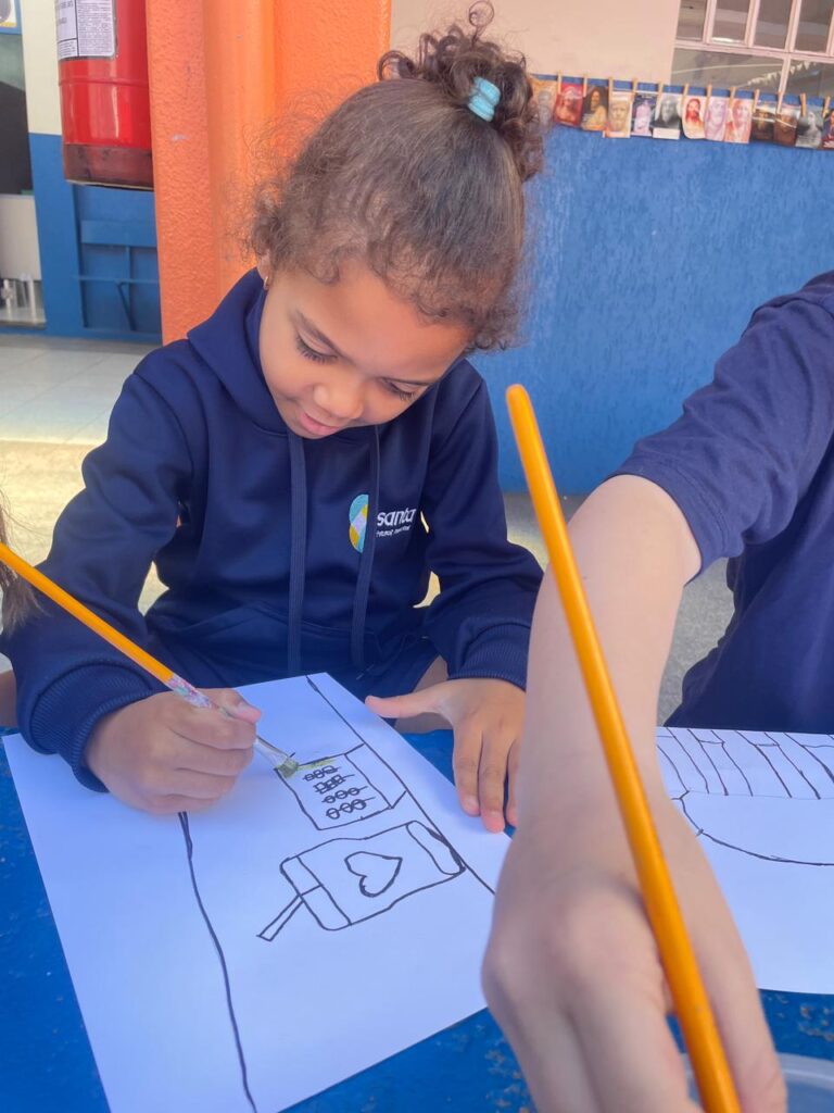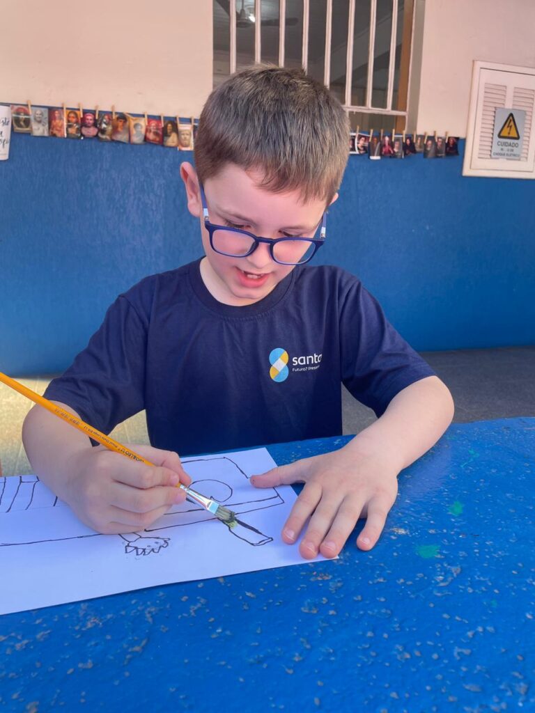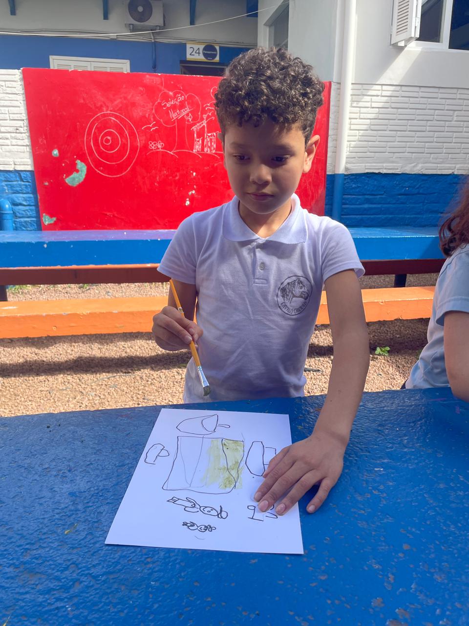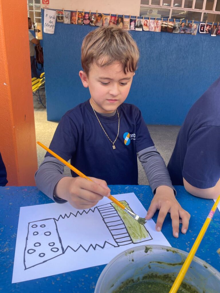 Aprendendo sobre a semana Farroupilha, a turma do 1° ano B registros através de desenhos os símbolos do Rio Grande do Sul, e para a pintura, fizeram o uso da tinta de erva-mate!