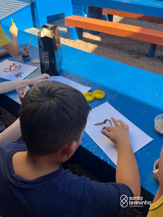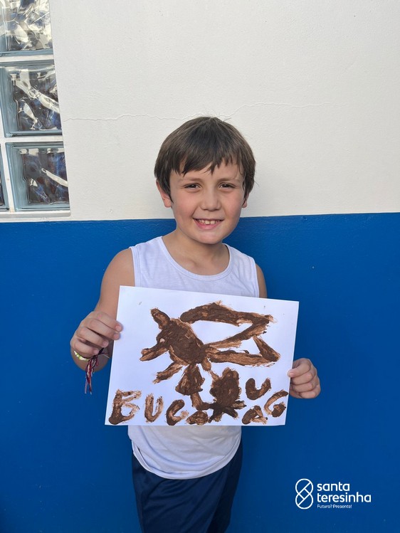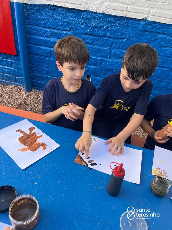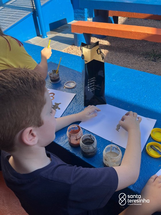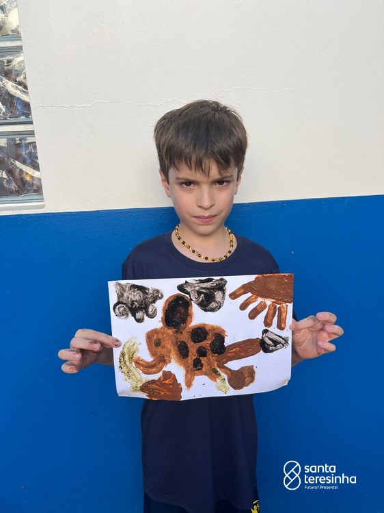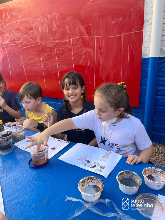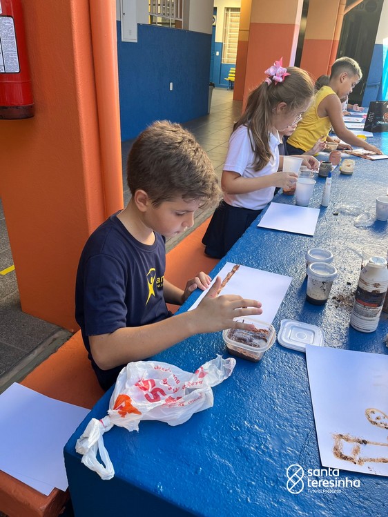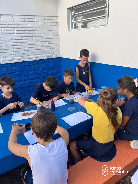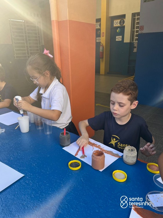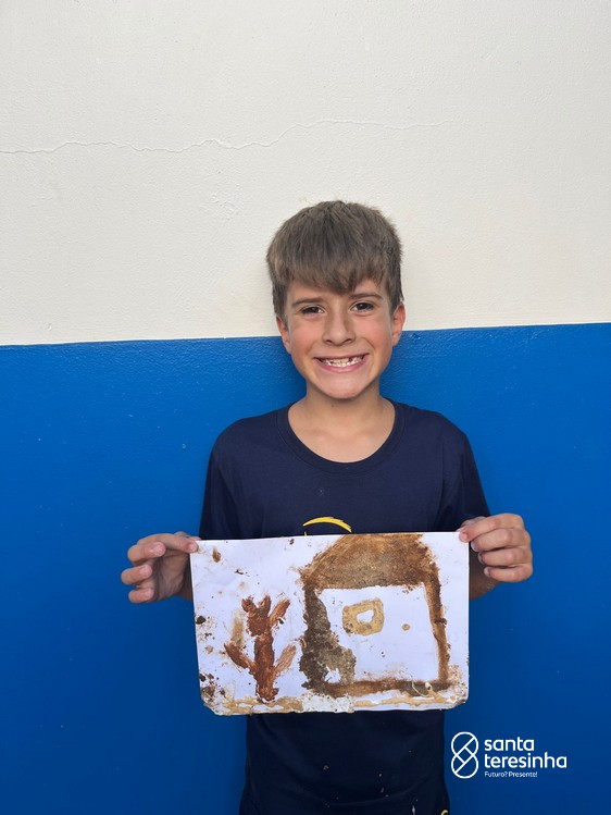 Nas aulas de artes, a turma do 3º está aprendendo sobre as pinturas feitas no período chamado Pré-História. Para a nossa aula ficar ainda mais divertida e conhecermos ainda mais esse período, os alunos, juntamente com as suas famílias, criaram as suas tintas como os seres humanos da Pré-História e realizaram desenhos com elas.
