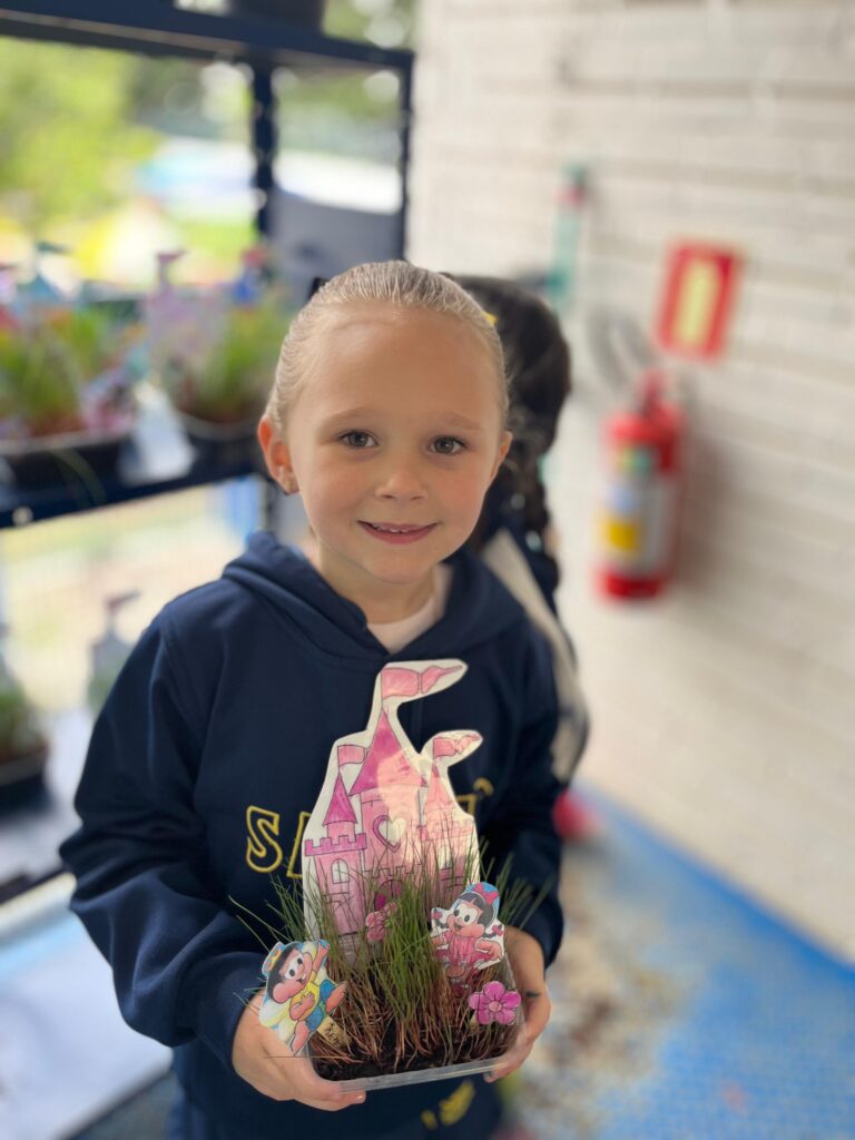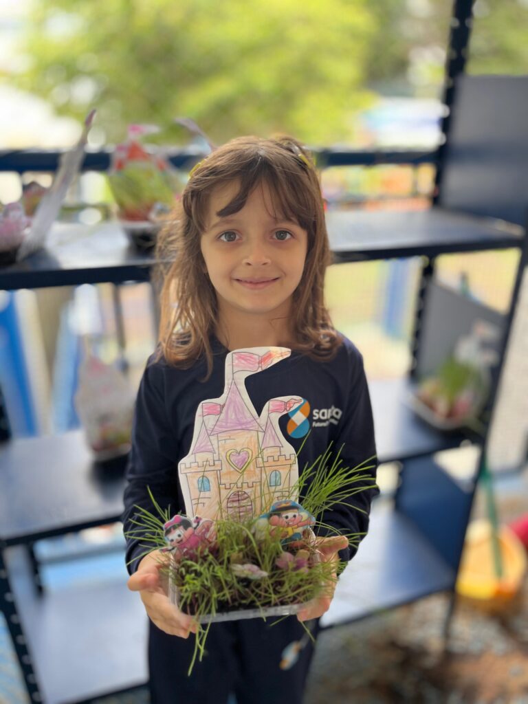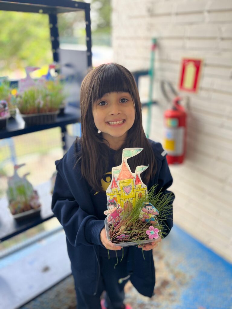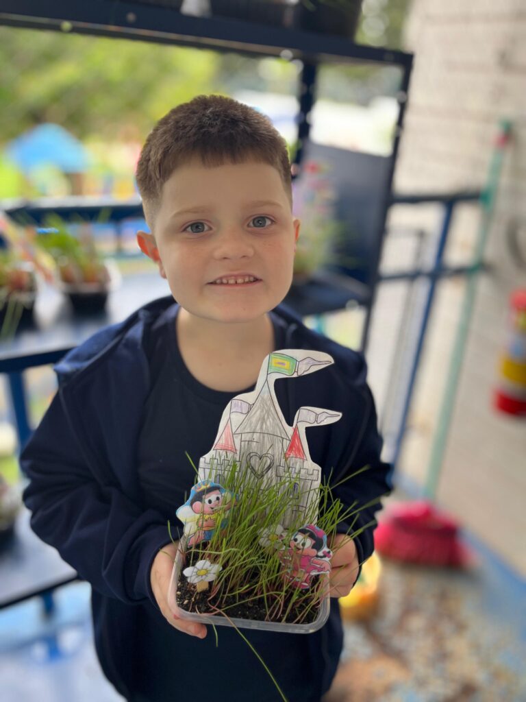 Encerramos com muita alegria o nosso projeto de literatura sobre a Polegarzinha! A festa foi cheia de flores e encanto. As crianças plantaram alpiste para deixar o castelo do Príncipe das Flores ainda mais bonito e, com a chegada da primavera, o castelo ficou cercado por uma grama bem verdinha. Um final mágico para uma história encantadora!