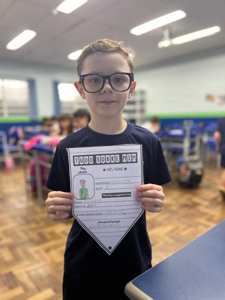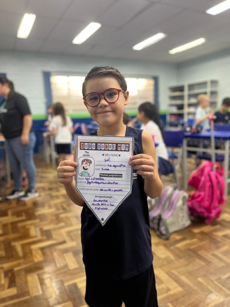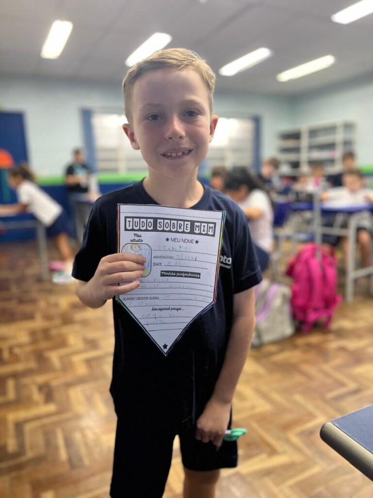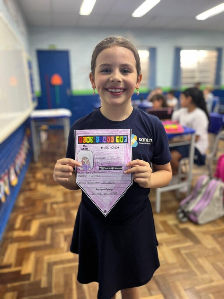 Iniciamos mais um ano letivo cheio de expectativas, curiosidades, alegrias, reencontros e muitos abraços! A turma do 3º Ano A participou da atividade “Tudo sobre mim”, registrou momentos especiais com os amigos e ainda recebeu uma lembrancinha preparada com carinho pelas profes.