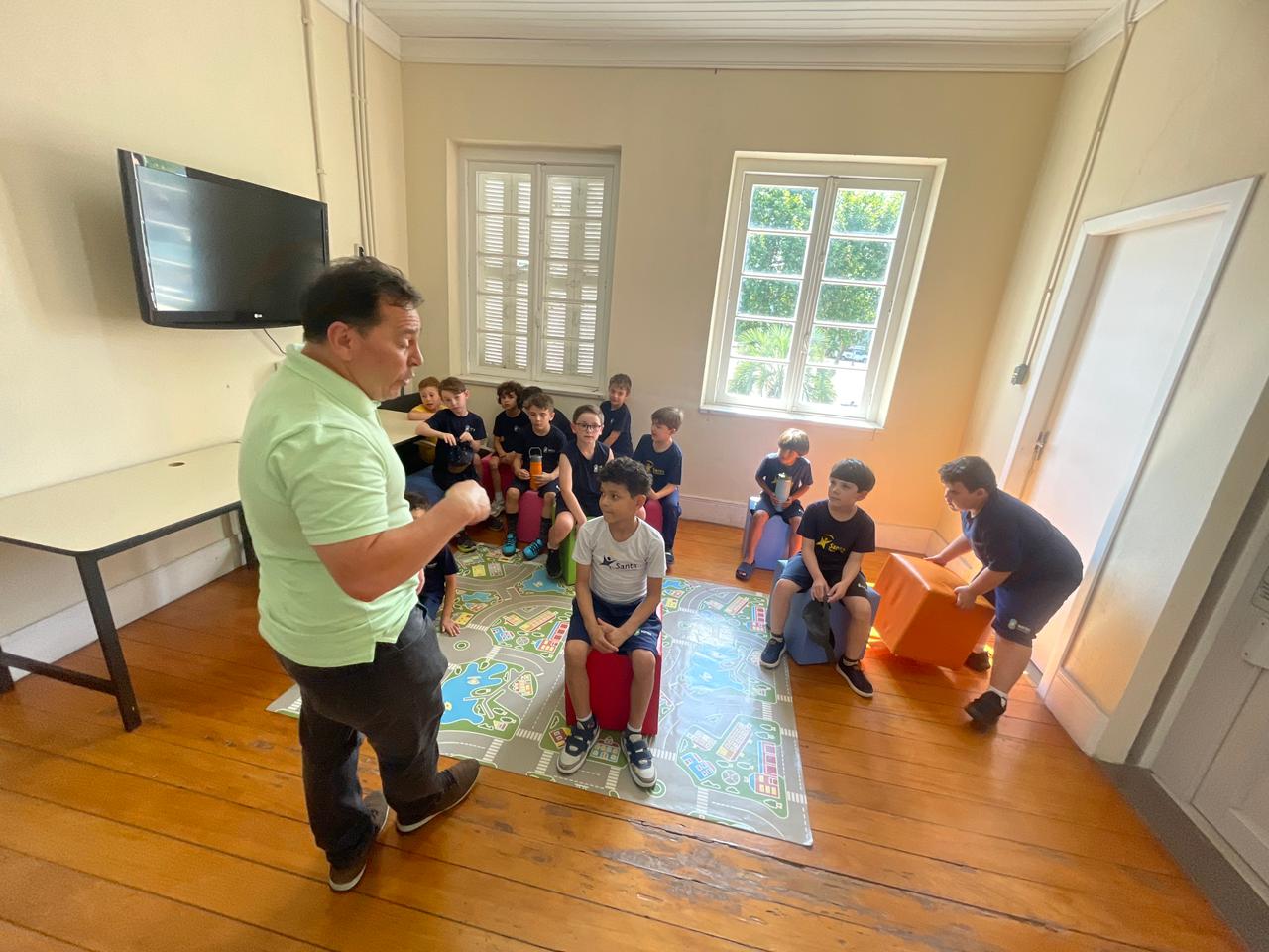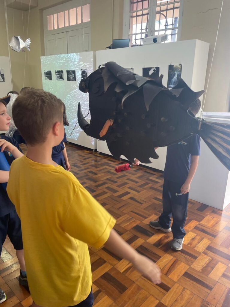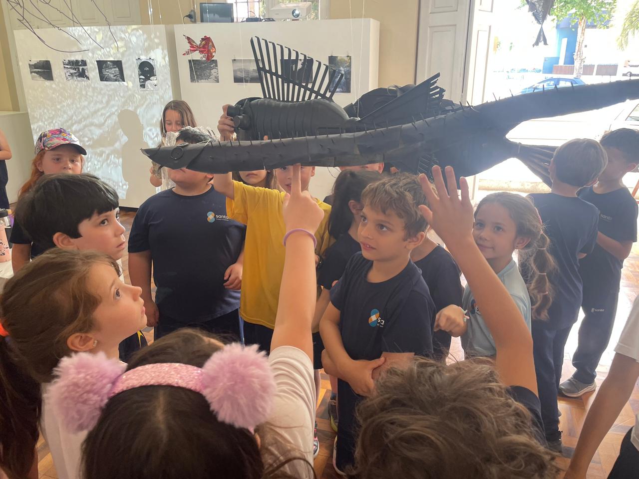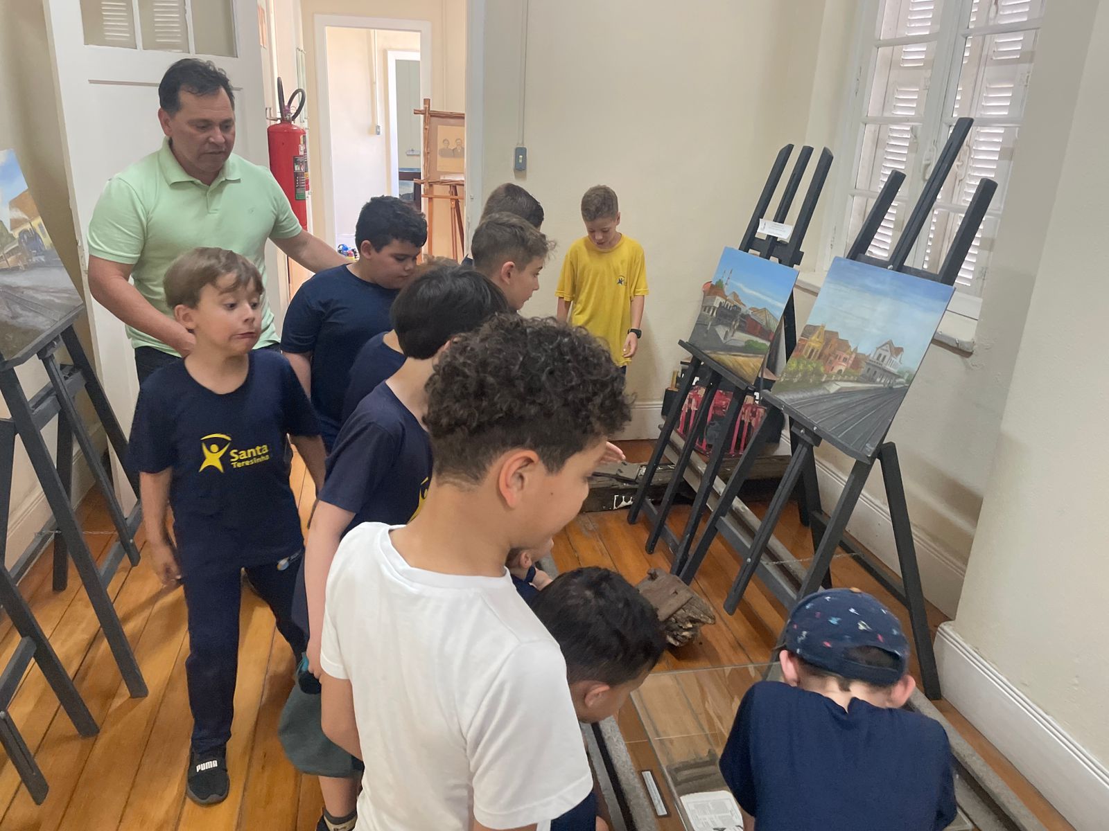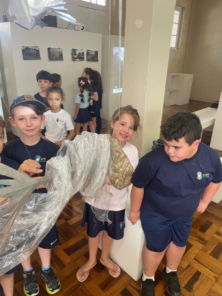 Como parte da proposta, visitaram a exposição artística “Resíduos de nós mesmos”, aproveitando também a oportunidade para conhecer o museu do trem e saber um pouquinho mais sobre a história de Campo Bom!