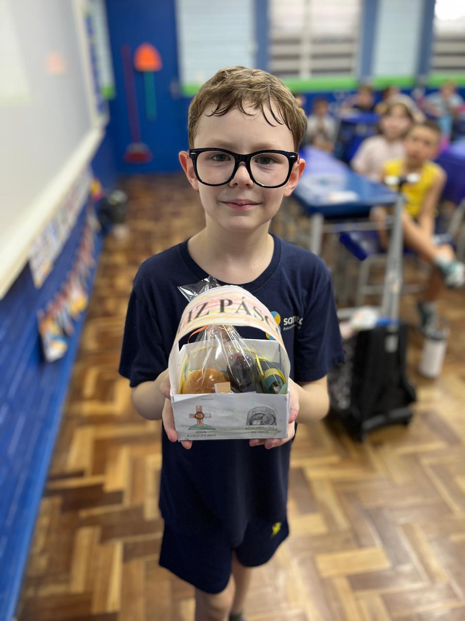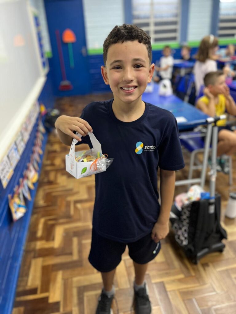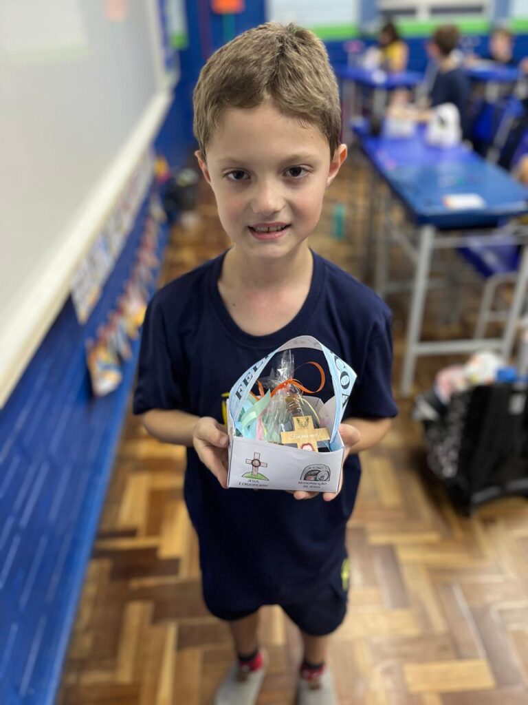Na semana de Páscoa, a turma do 3º ano A viveu momentos muito especiais! Confeccionaram com muito carinho seus próprios ninhos, dando início a uma semana cheia de significado. A partir de um conto de Páscoa, surgiu o tema de casa “O que tem dentro do seu ovo de Páscoa?”, incentivando reflexões cheias de significado. Tivemos também um momento na igreja com o padre, a produção de deliciosos pãezinhos, a confecção de um jogo de Páscoa e, para completar, a alegria de receber seus ninhos.